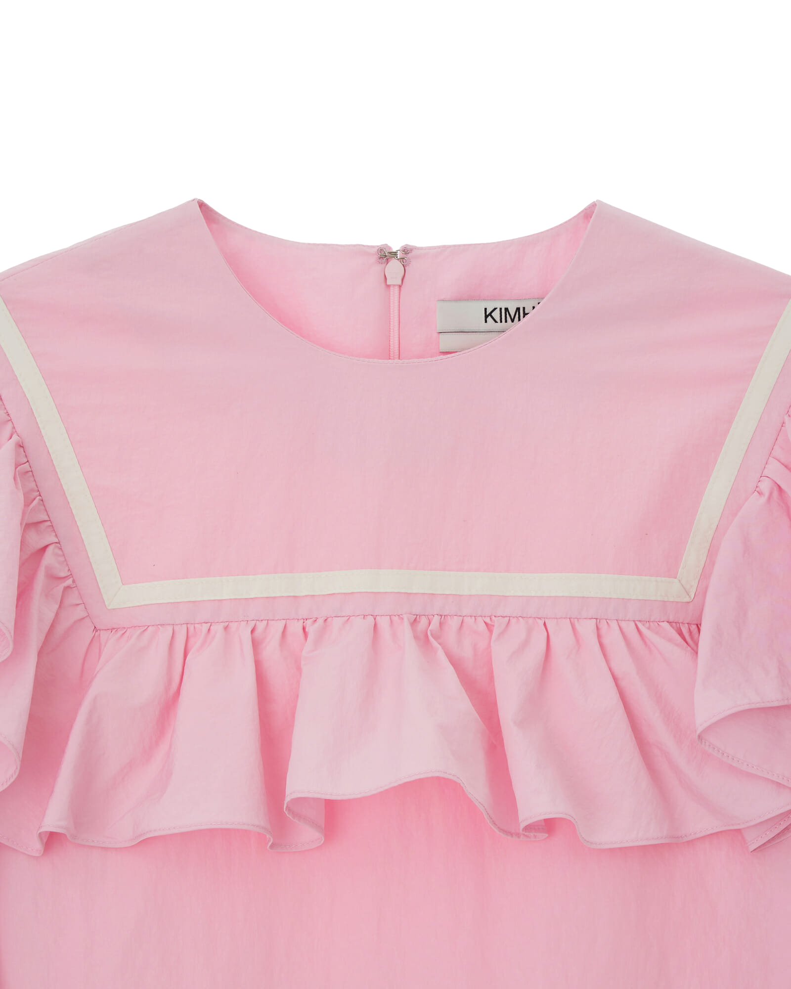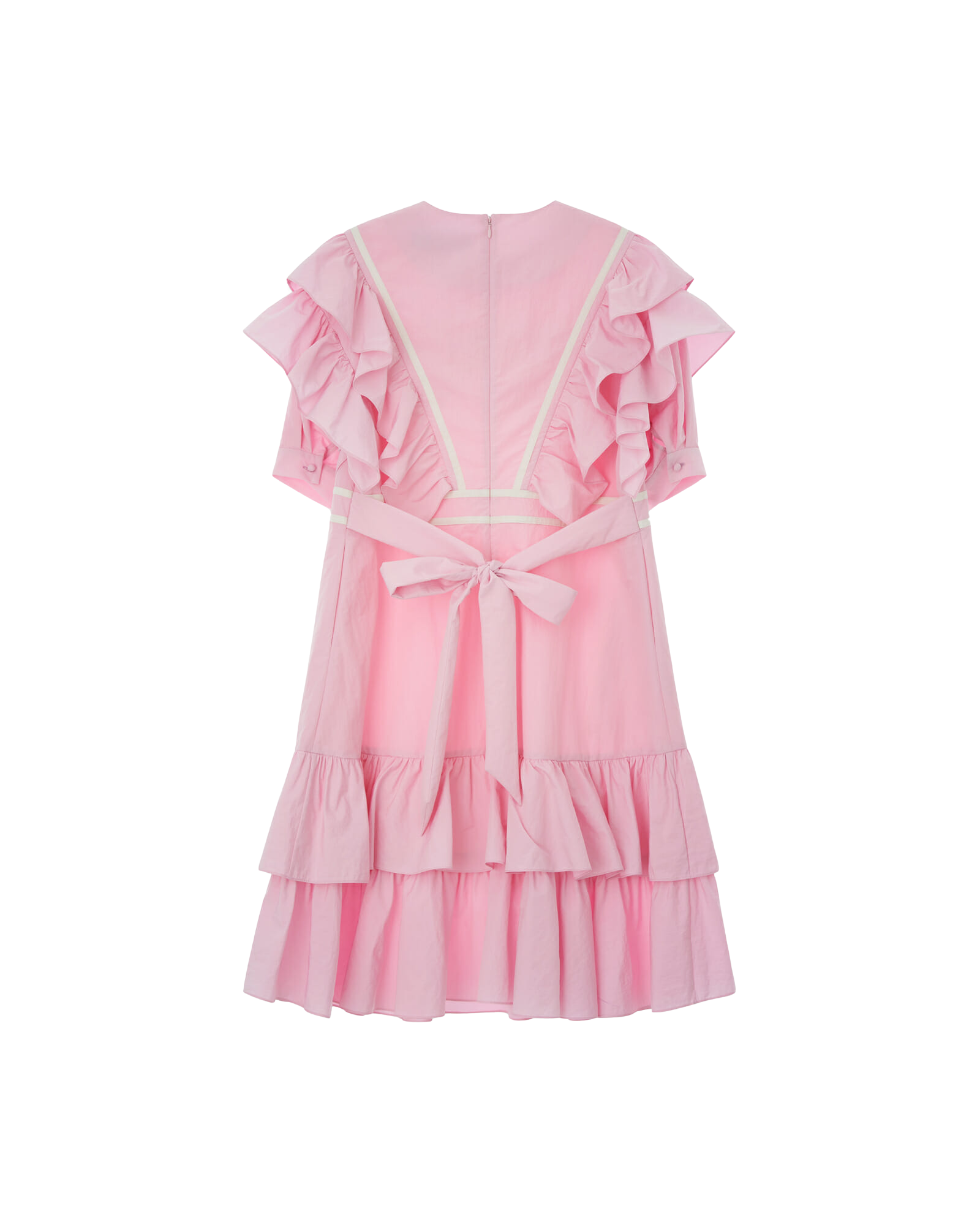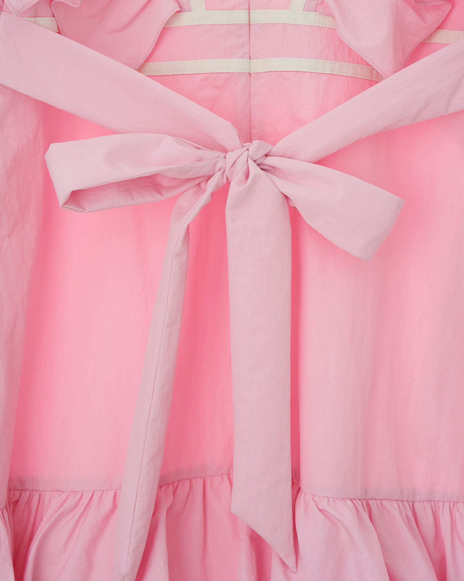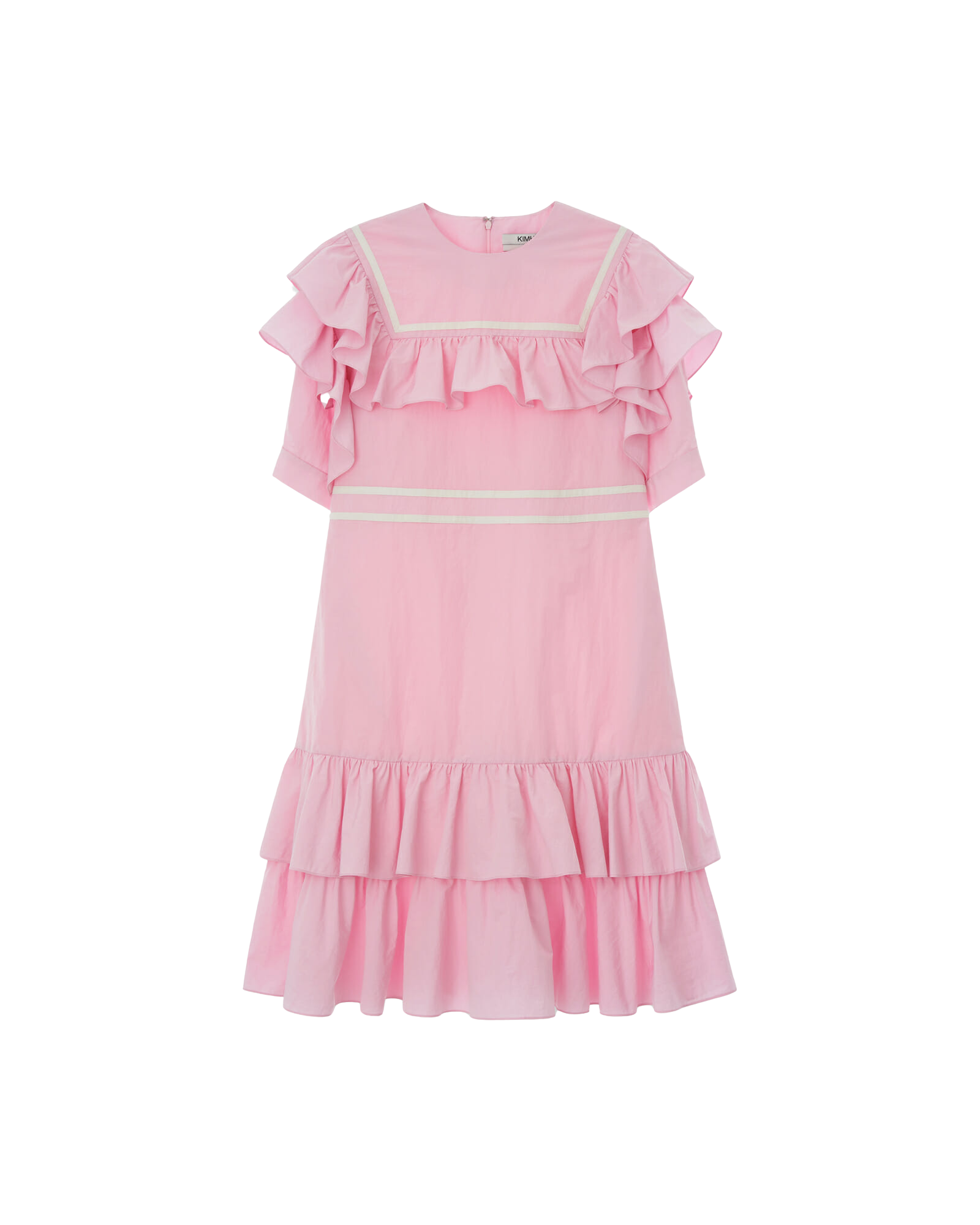 Ruffled Nylon Midi Dress (Pink/Ivory)