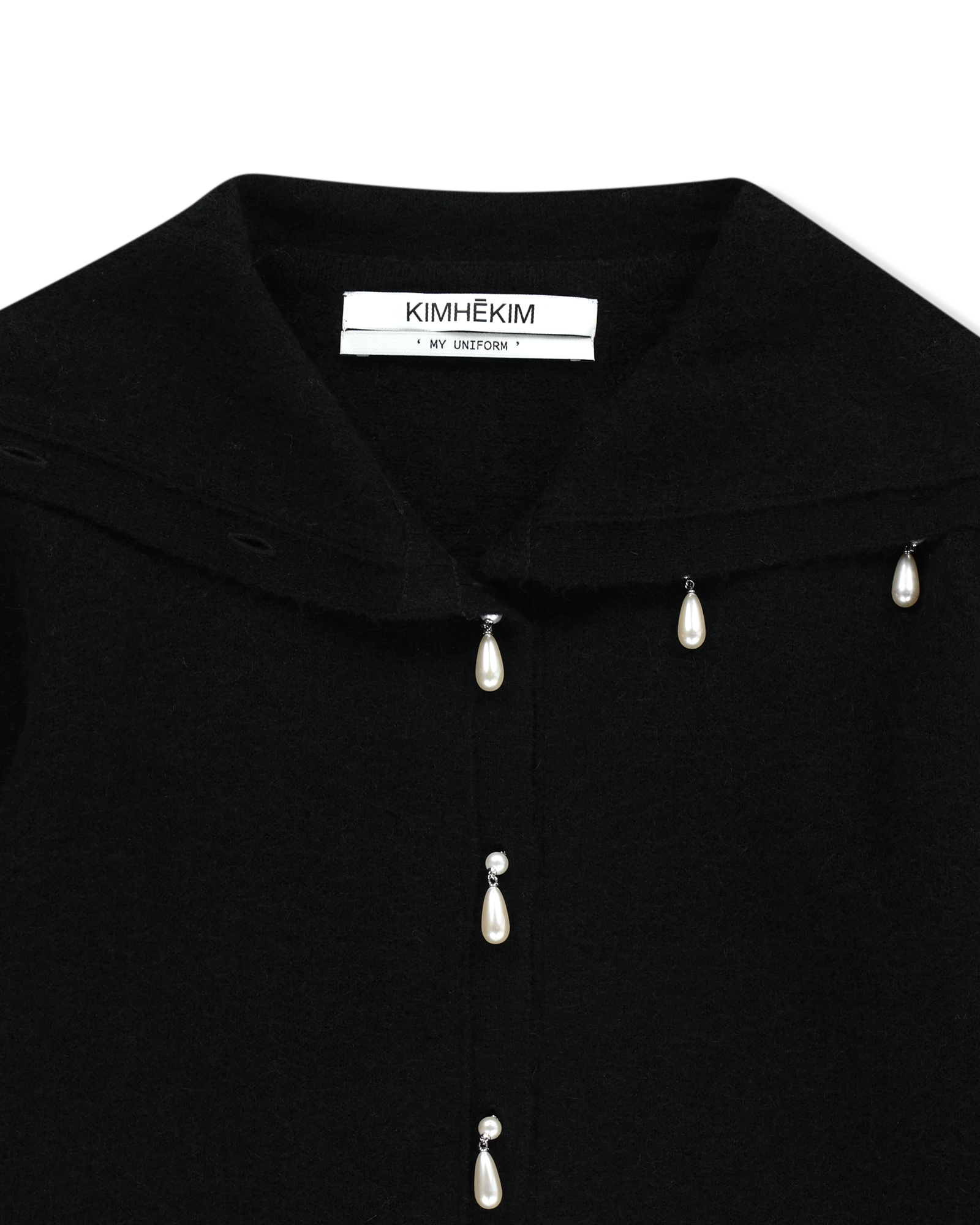-Featuring pearl drop buttons at the front and a sailor collar detail.