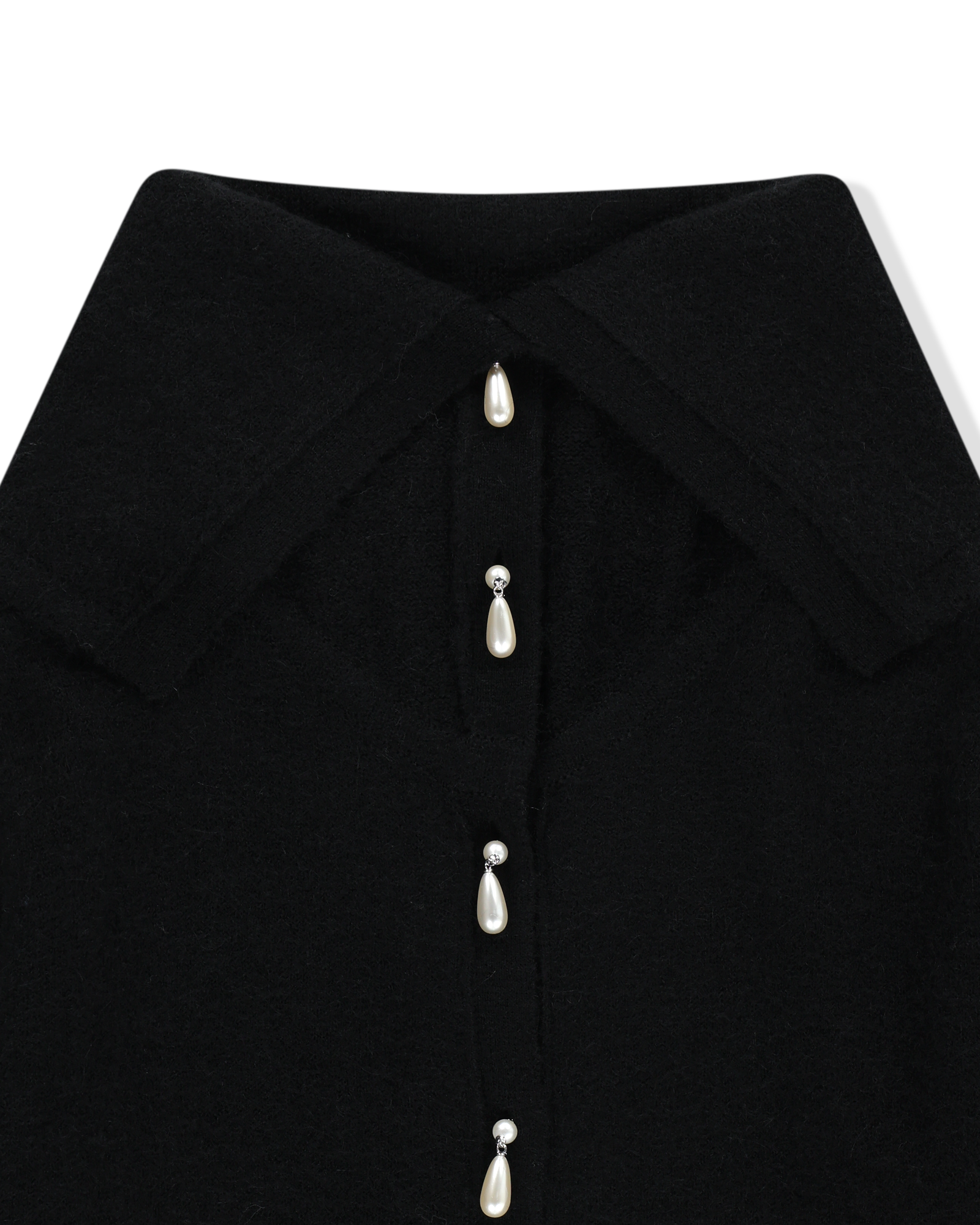 Pearl Embellished V-Neck Cardigan (Melange Dark Grey)