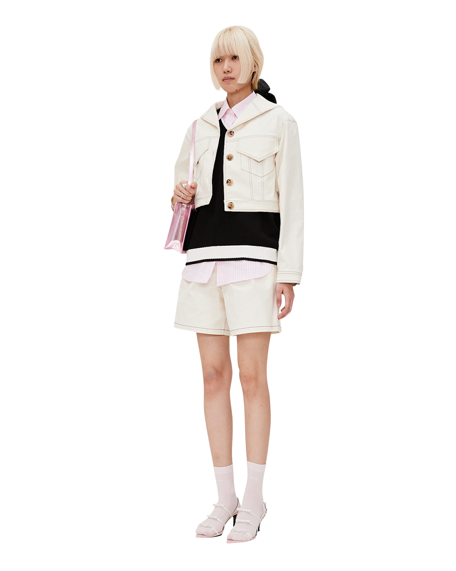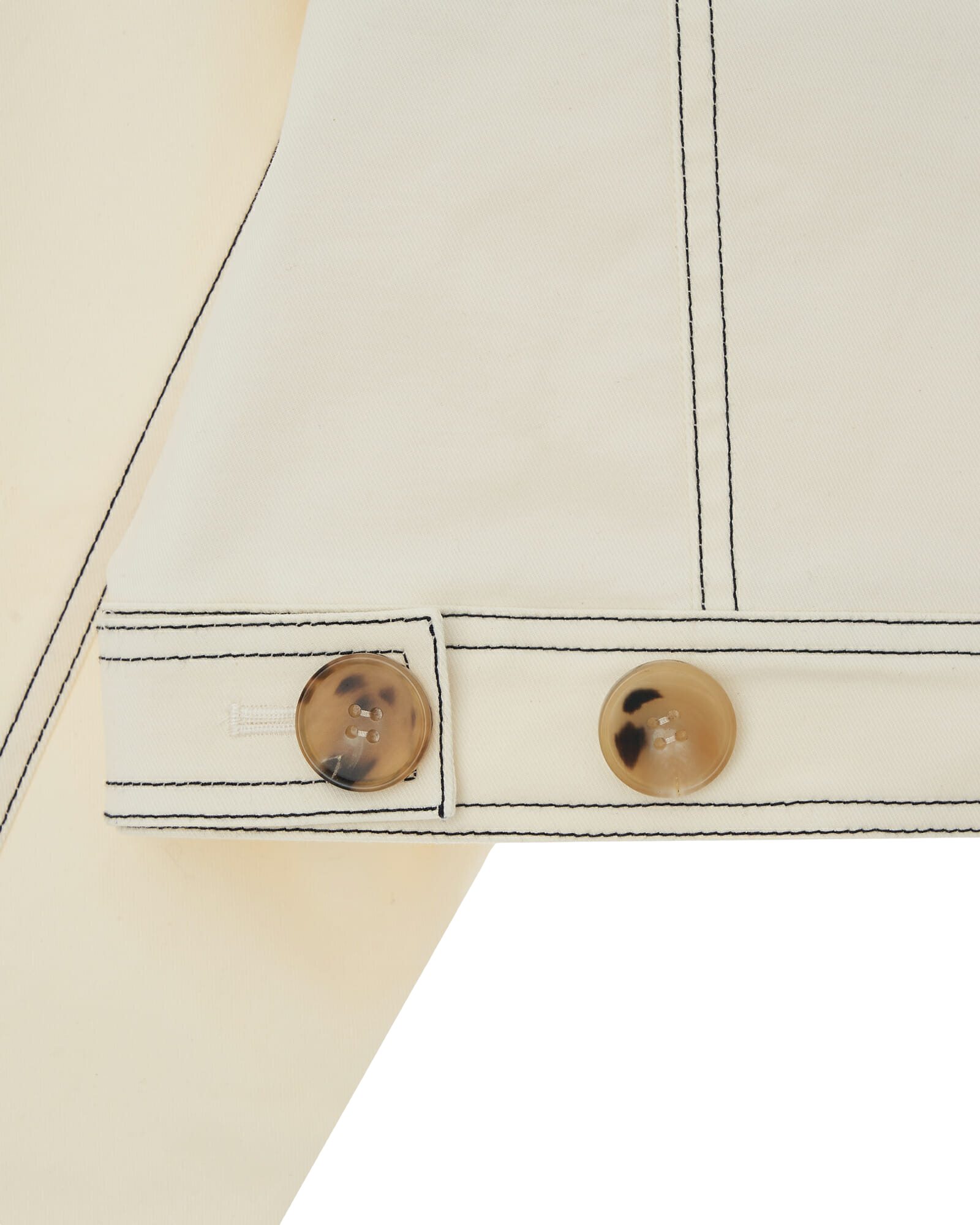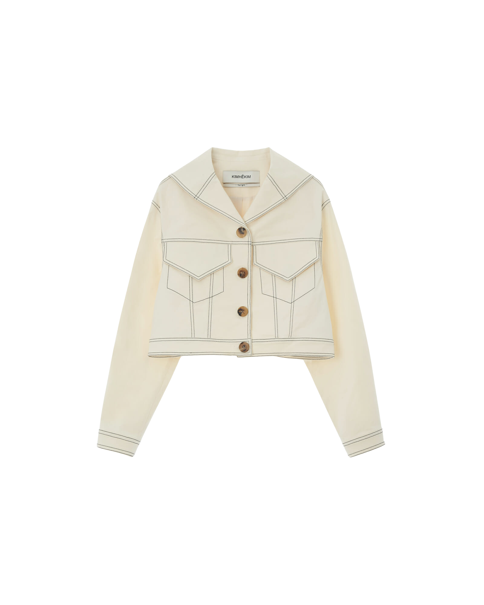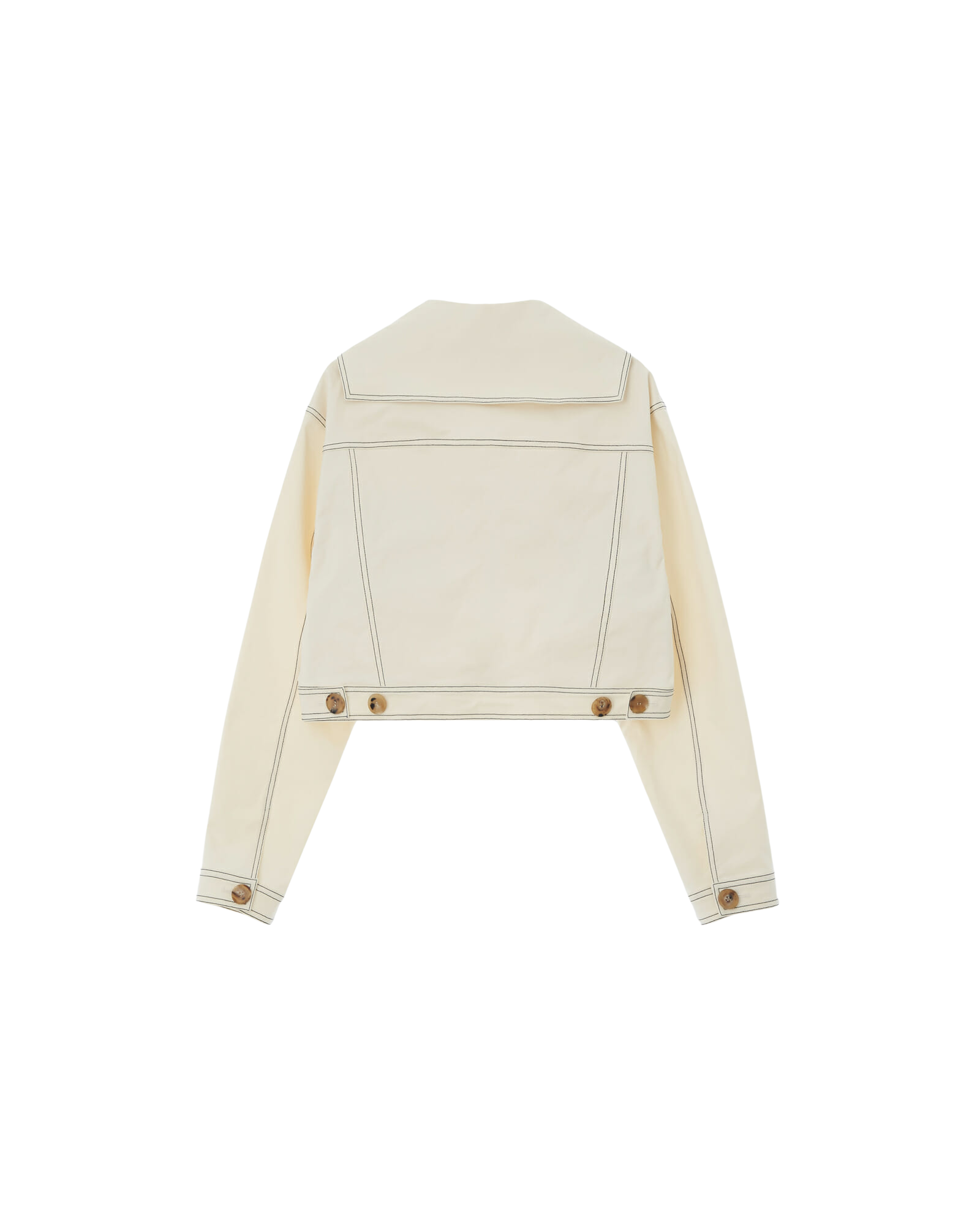 Semi-Cropped Cotton-Blended Trucker Jacket (Ivory)
