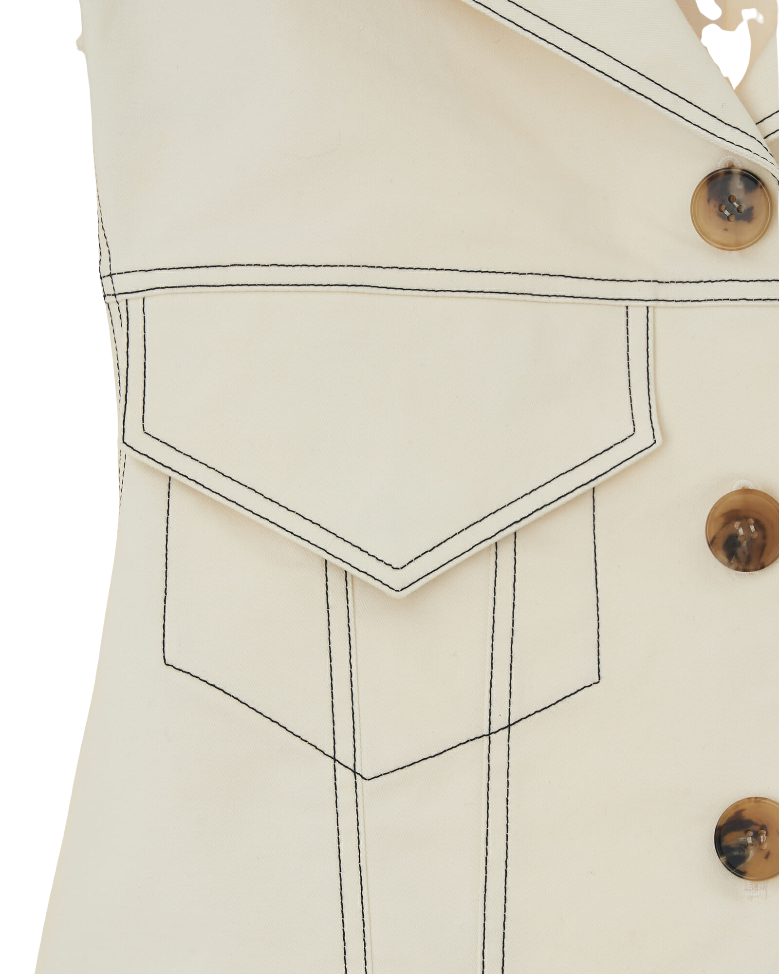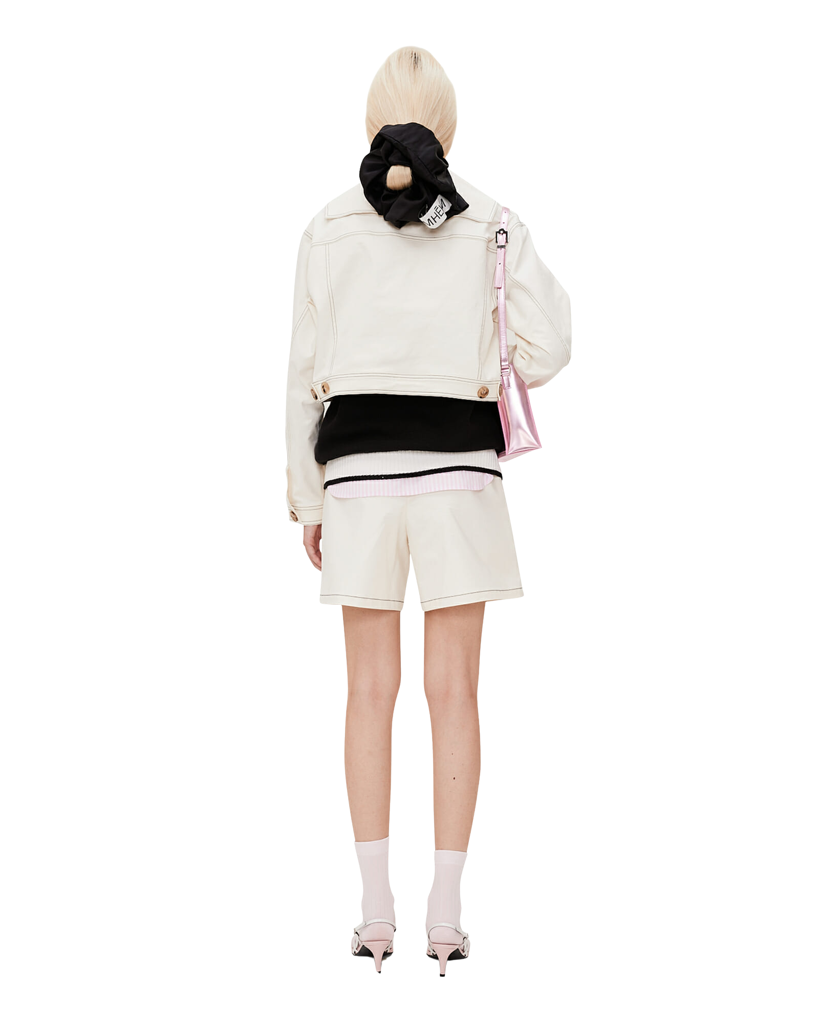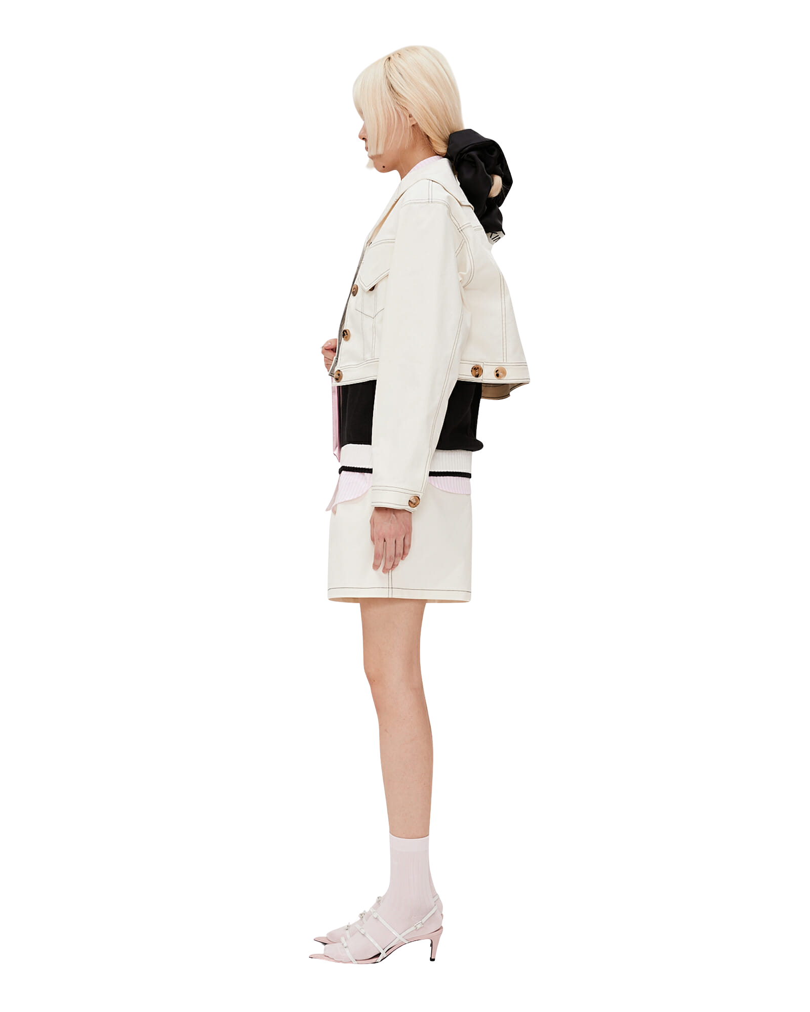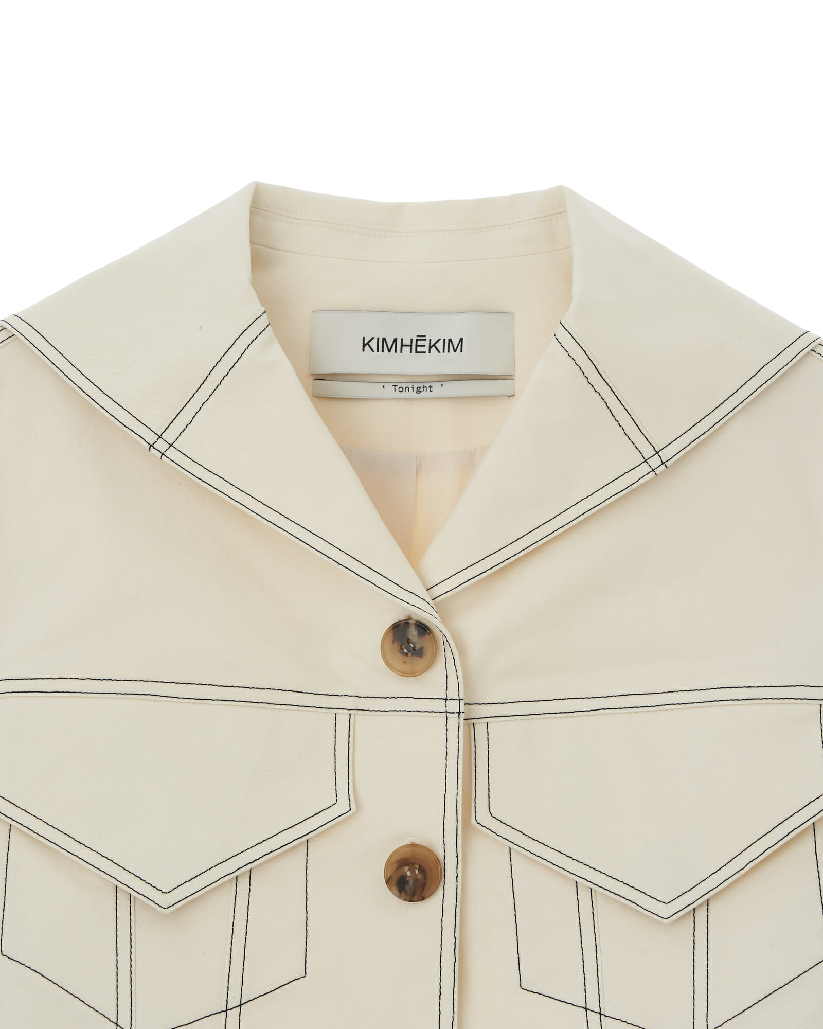 Semi-Cropped Cotton-Blended Trucker Jacket (Ivory)