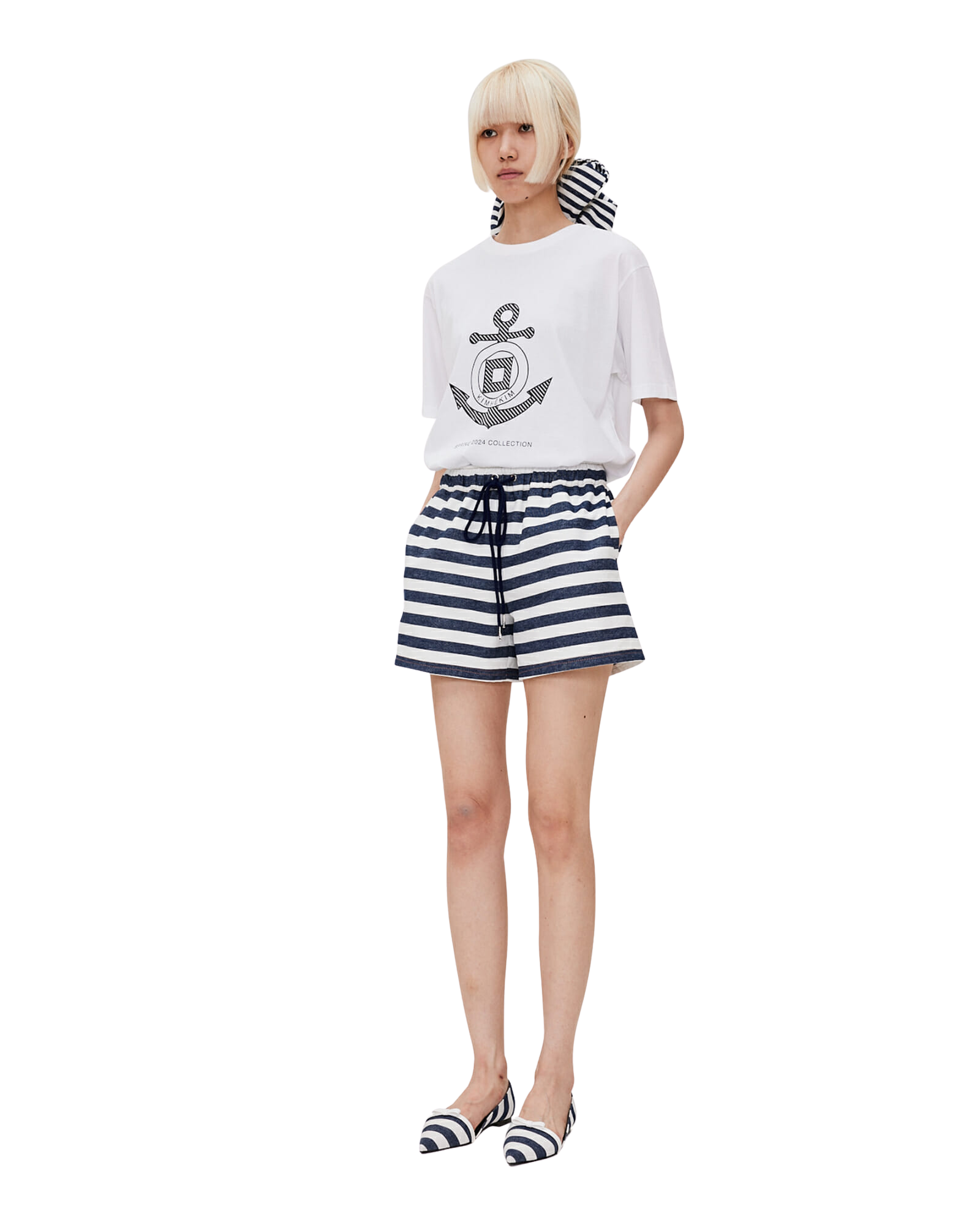 Striped Denim Shorts (Navy)