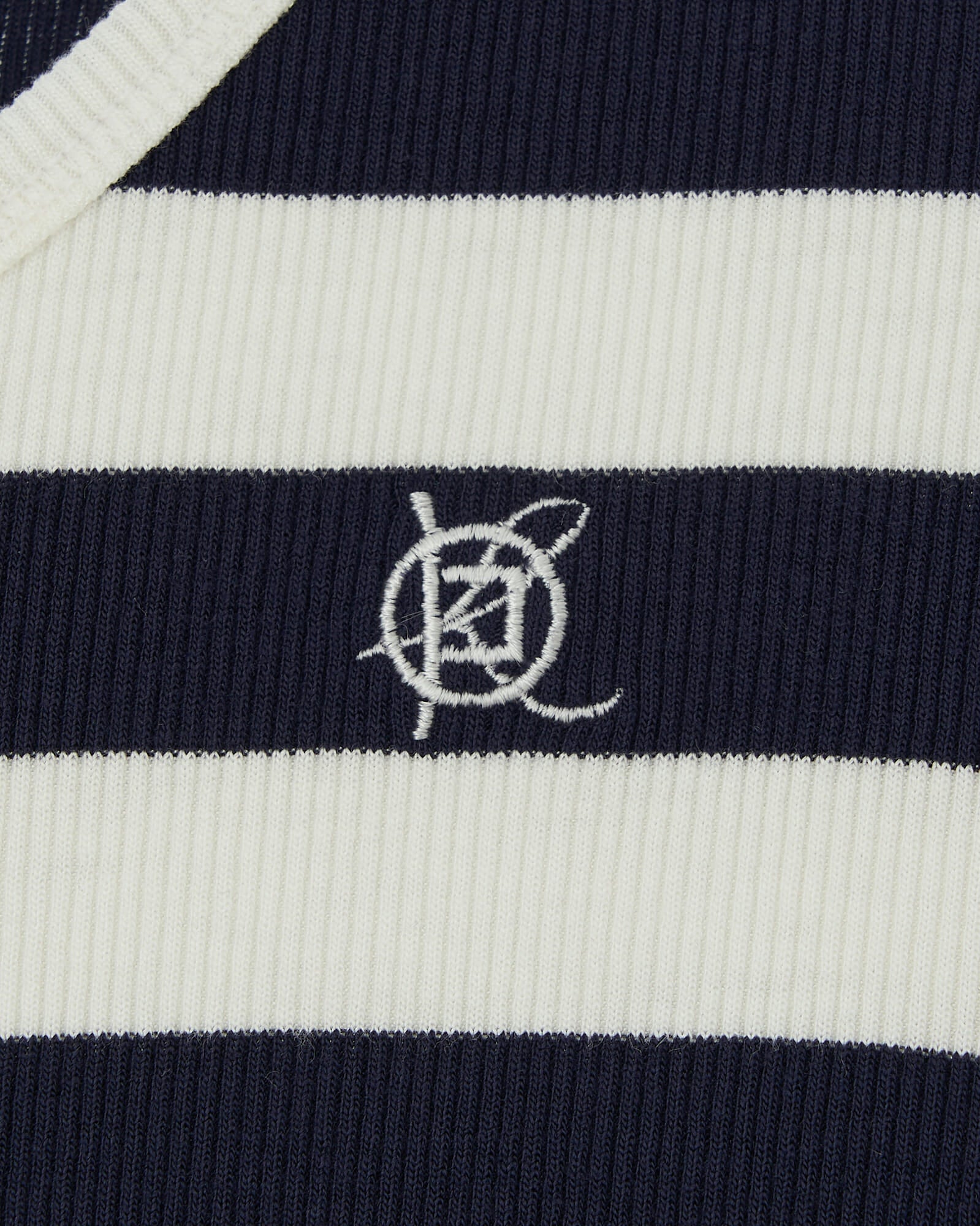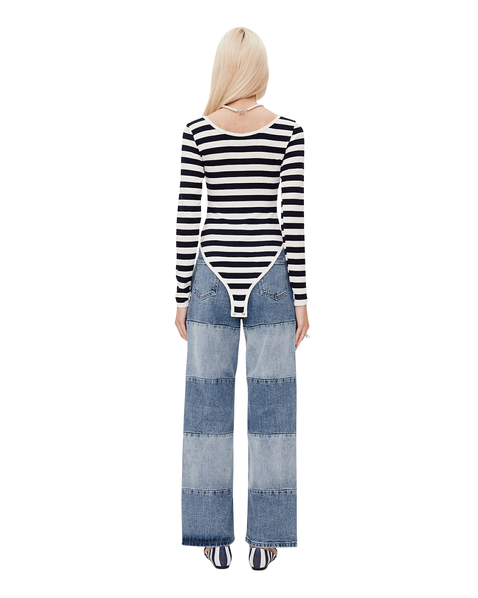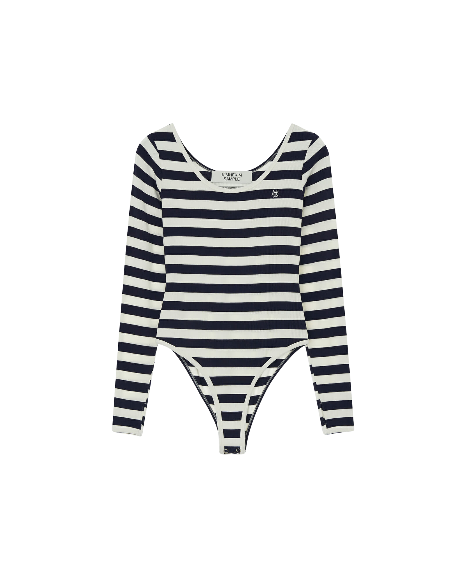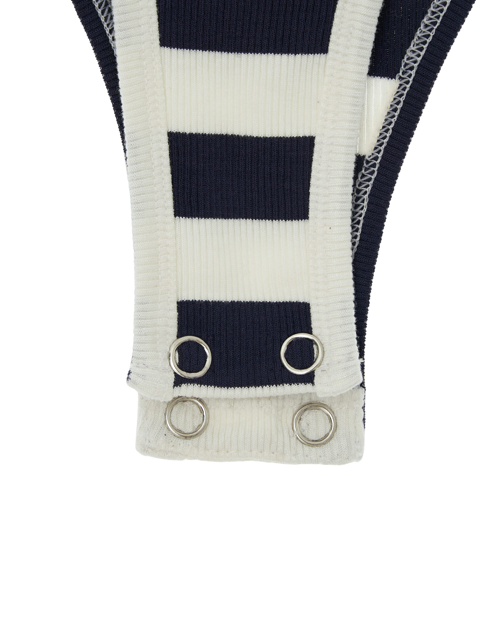 Striped Jersey Long-Sleeved Bodysuit (Navy)