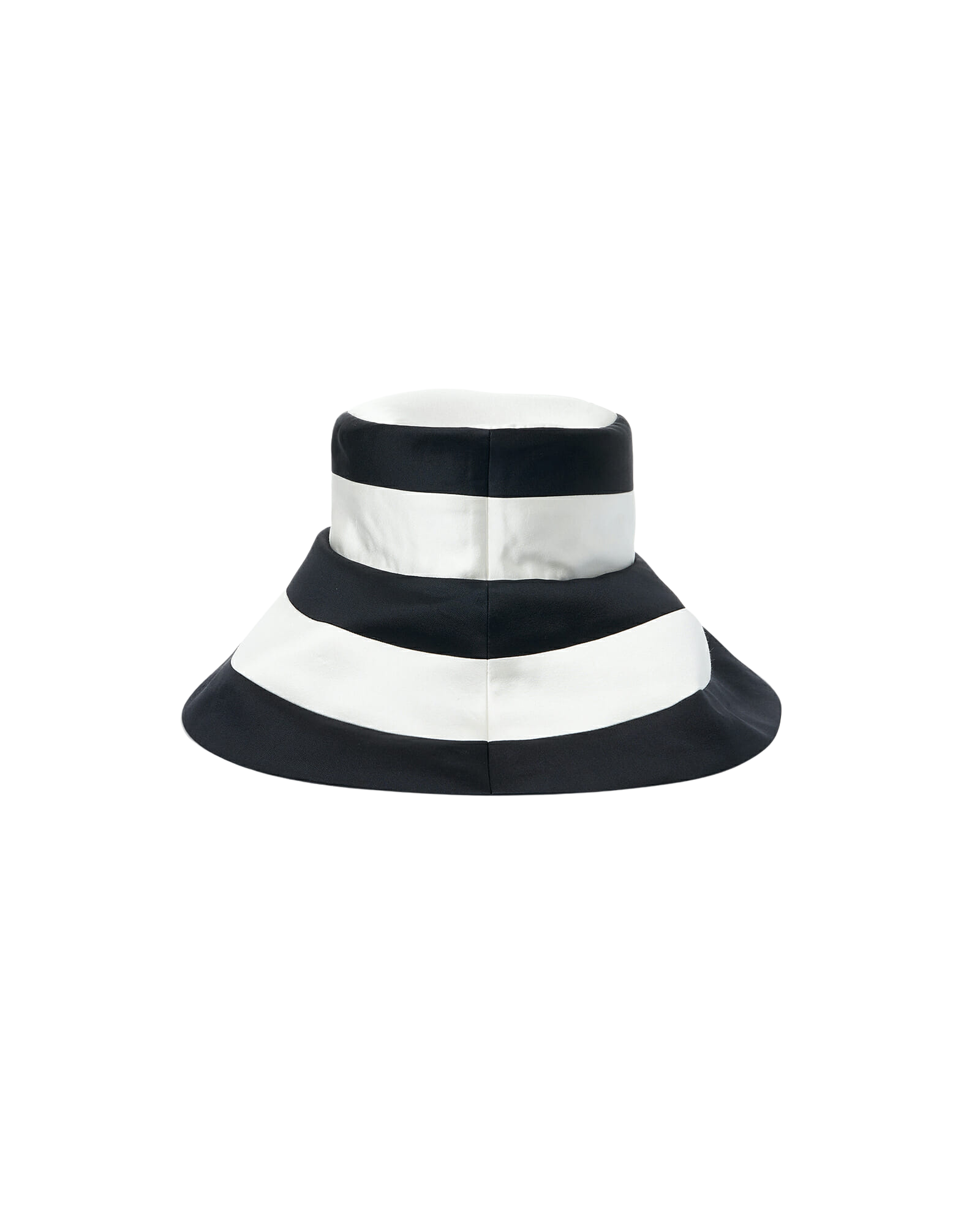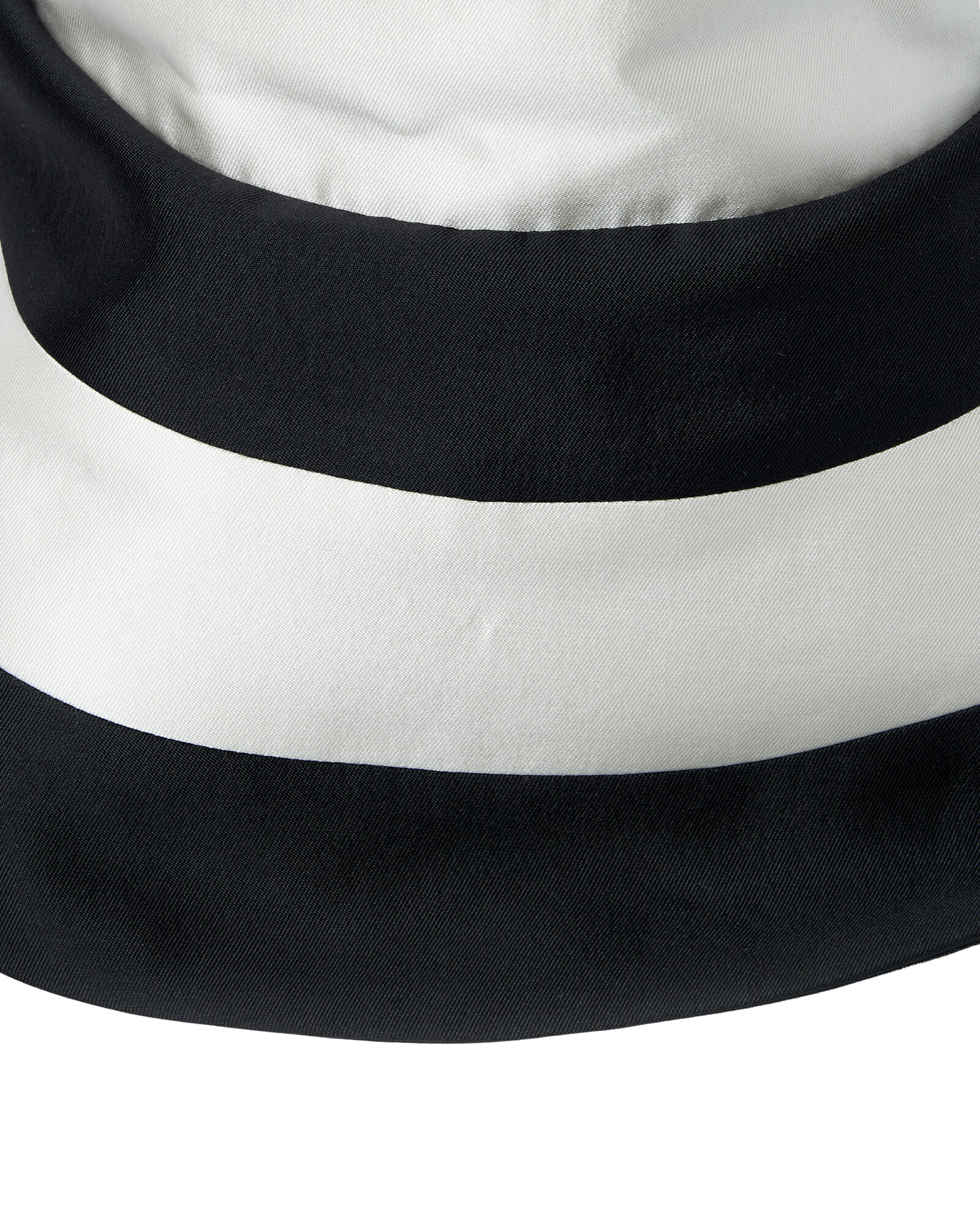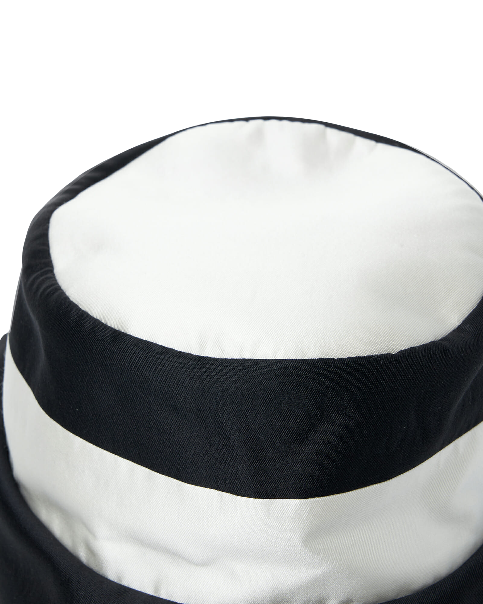 Striped Mikado Silk Bucket Hat (Black/Ivory)