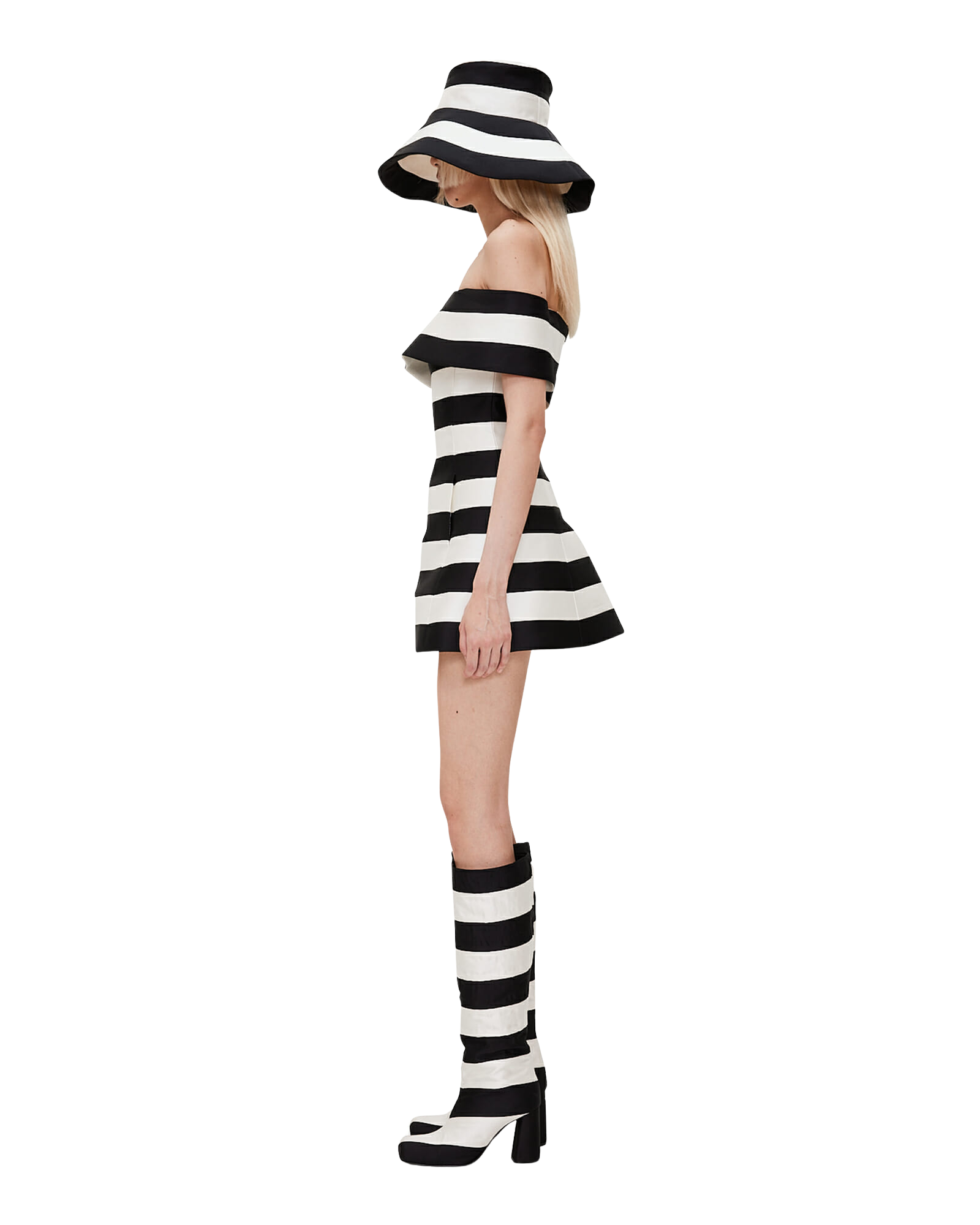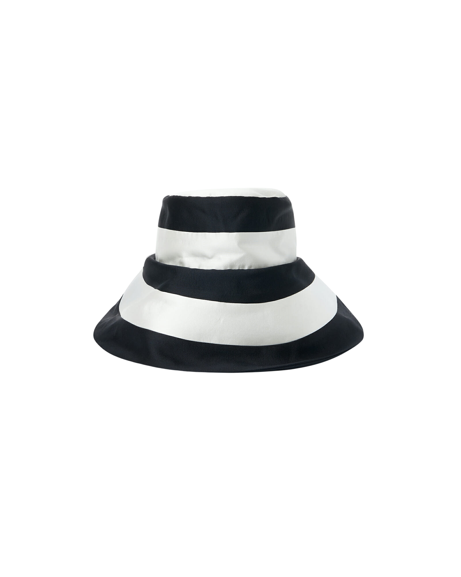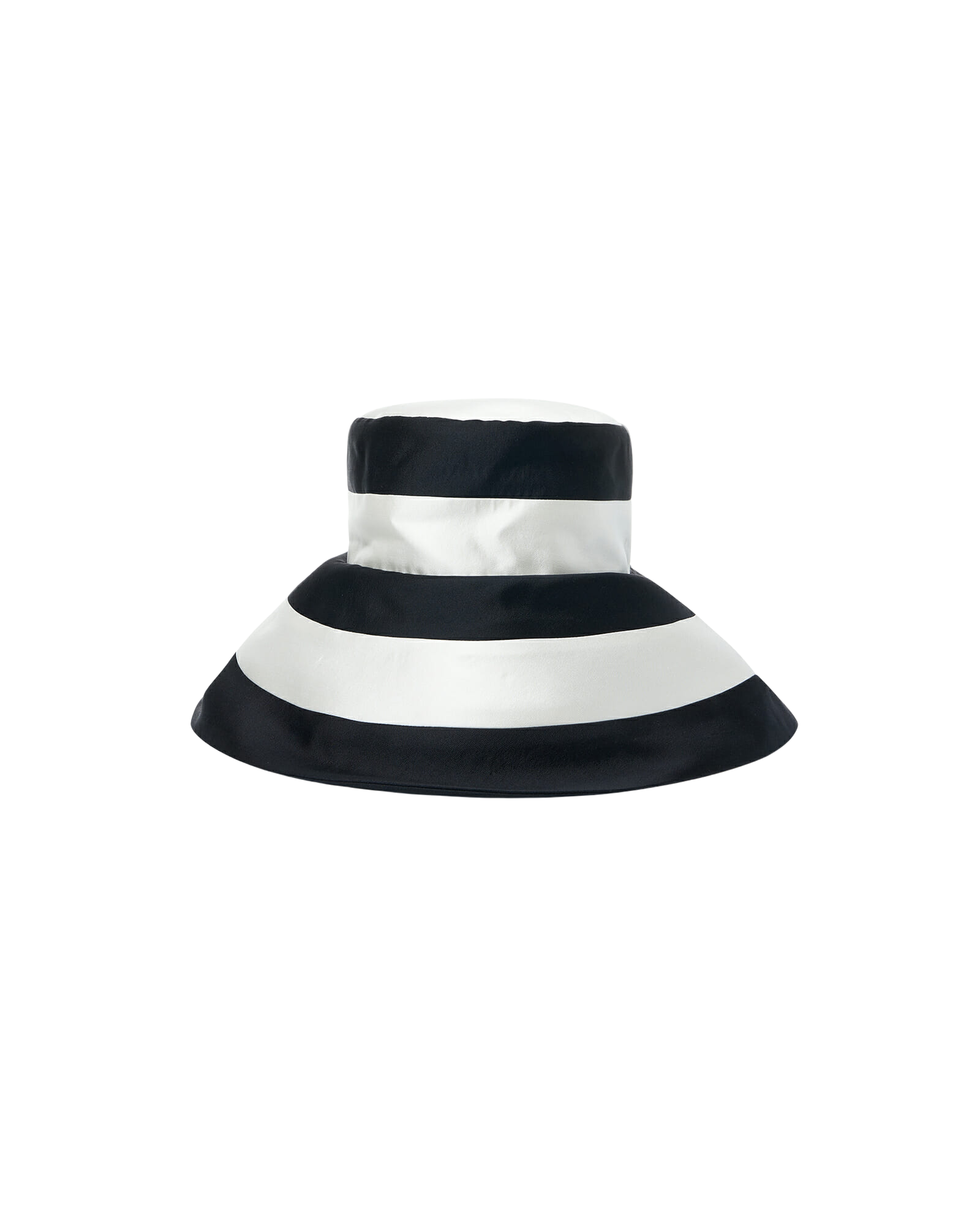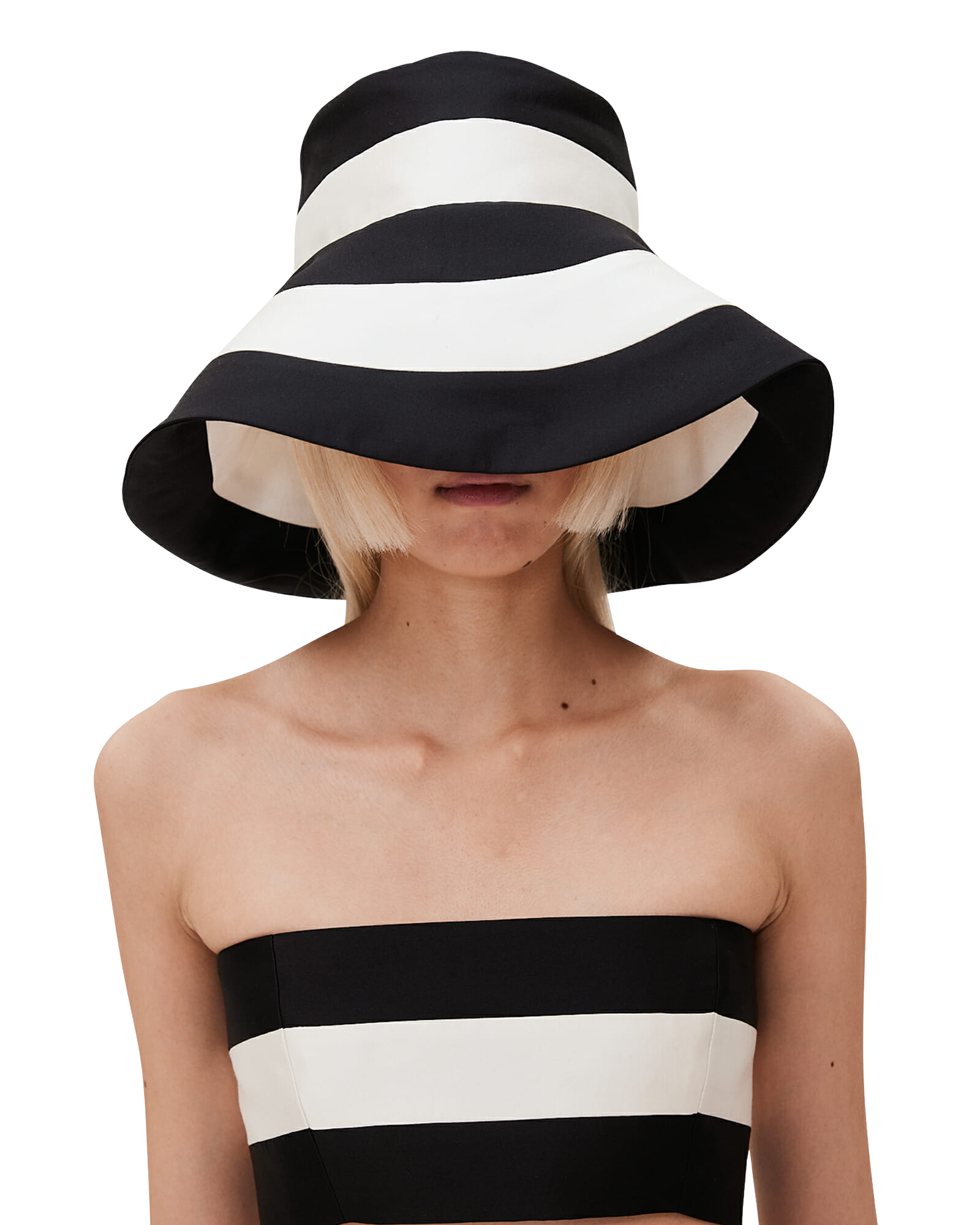 Striped Mikado Silk Bucket Hat (Black/Ivory)