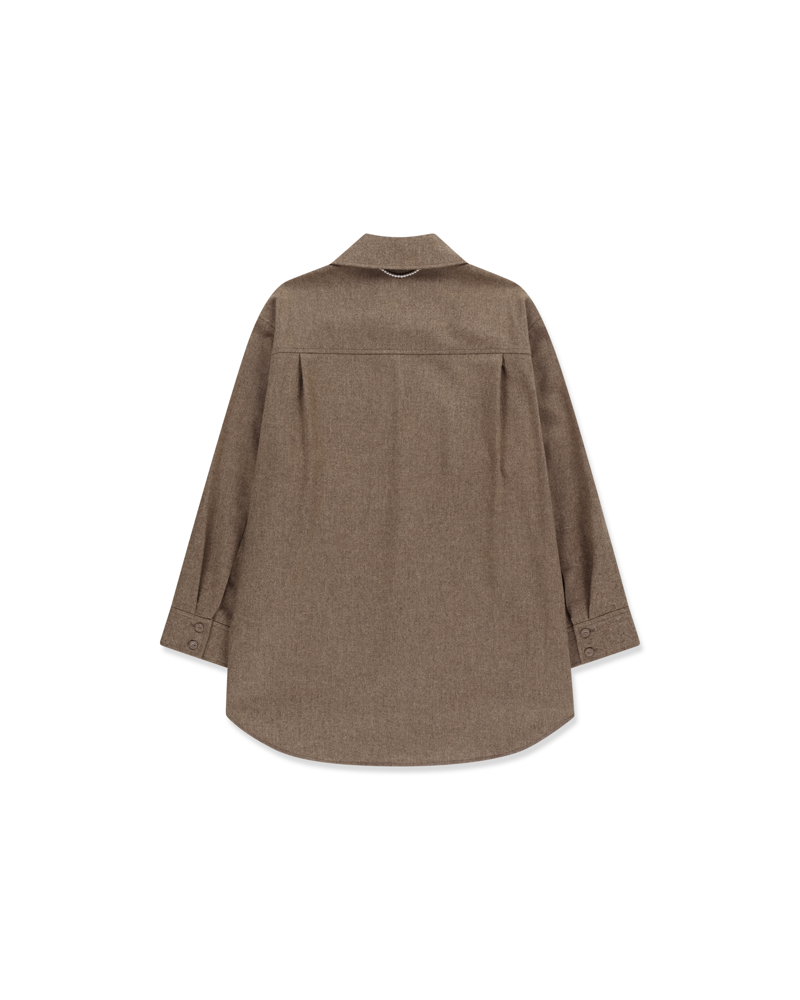 Pearl Embellished V-Neck Cardigan (Melange Dark Grey)