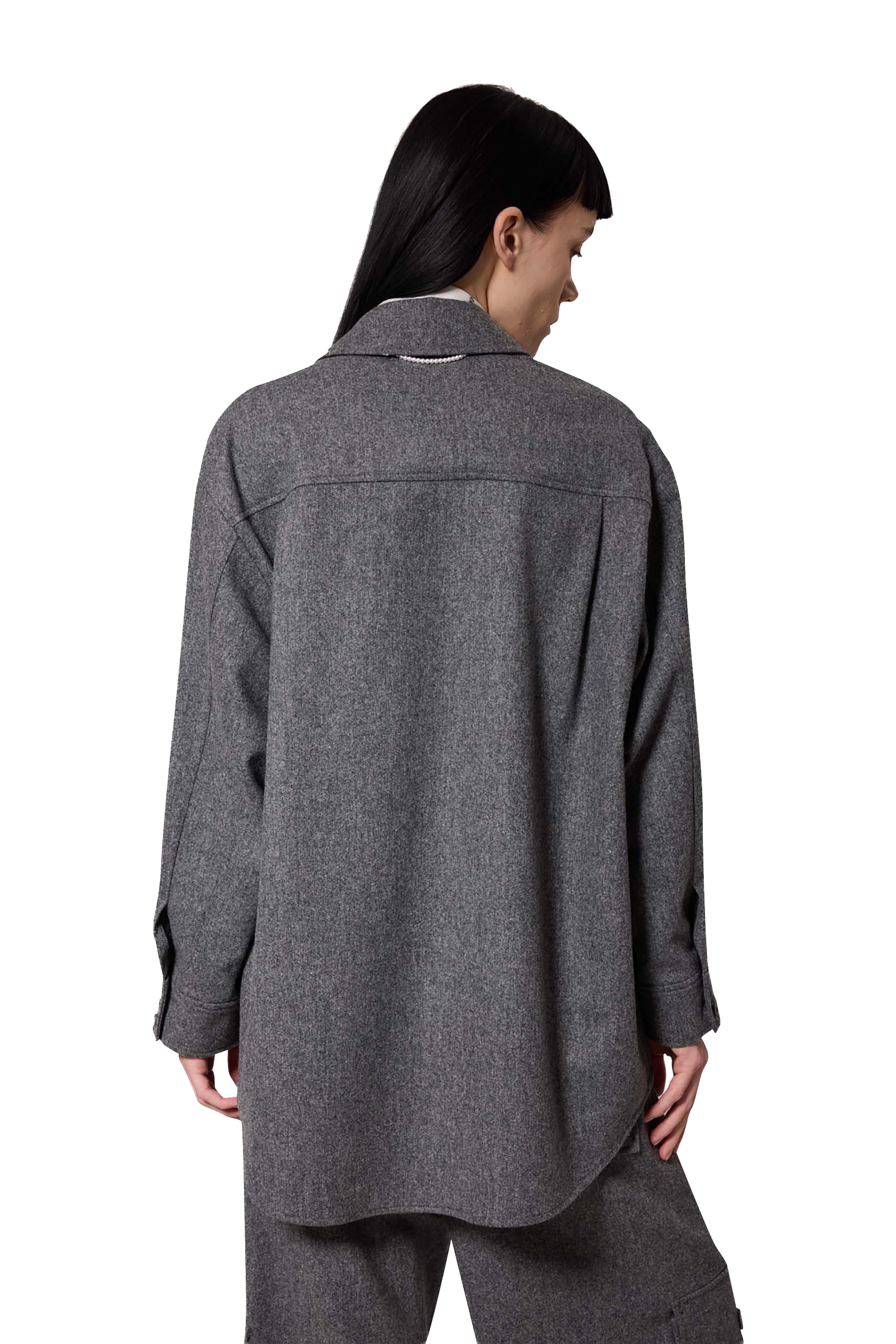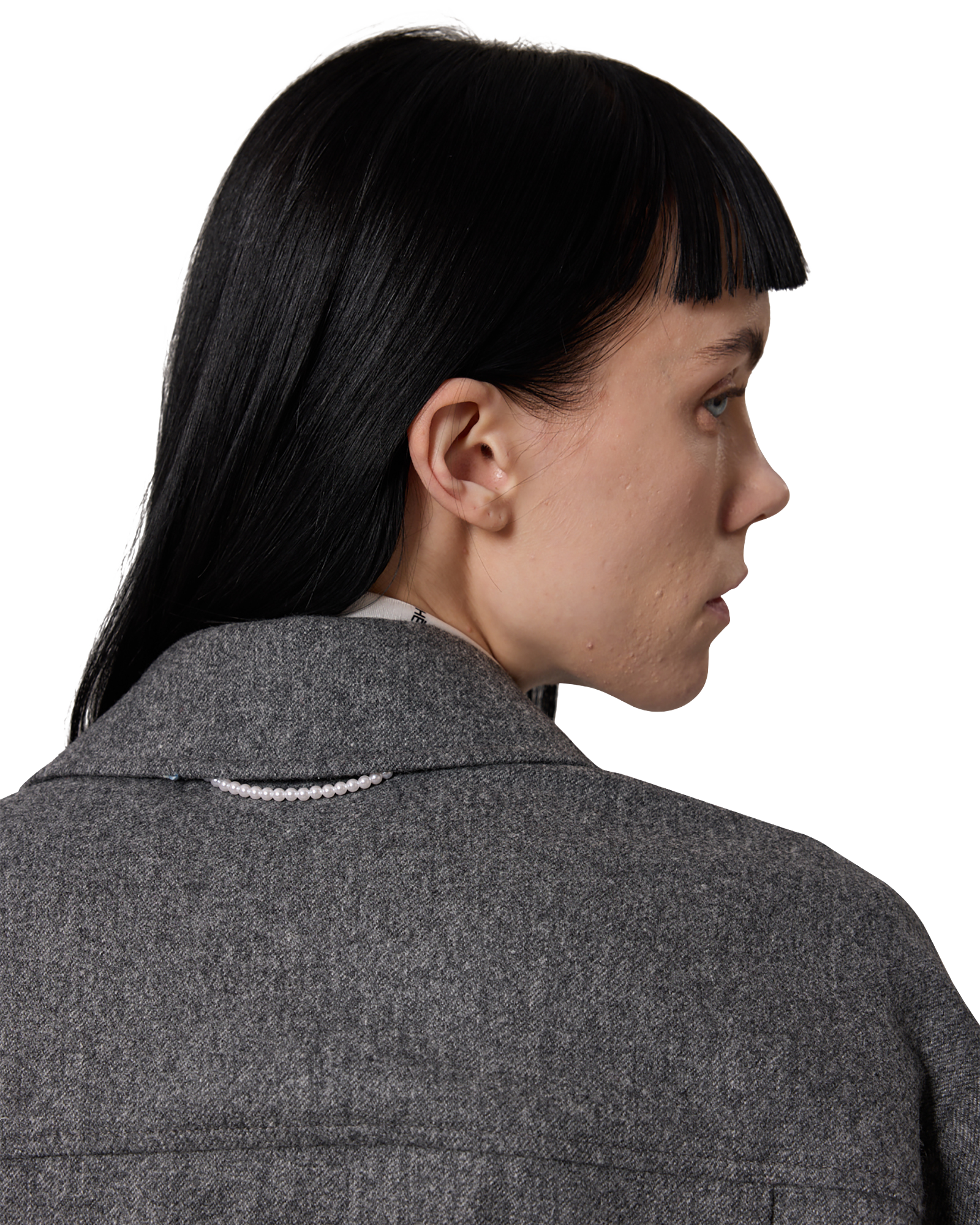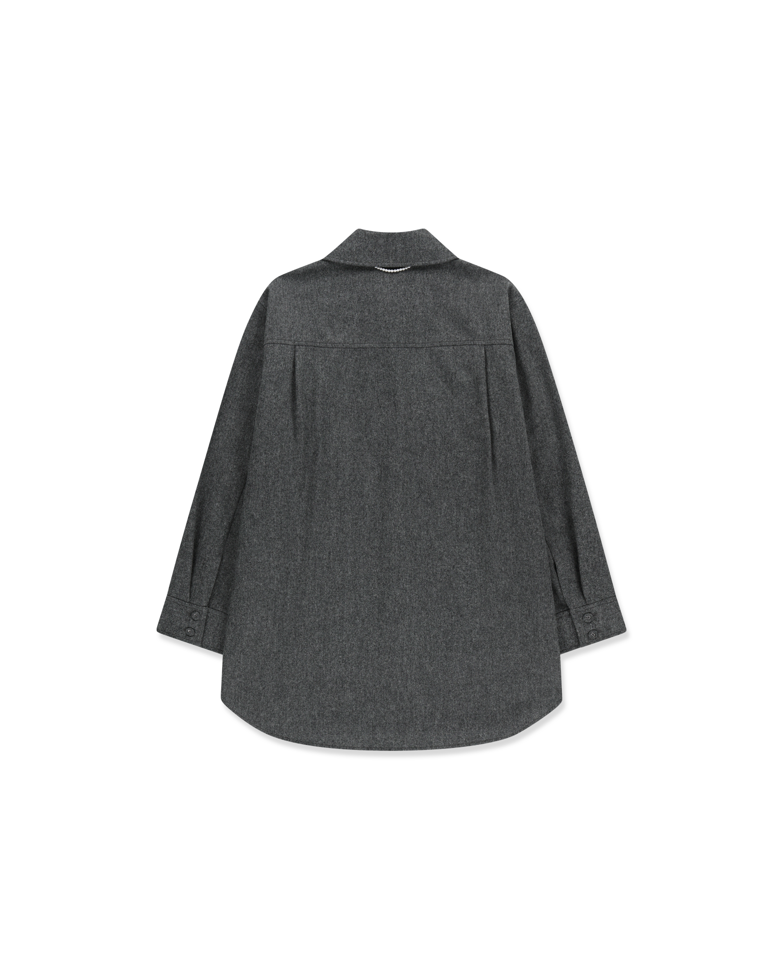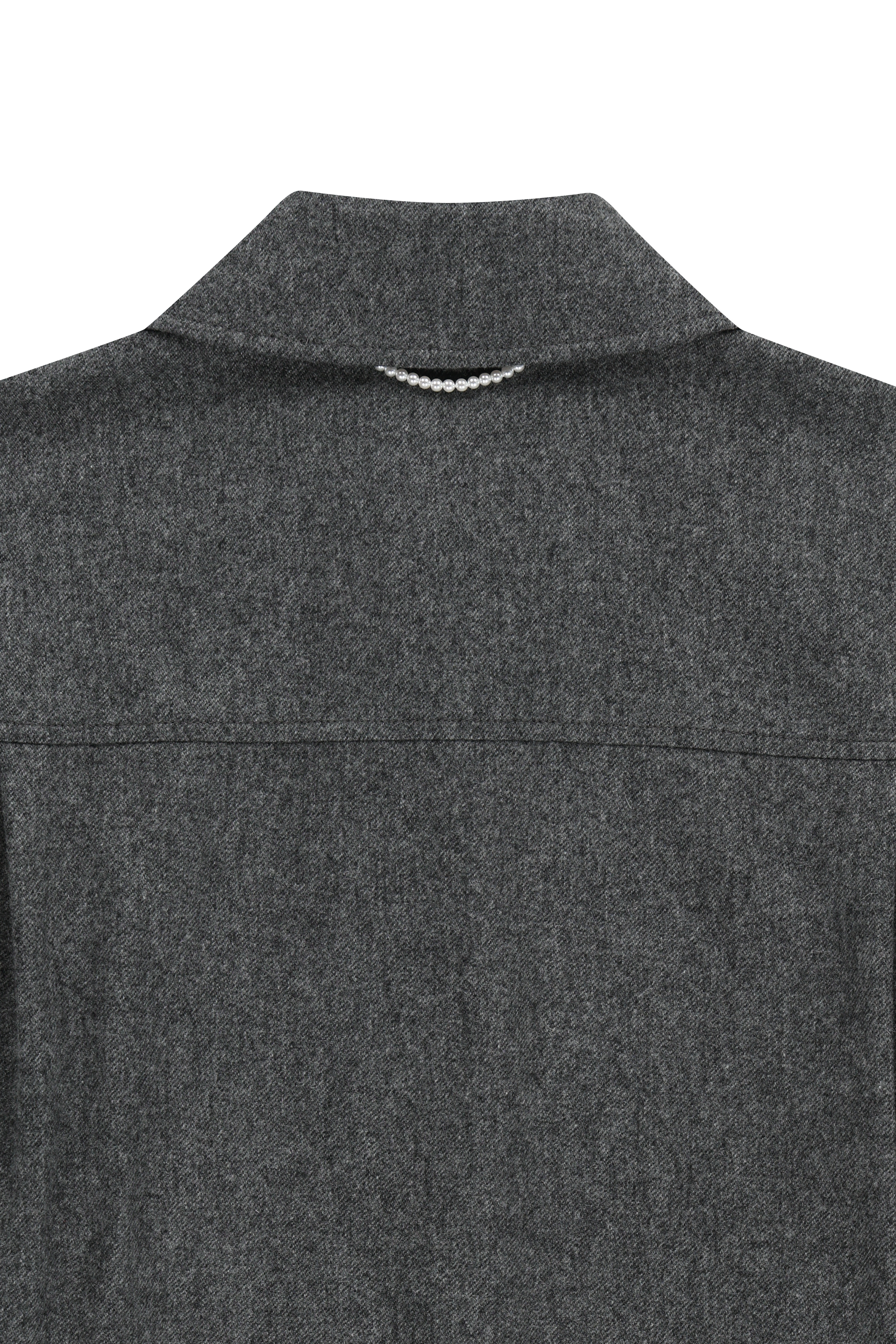 Pearl Embellished V-Neck Cardigan (Melange Dark Grey)