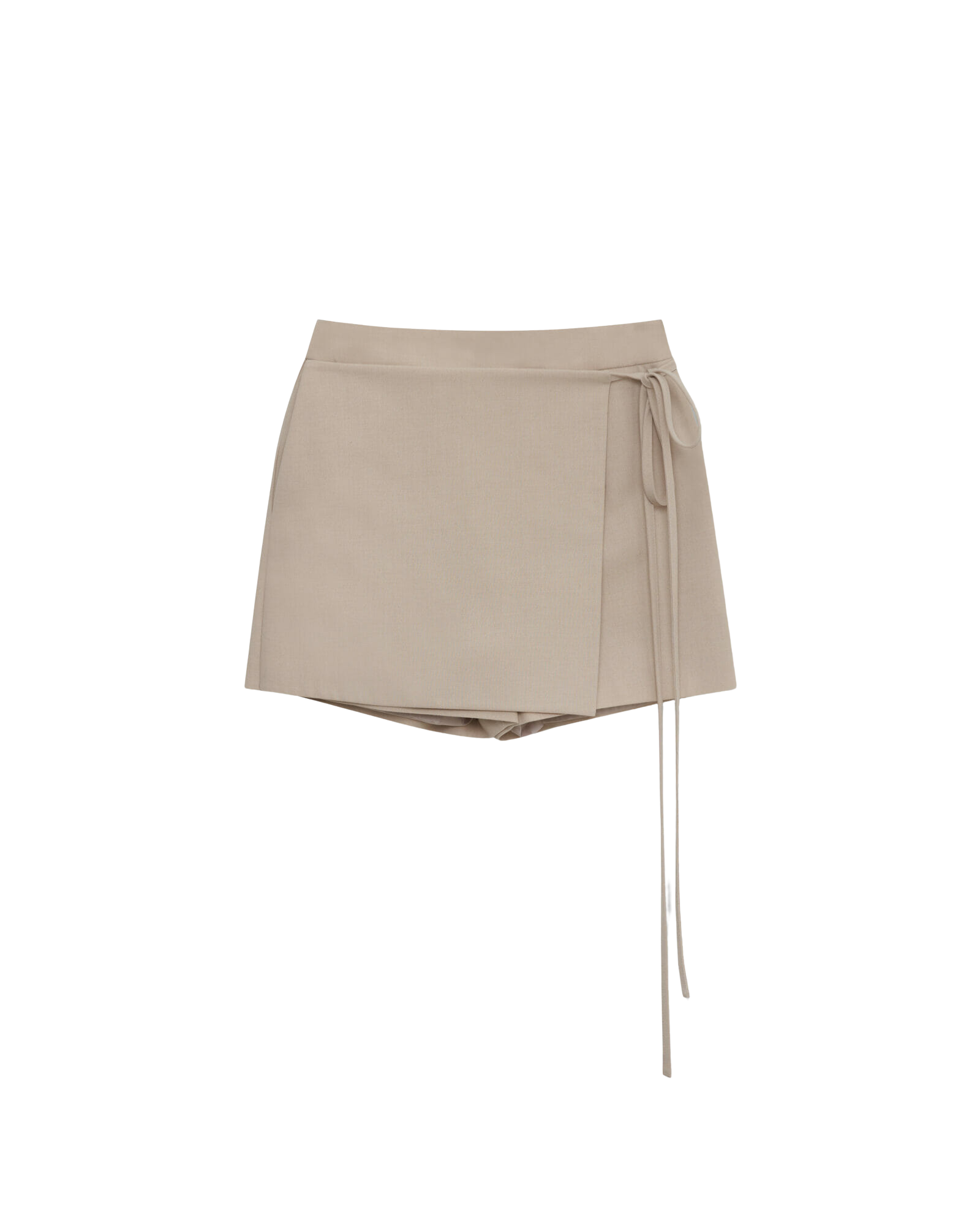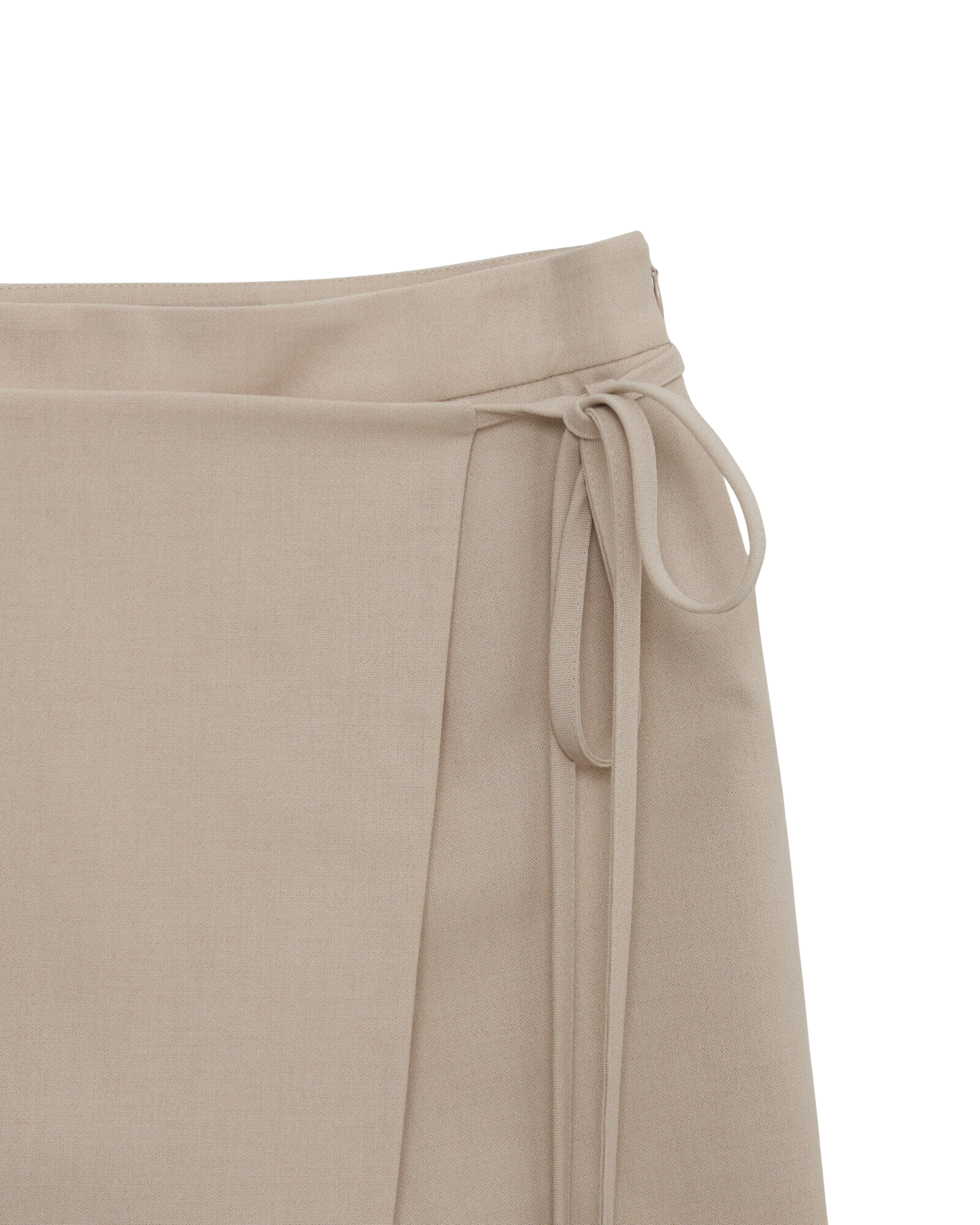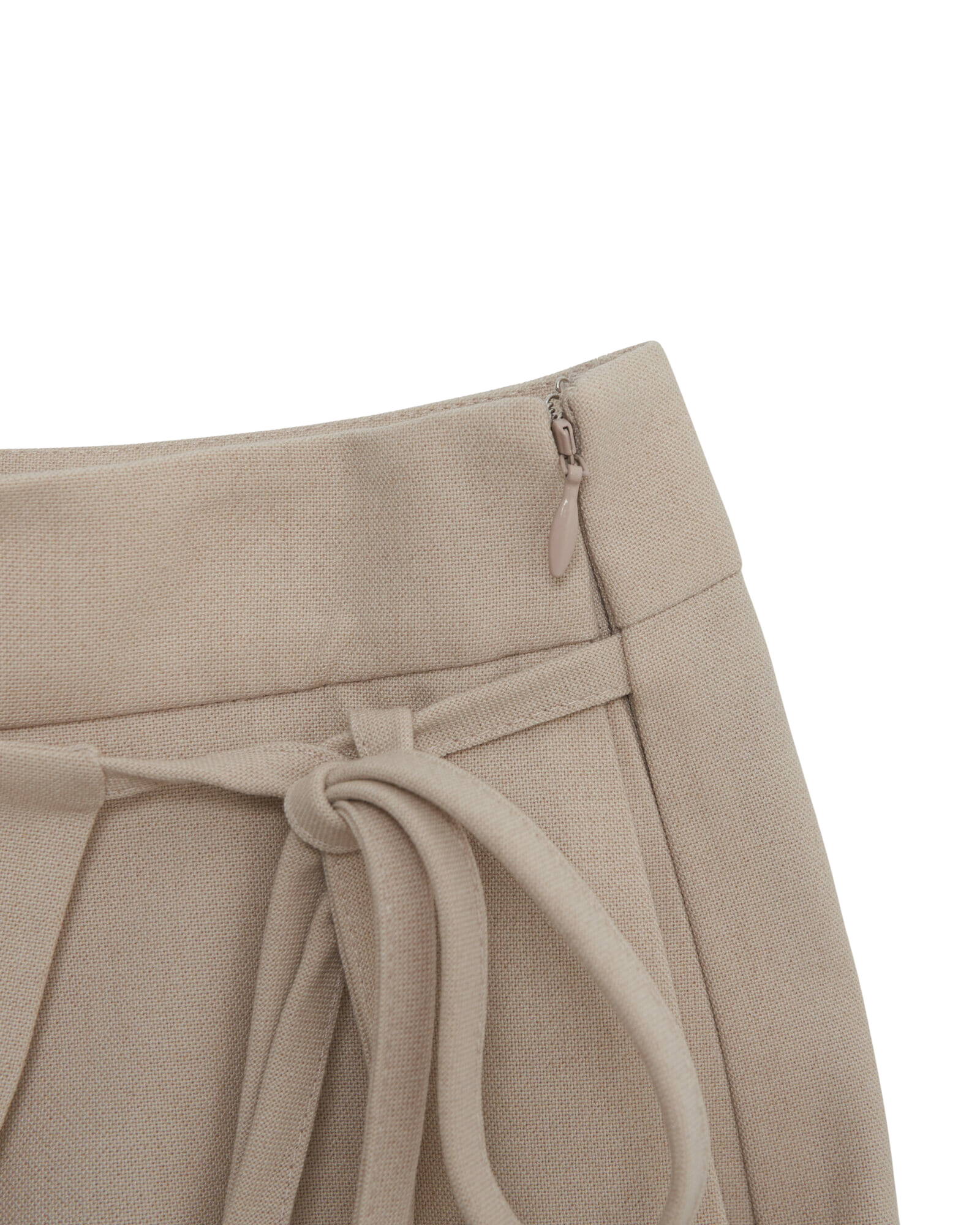 -Designed to be wrapped pants skirt with ribbon strap detail.