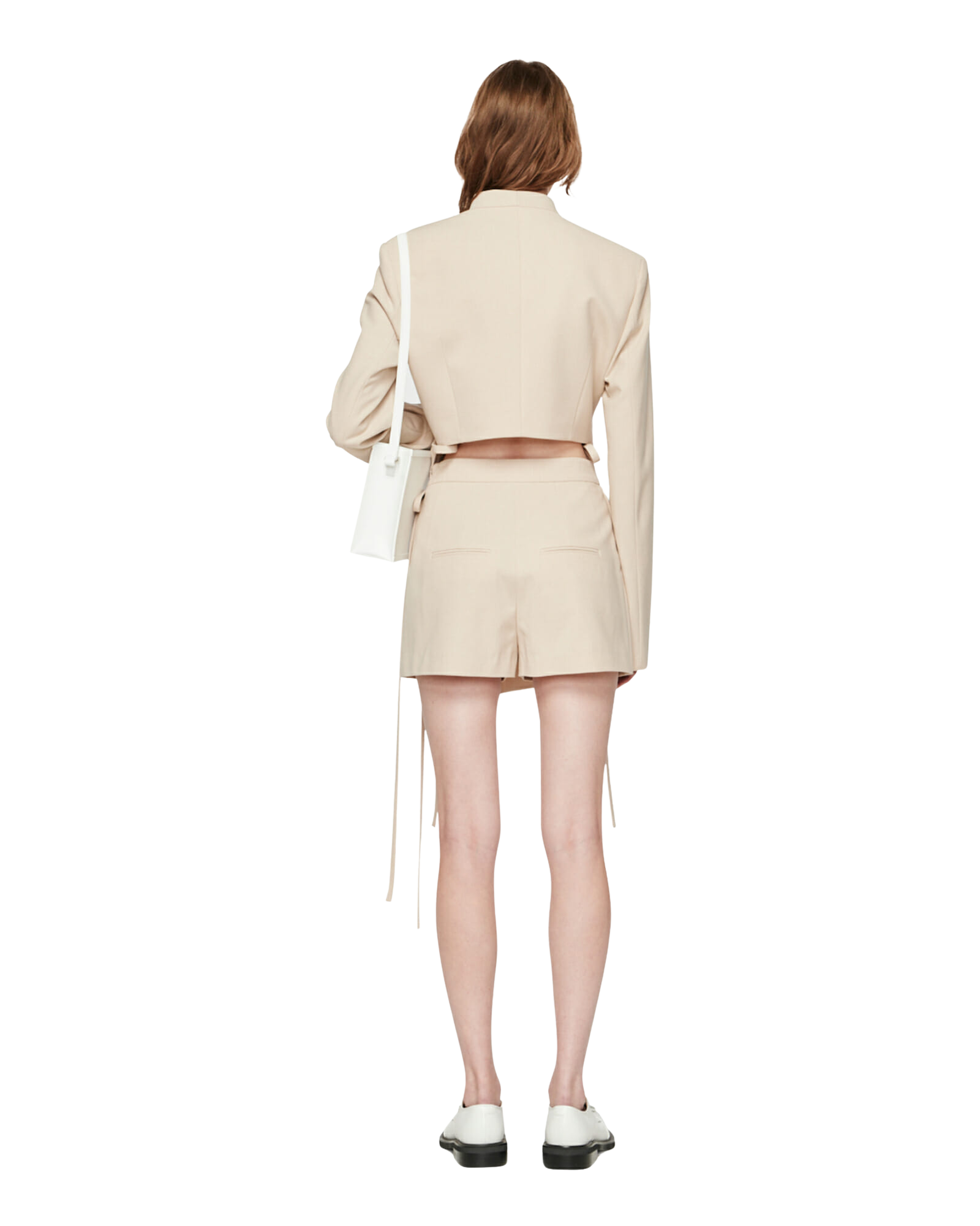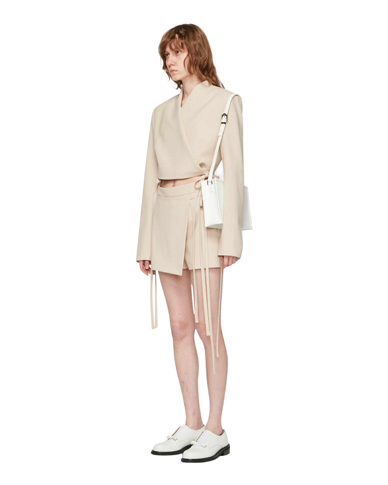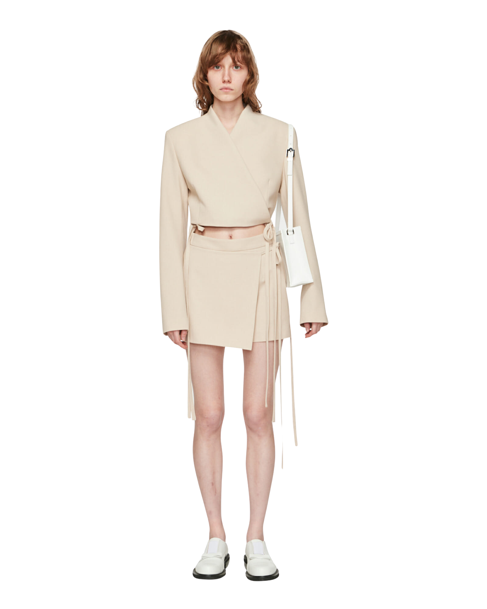 -Designed to be wrapped pants skirt with ribbon strap detail.