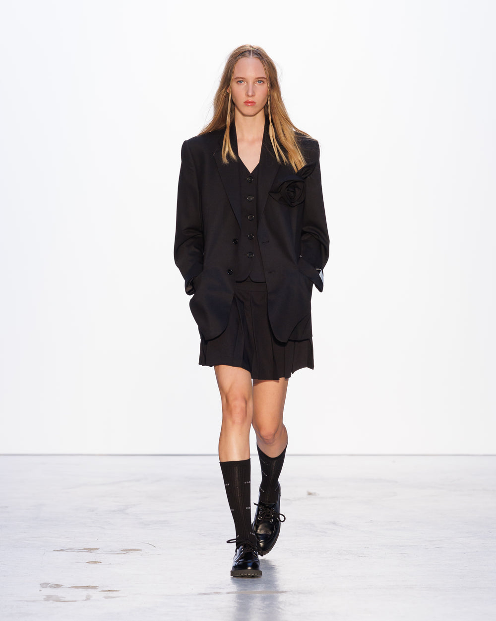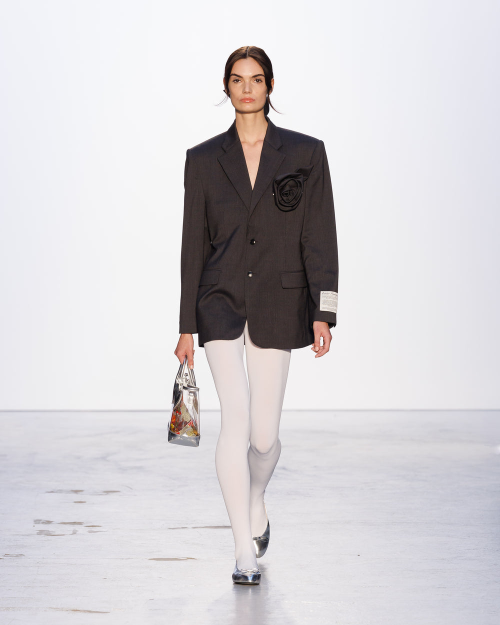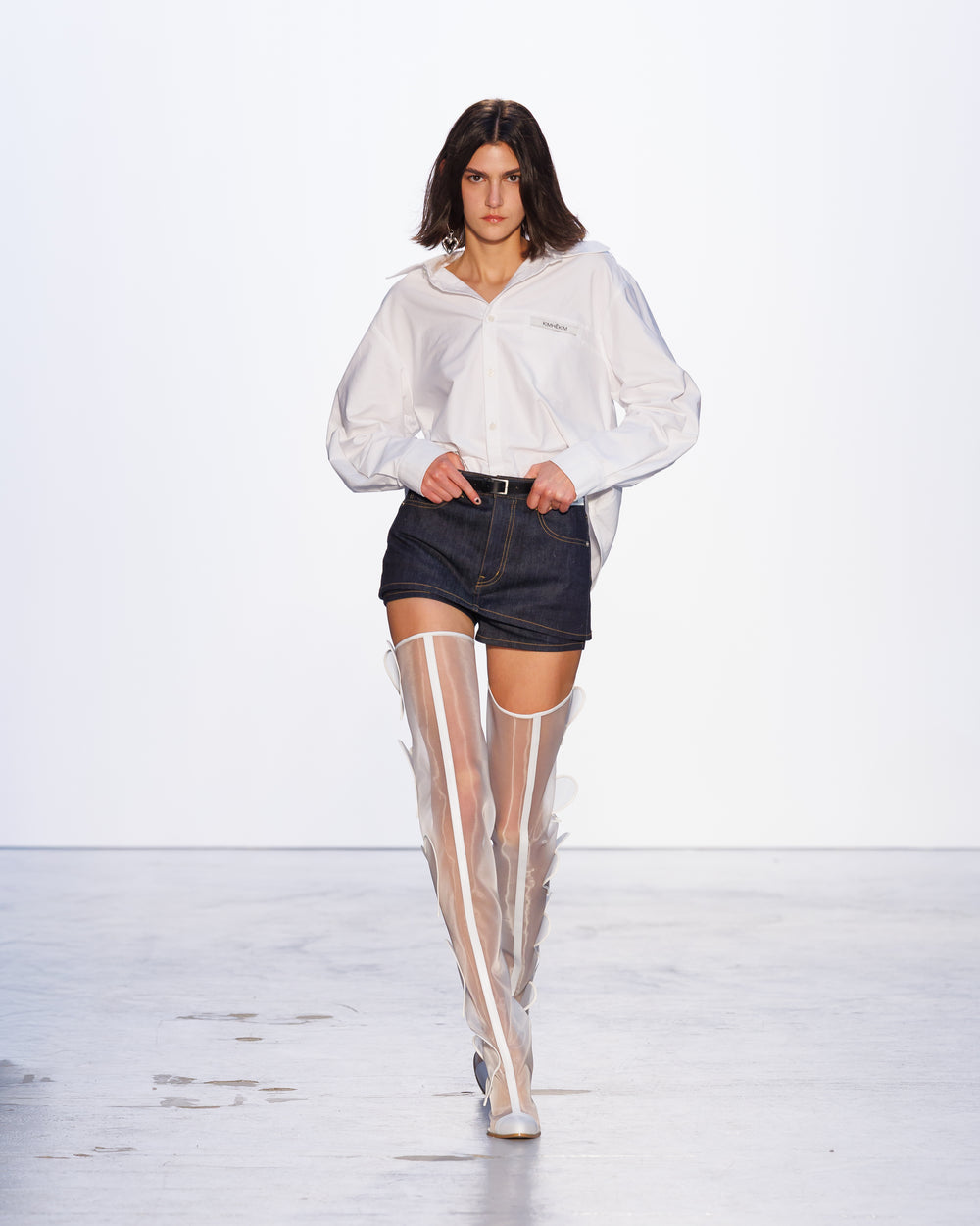 Coinciding with the runway, the collection unveils its collaboration sneakers with ASICS. Infused with the KIMHĒKIM’s signature heart symbol and a spirit of playfulness, the design breathes fresh air into ASICS’ performance heritage, renewing its legacy with unexpected lightness.
