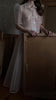 Le sentiment poétique lors d’une visite d’atelier d’artiste est réinterprété au travers de détails comme les boutons ornementés, les soies imprimées ainsi que les perforations qui rappelent les cadres d’oeuvres d’art.