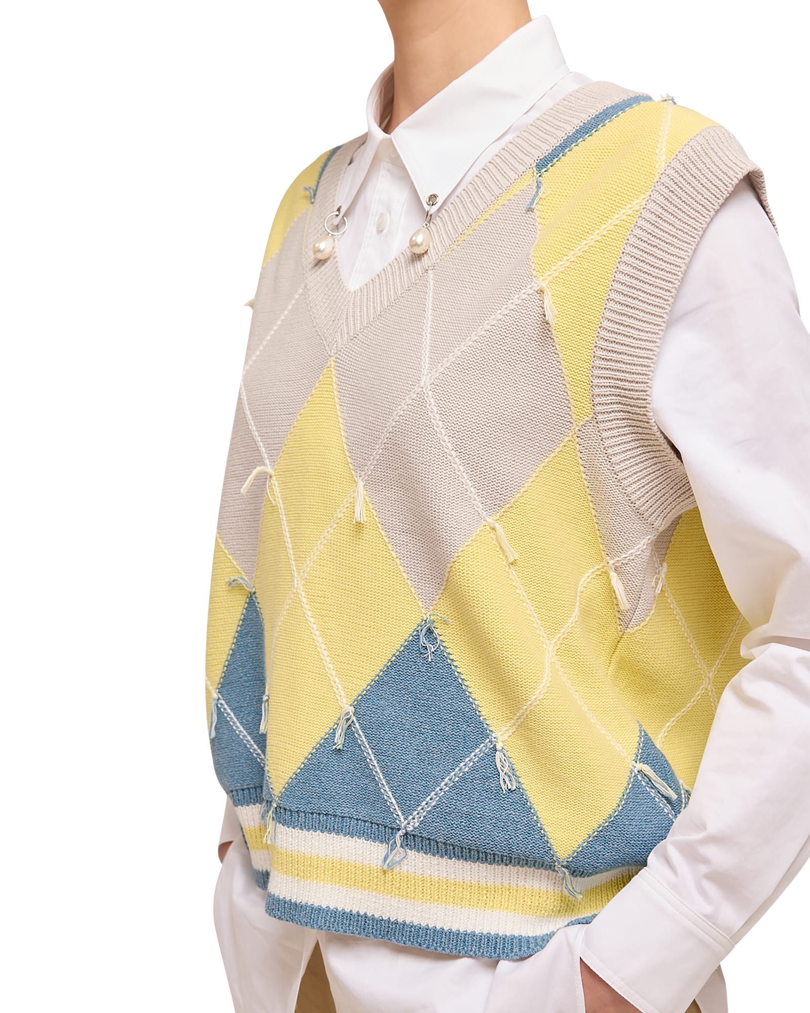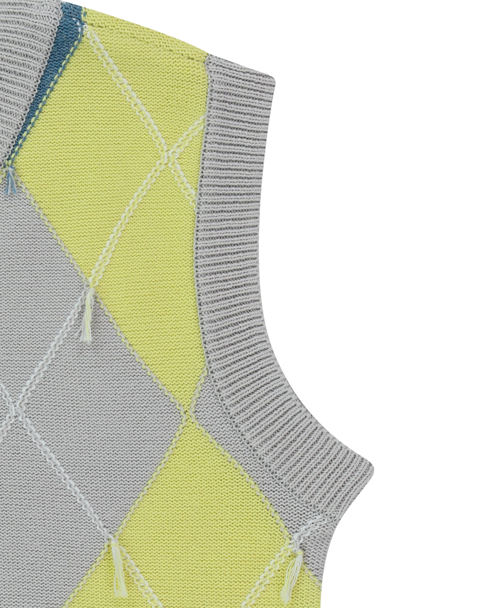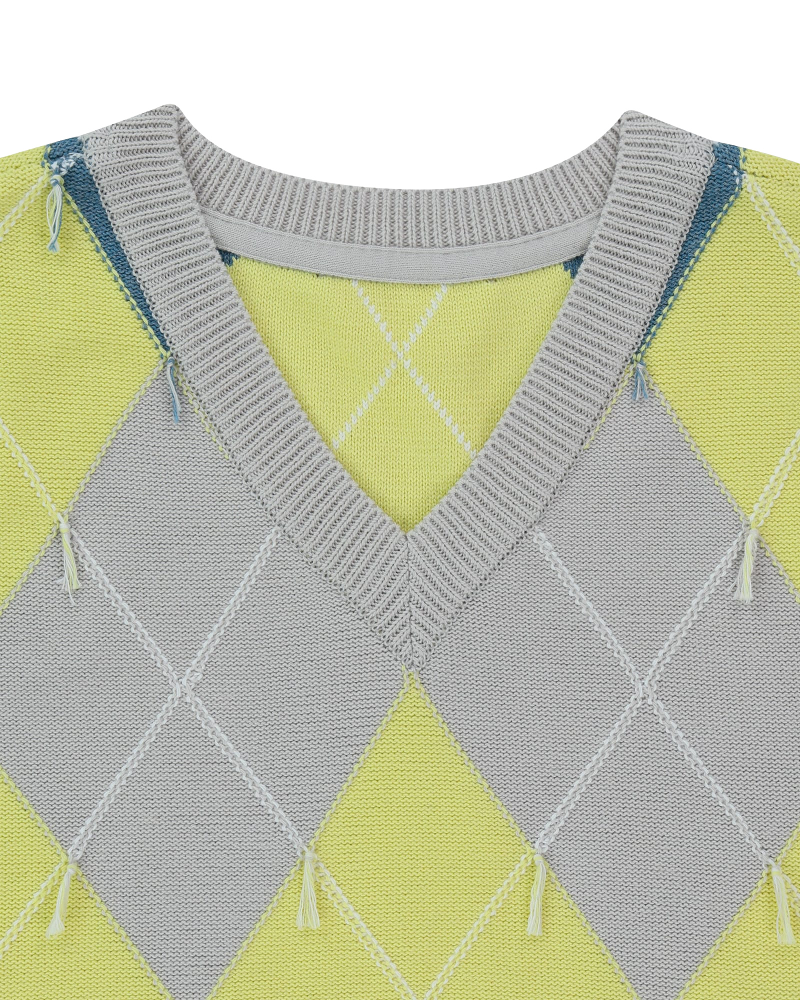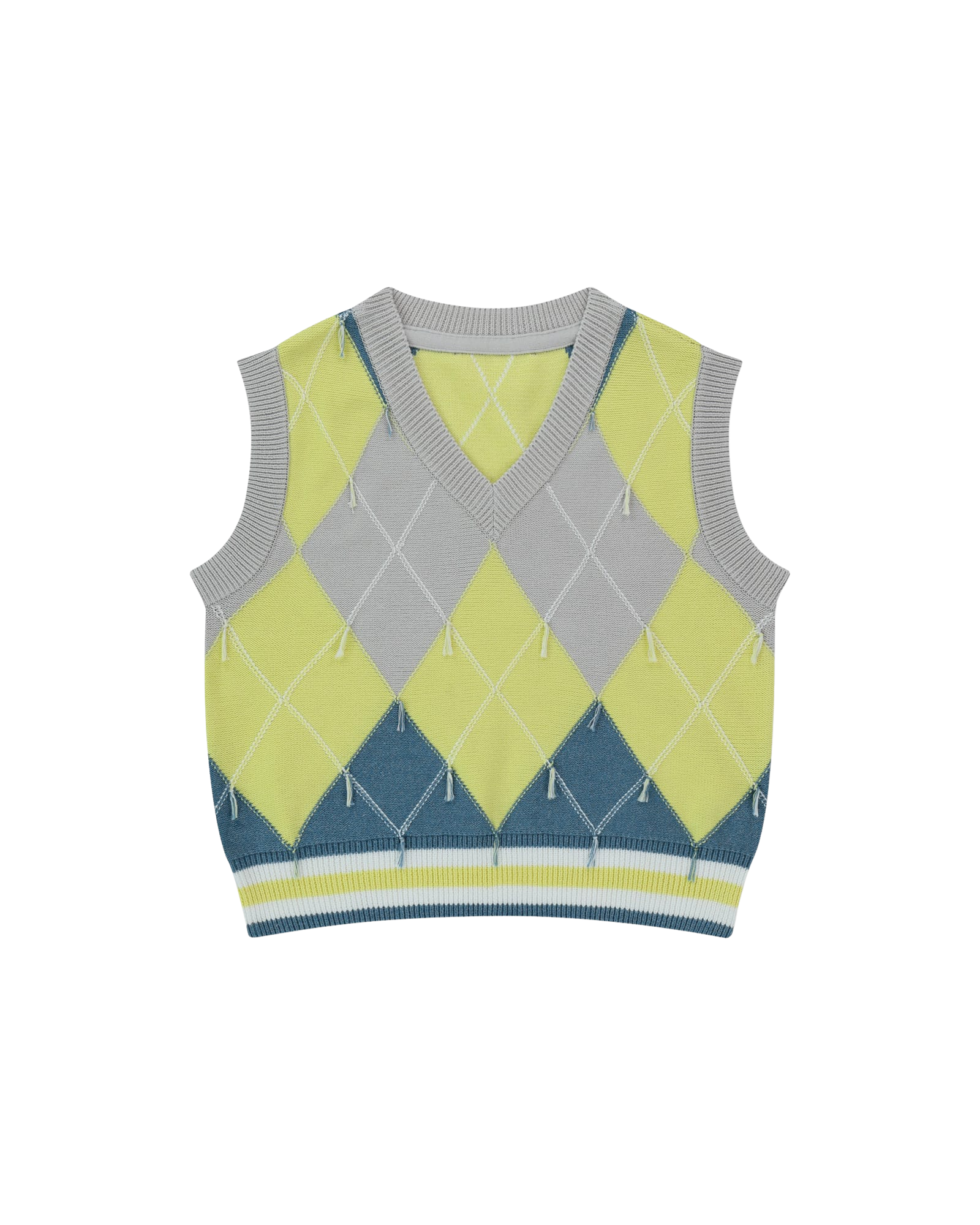 Argyle Reverse V-Neck Knit Vest (Sea Blue)