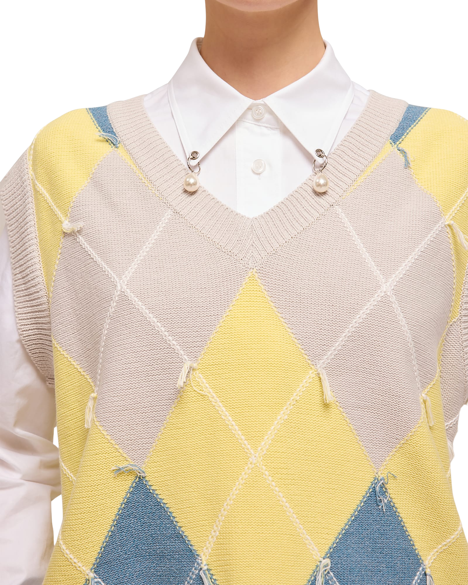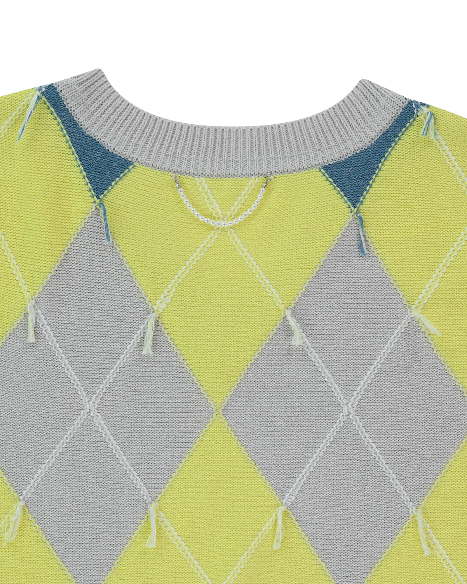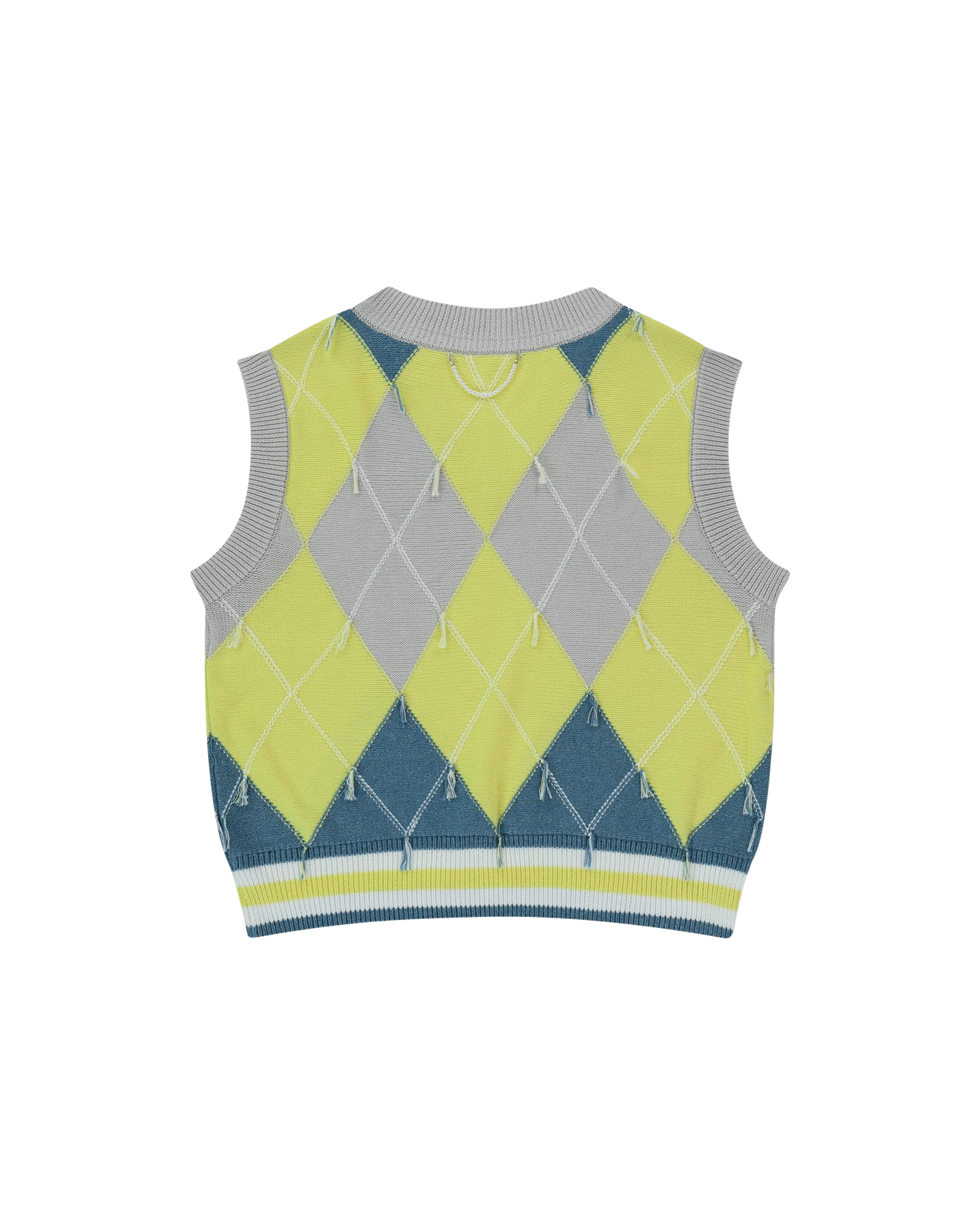 Argyle Reverse V-Neck Knit Vest (Sea Blue)