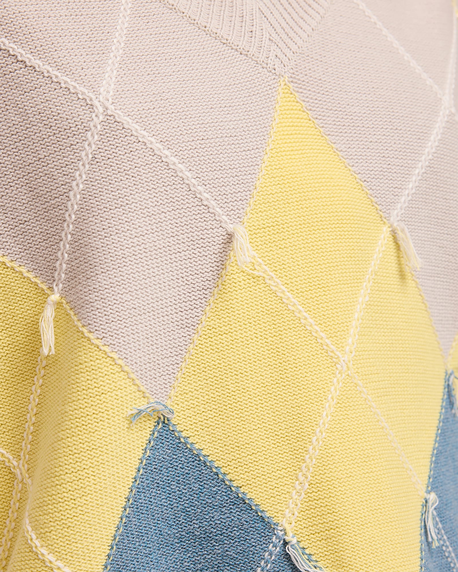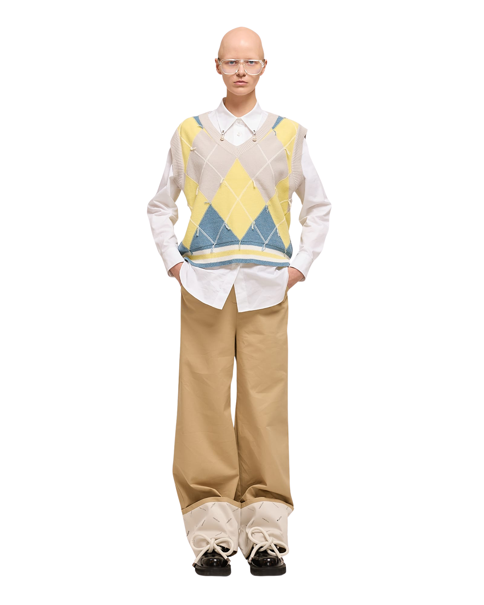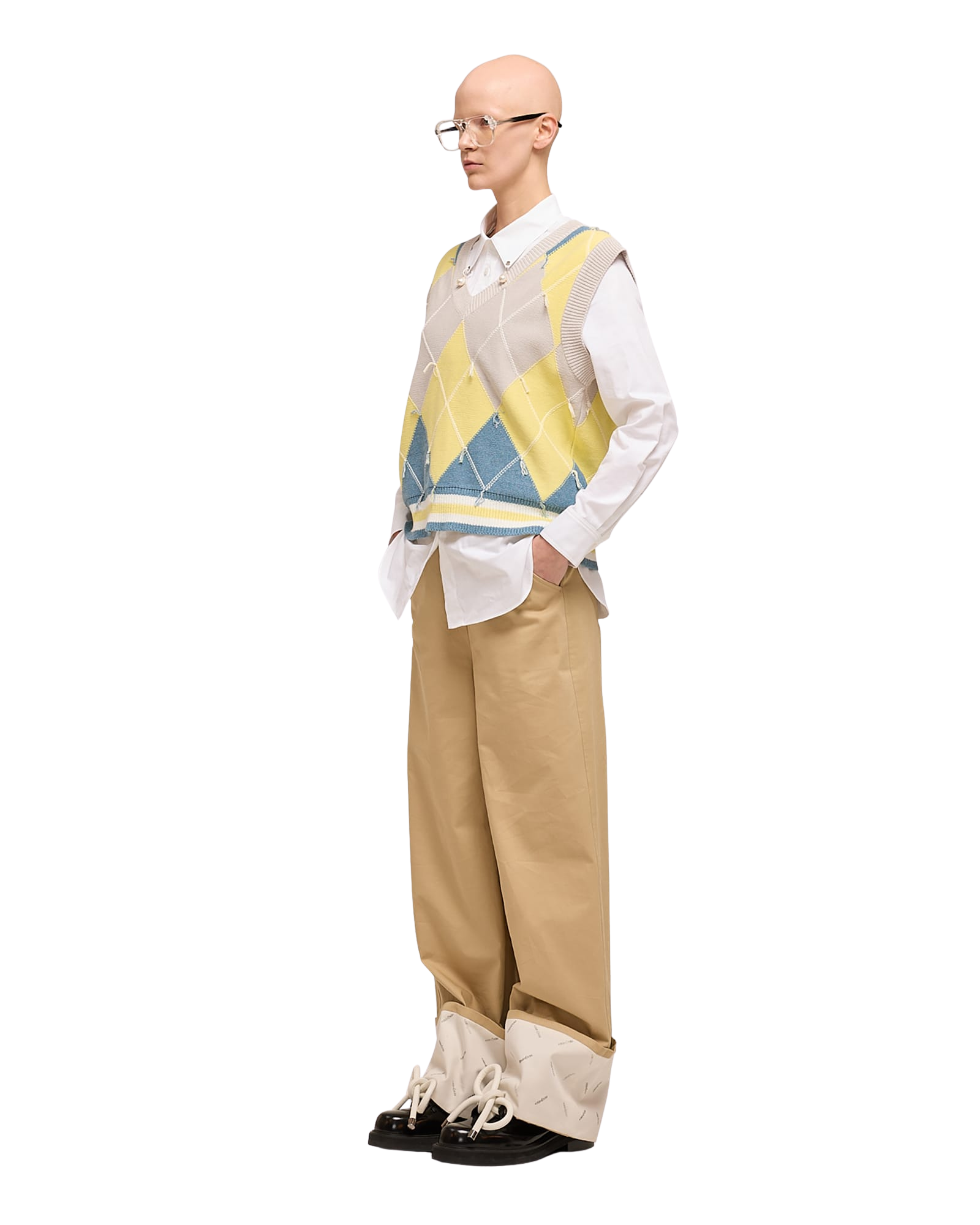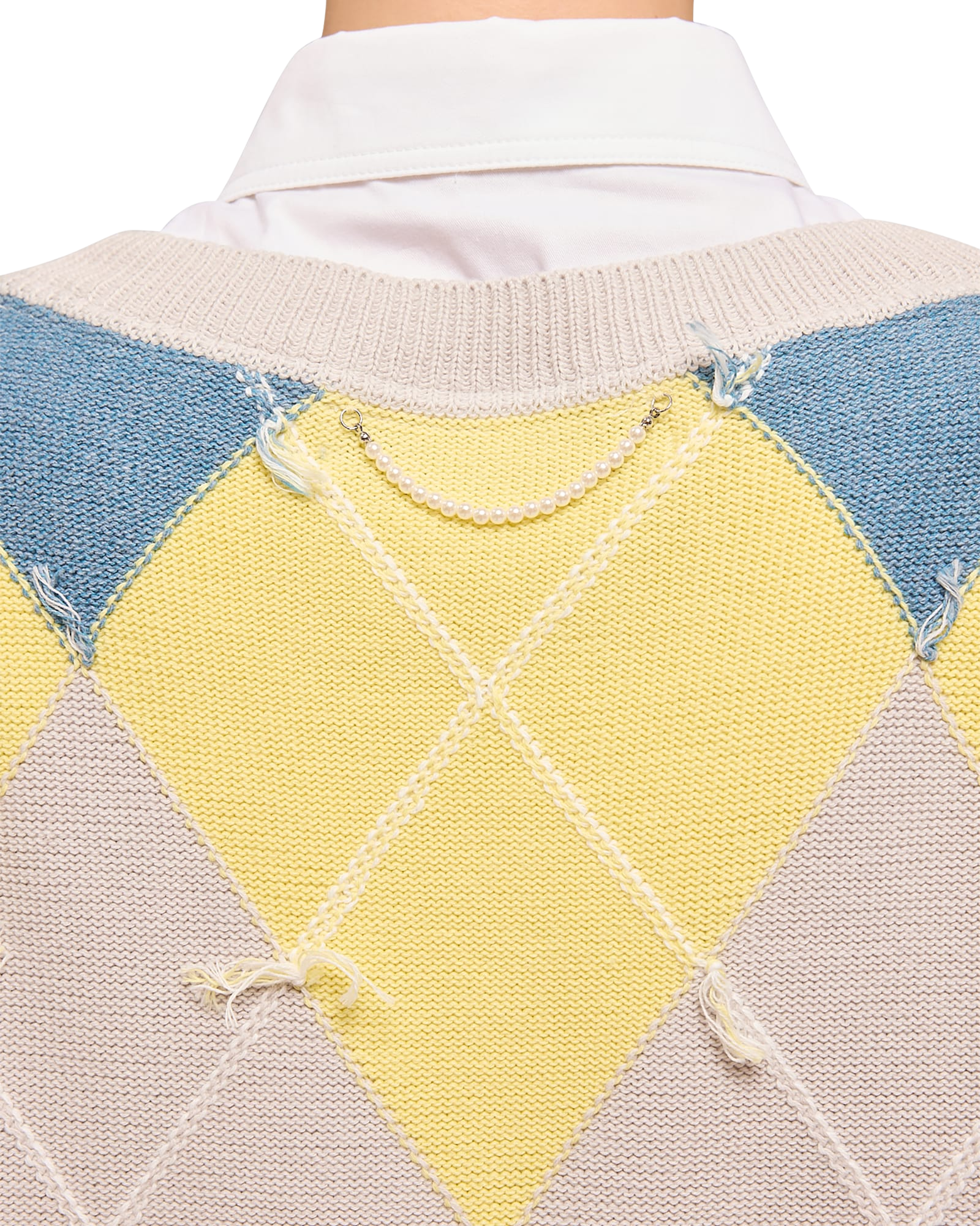 Argyle Reverse V-Neck Knit Vest (Sea Blue)