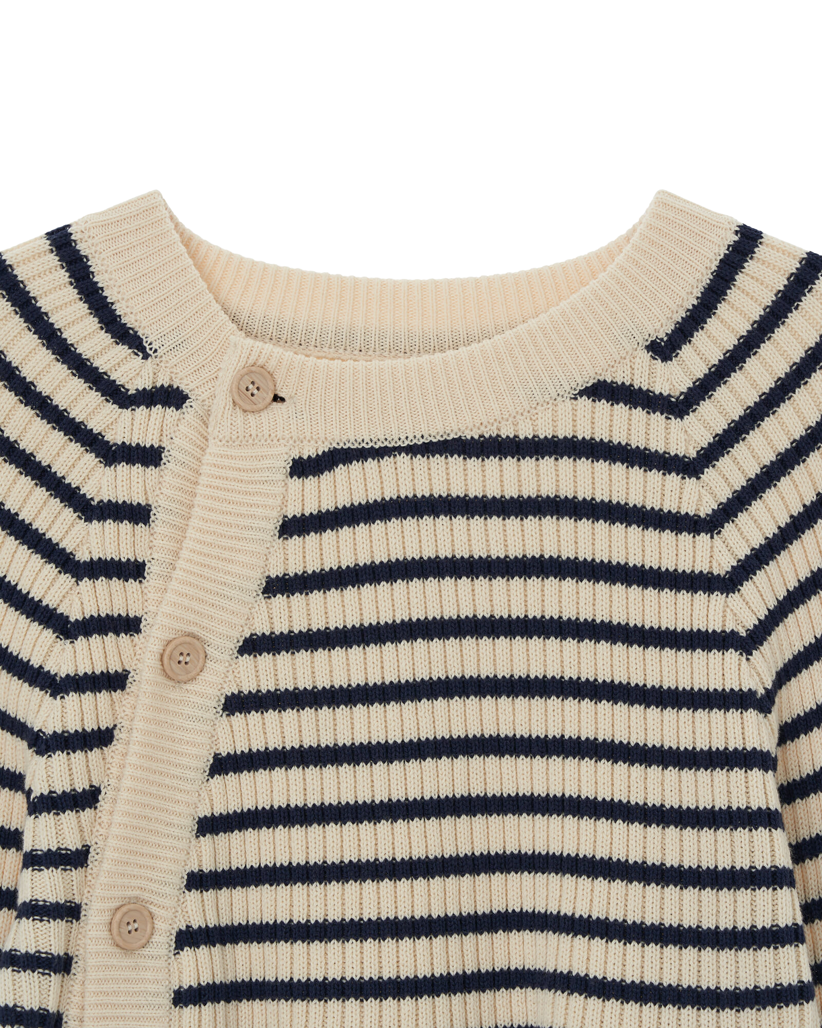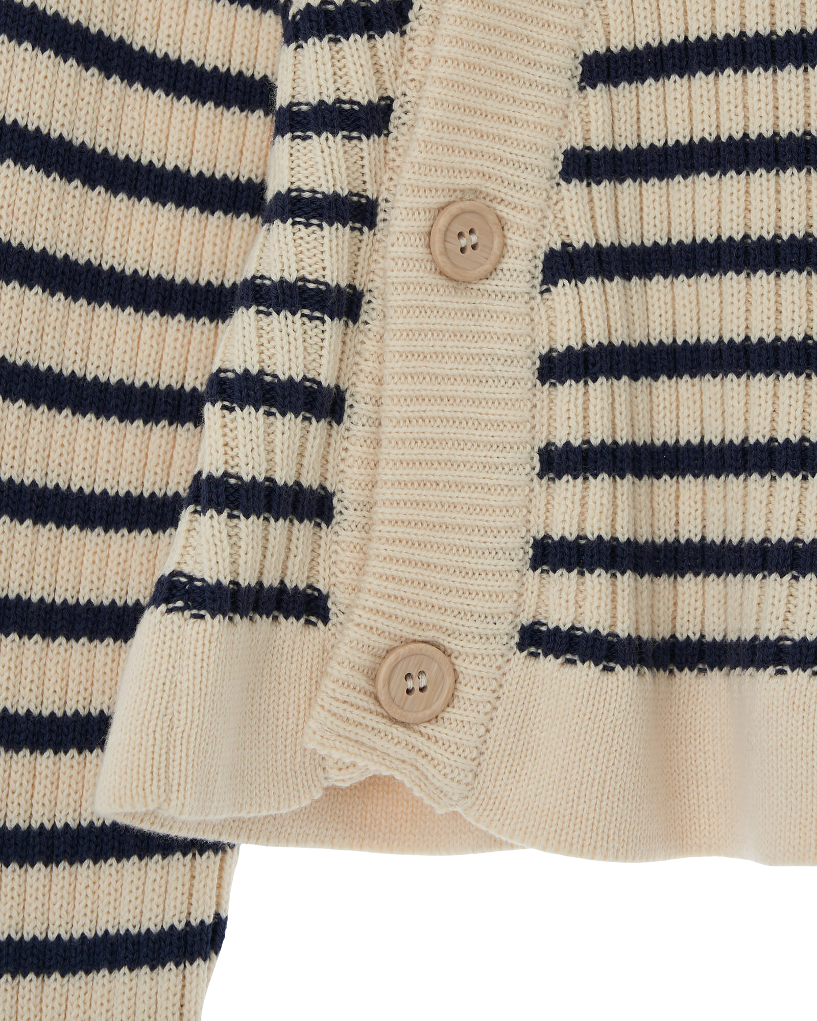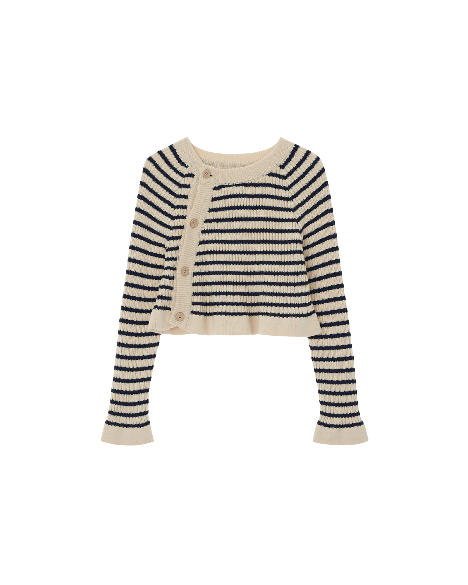 Asymmetric Wool-Cotton Cropped Cardigan (Navy/Ivory)