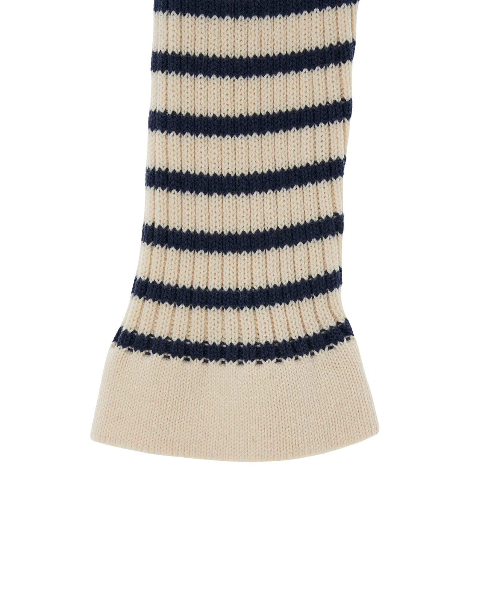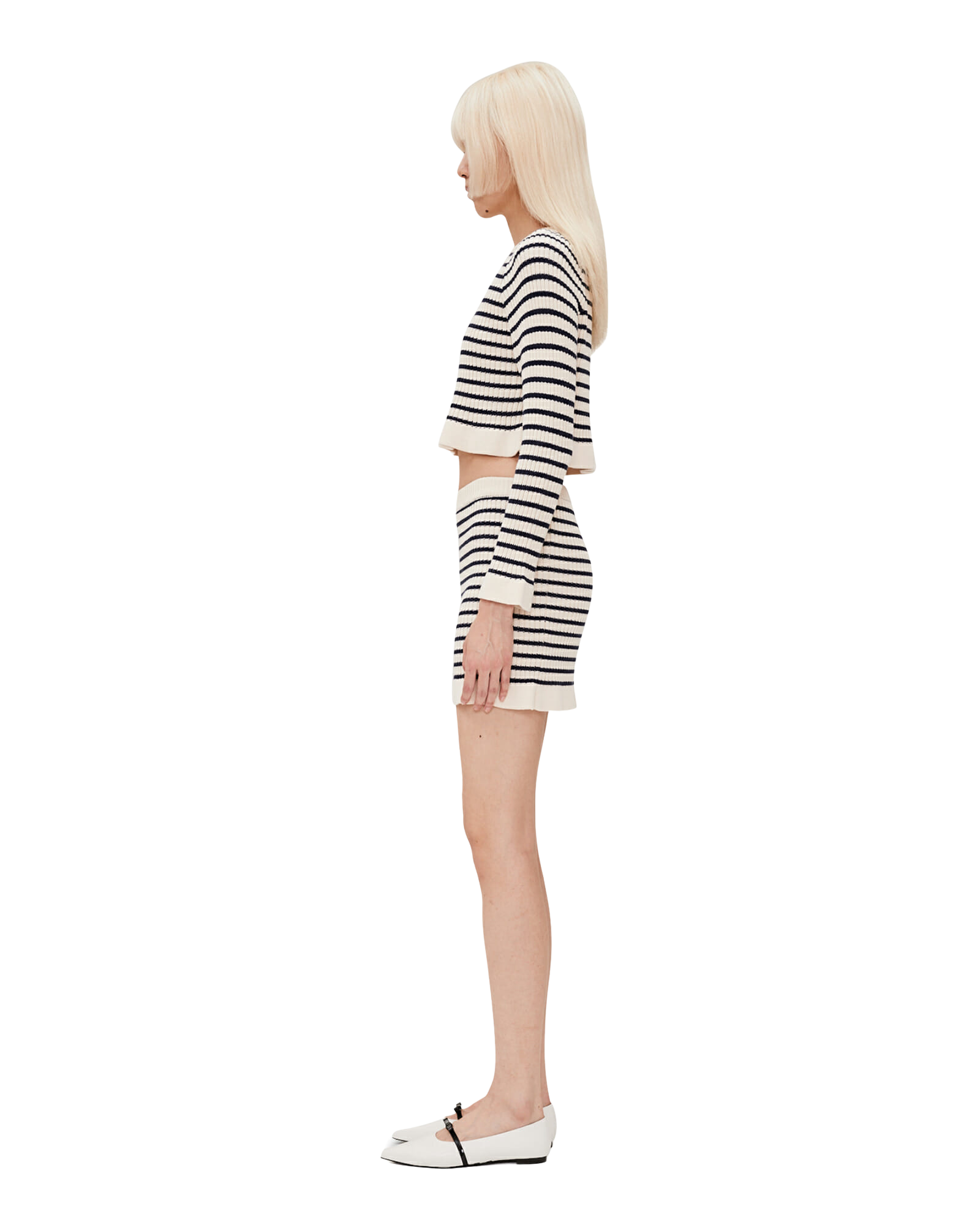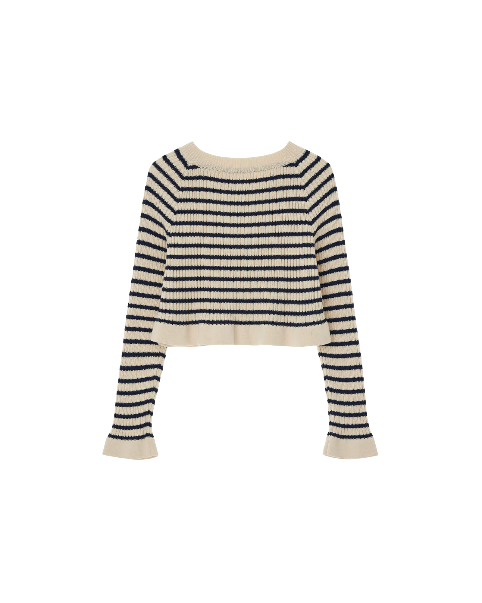 Asymmetric Wool-Cotton Cropped Cardigan (Navy/Ivory)
