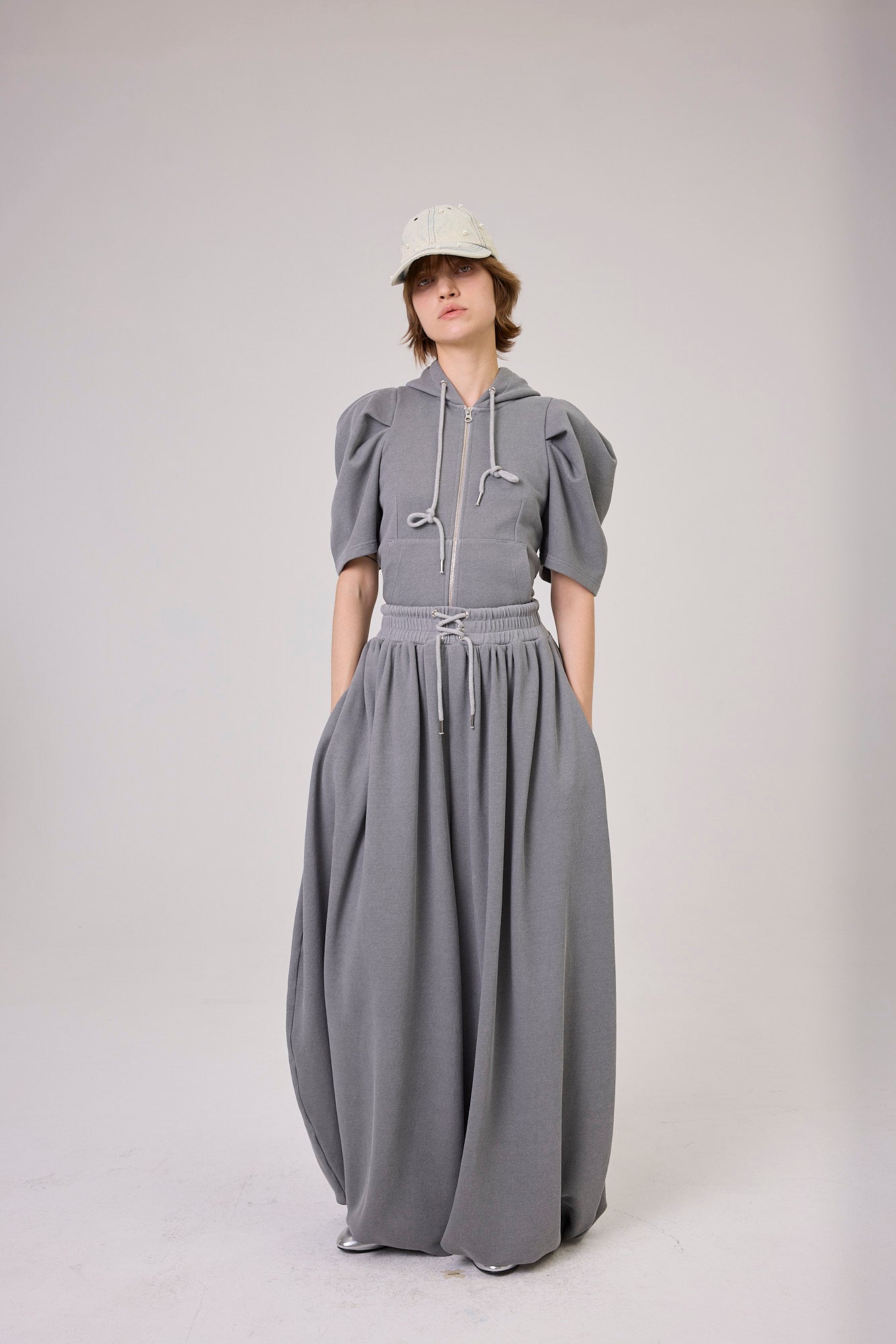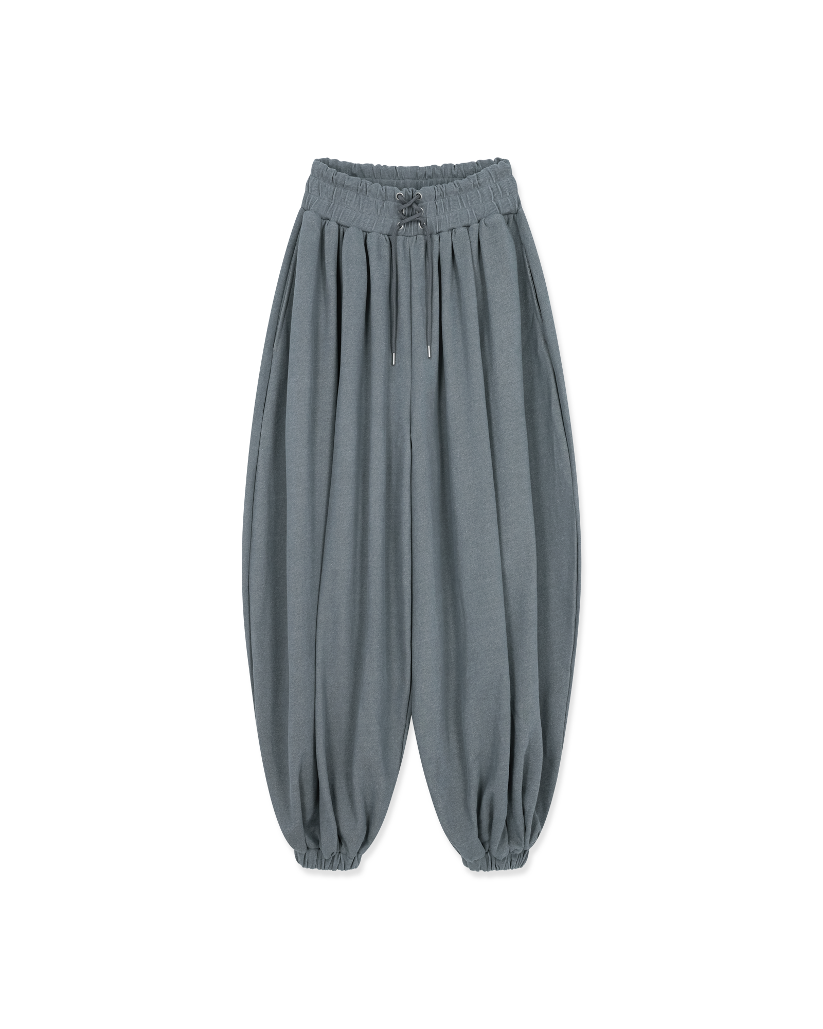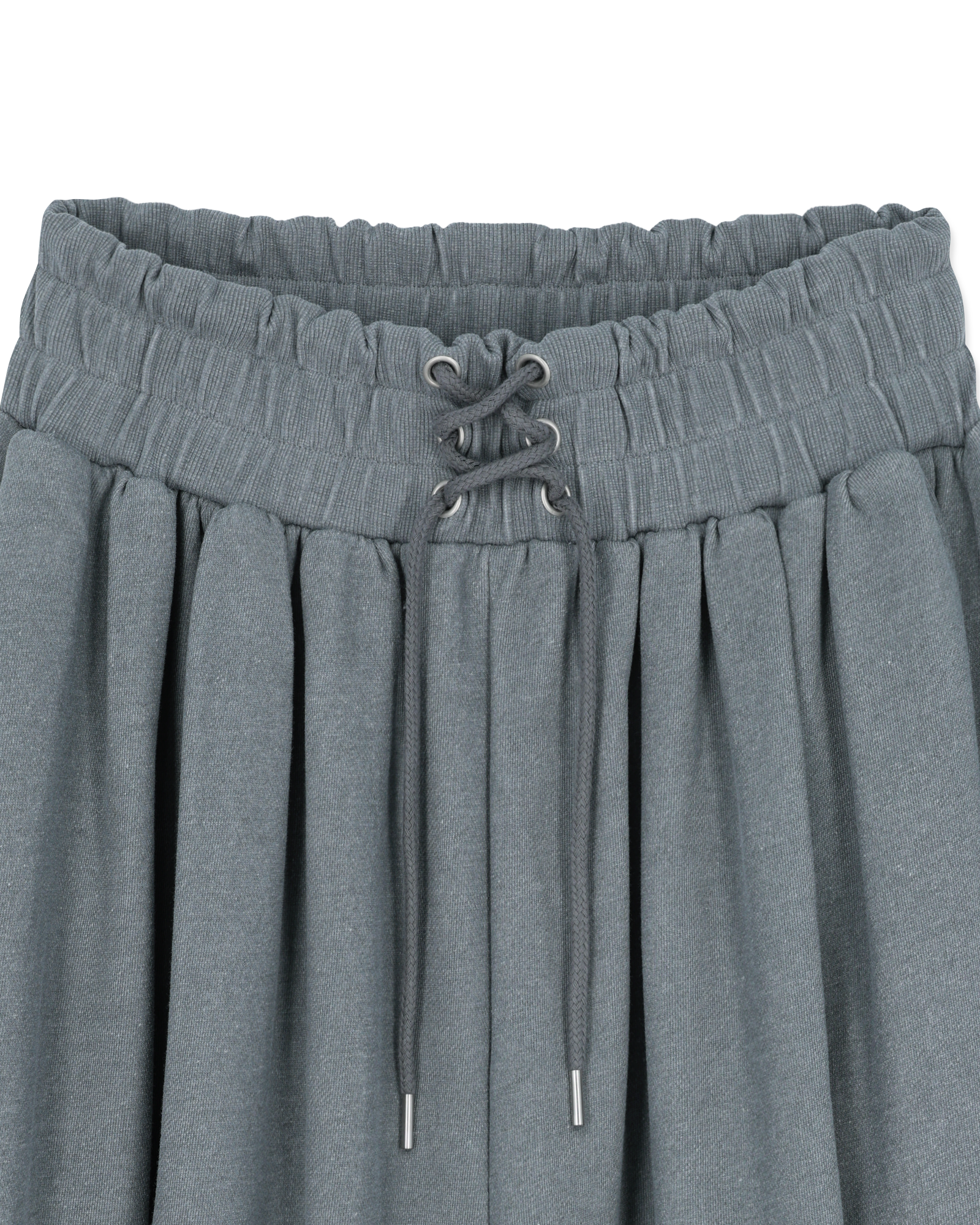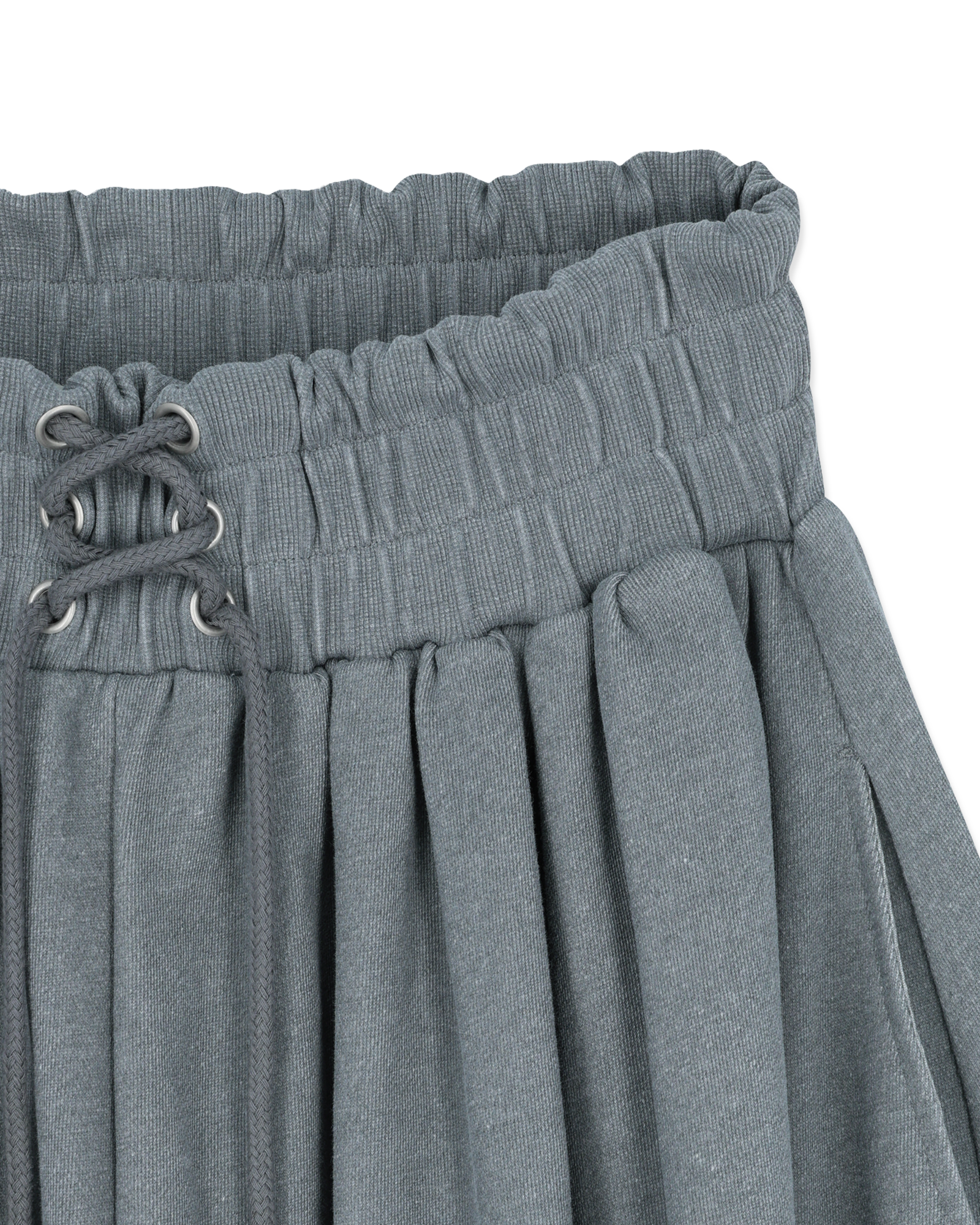 Featuring an elastic waistband with eyelet details and crisscross drawstrings.