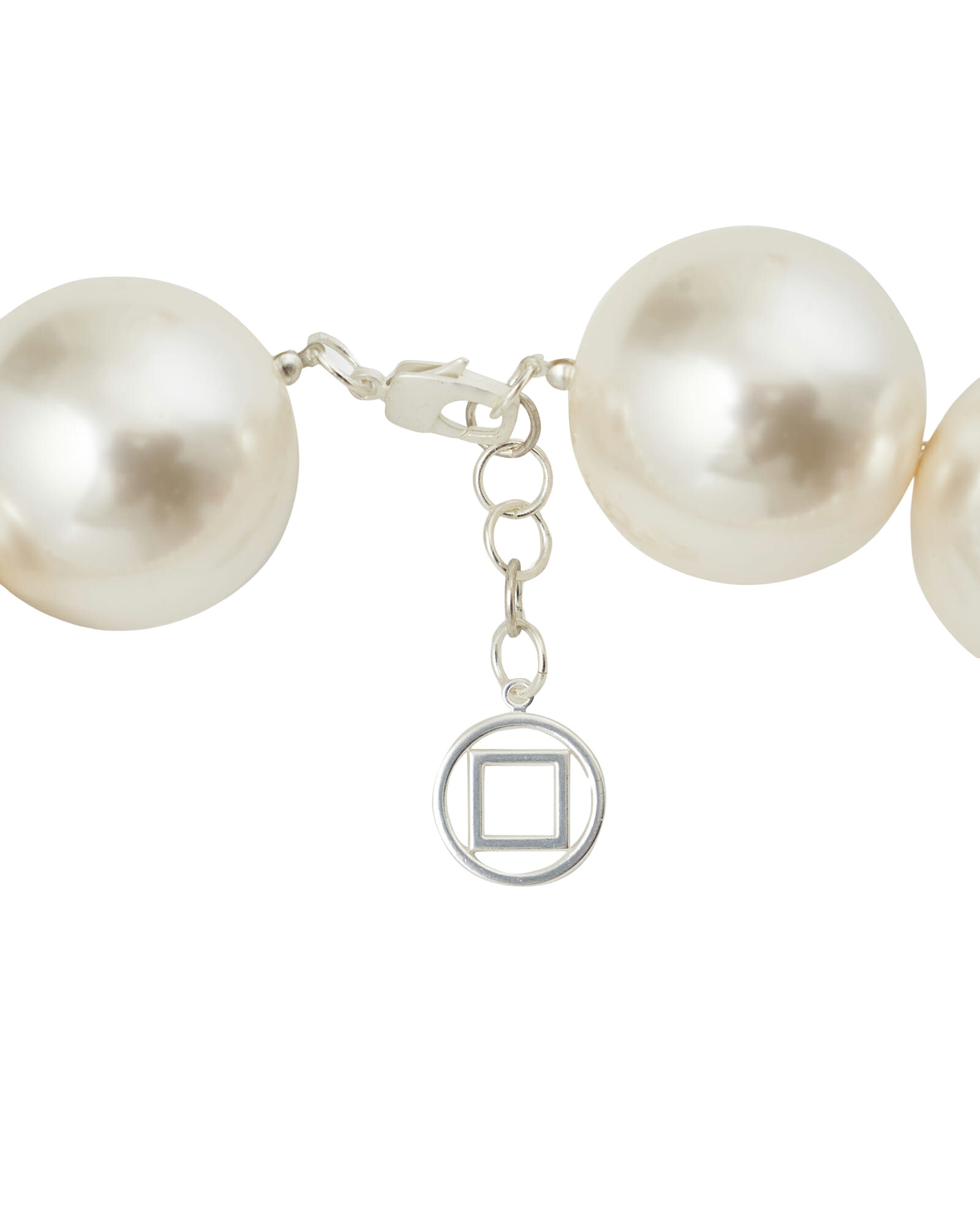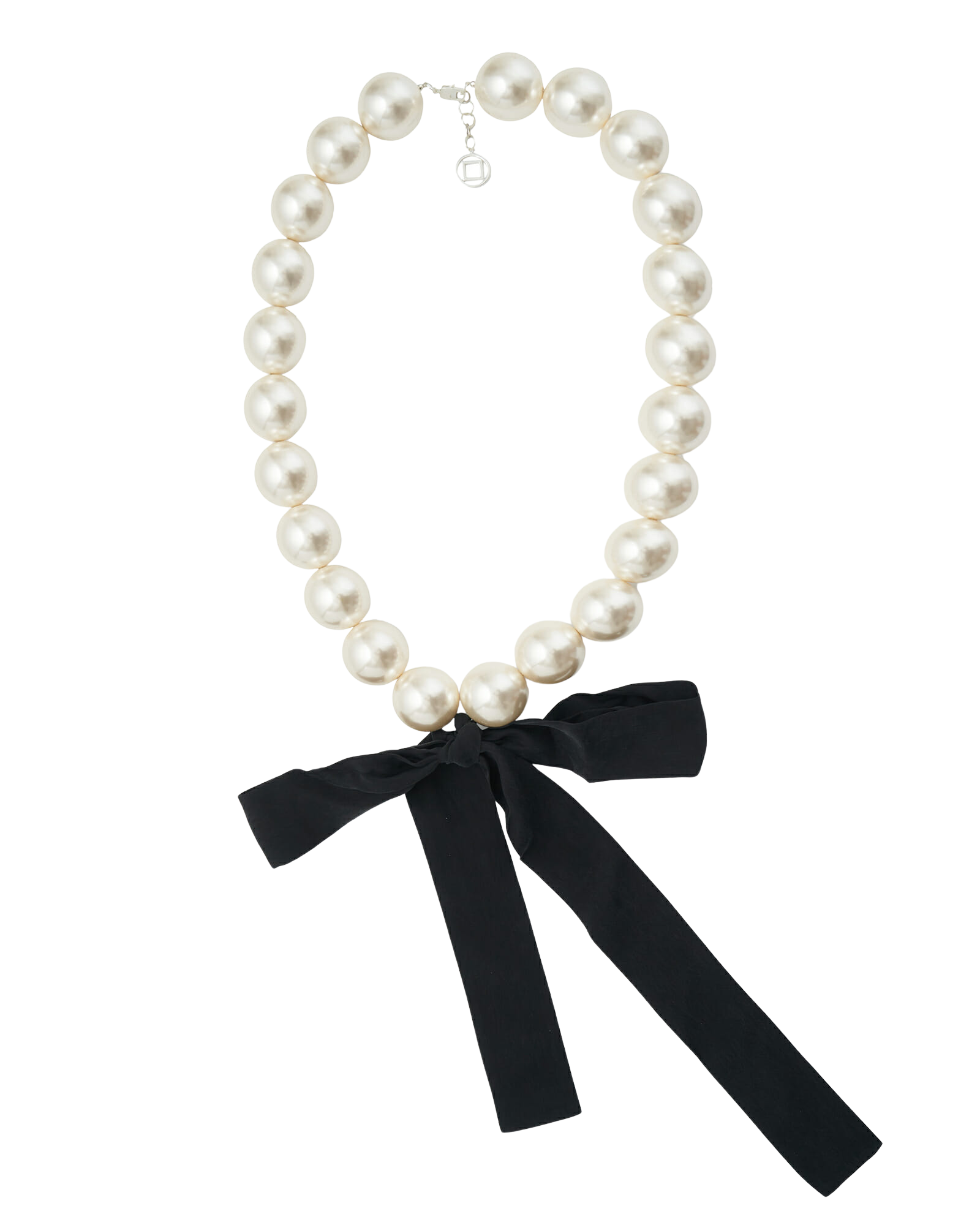 Big Ribbon Embellished Faux-Pearl Necklace (White)