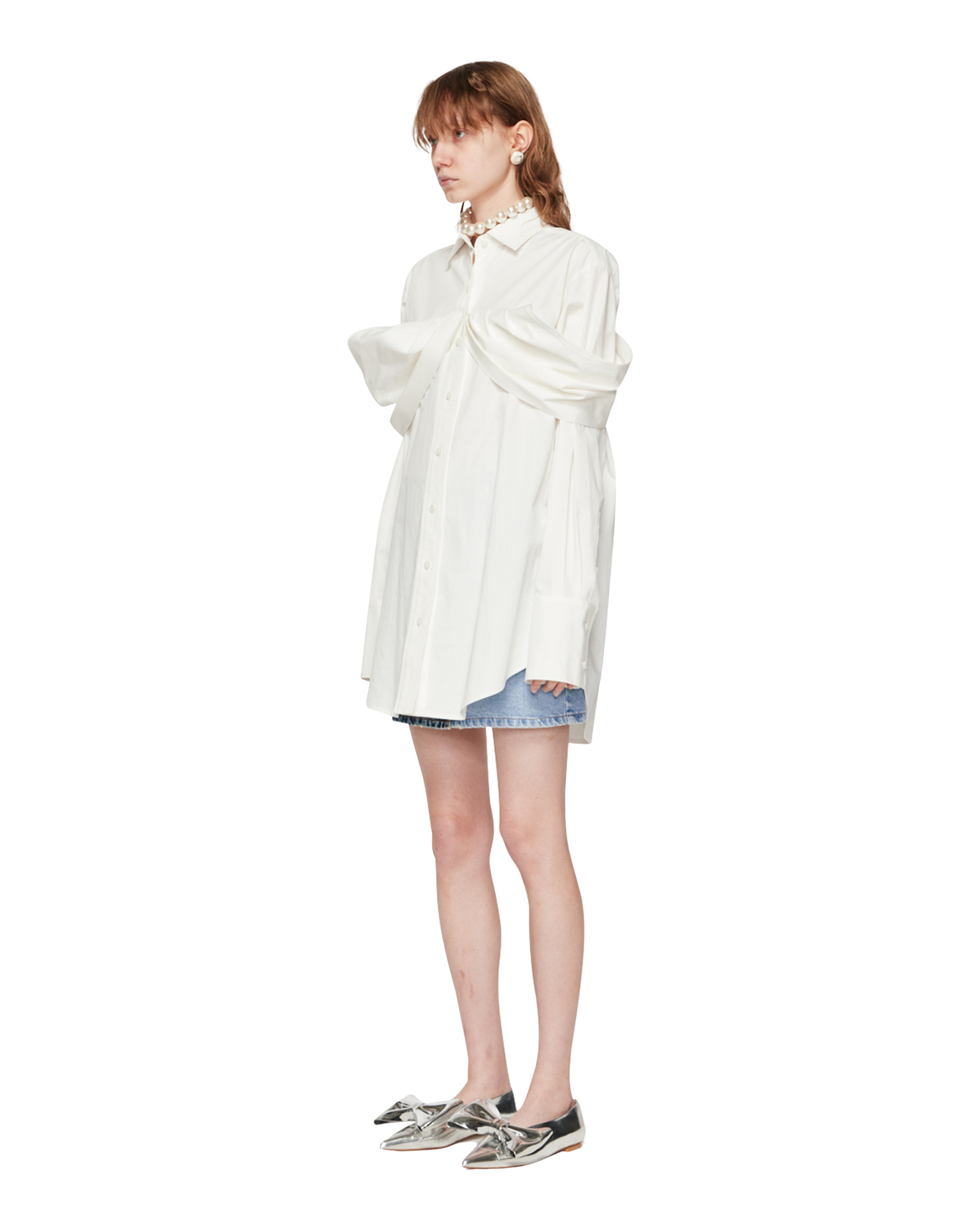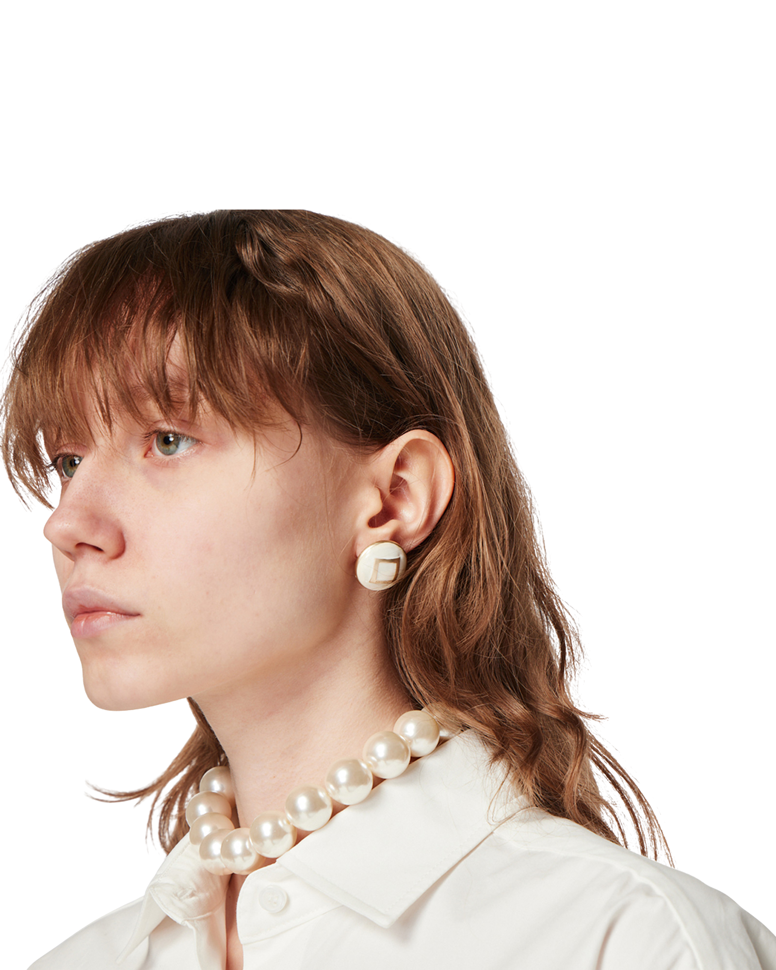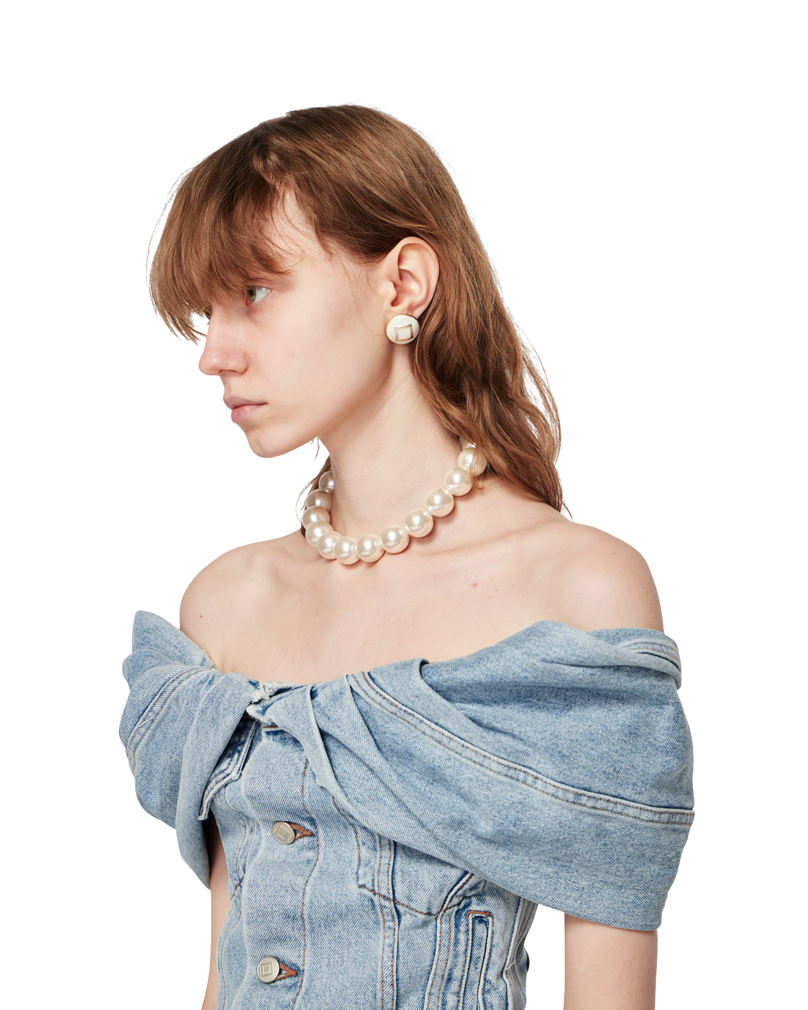 Small Ribbon Embellished Faux-Pearl Necklace (White)