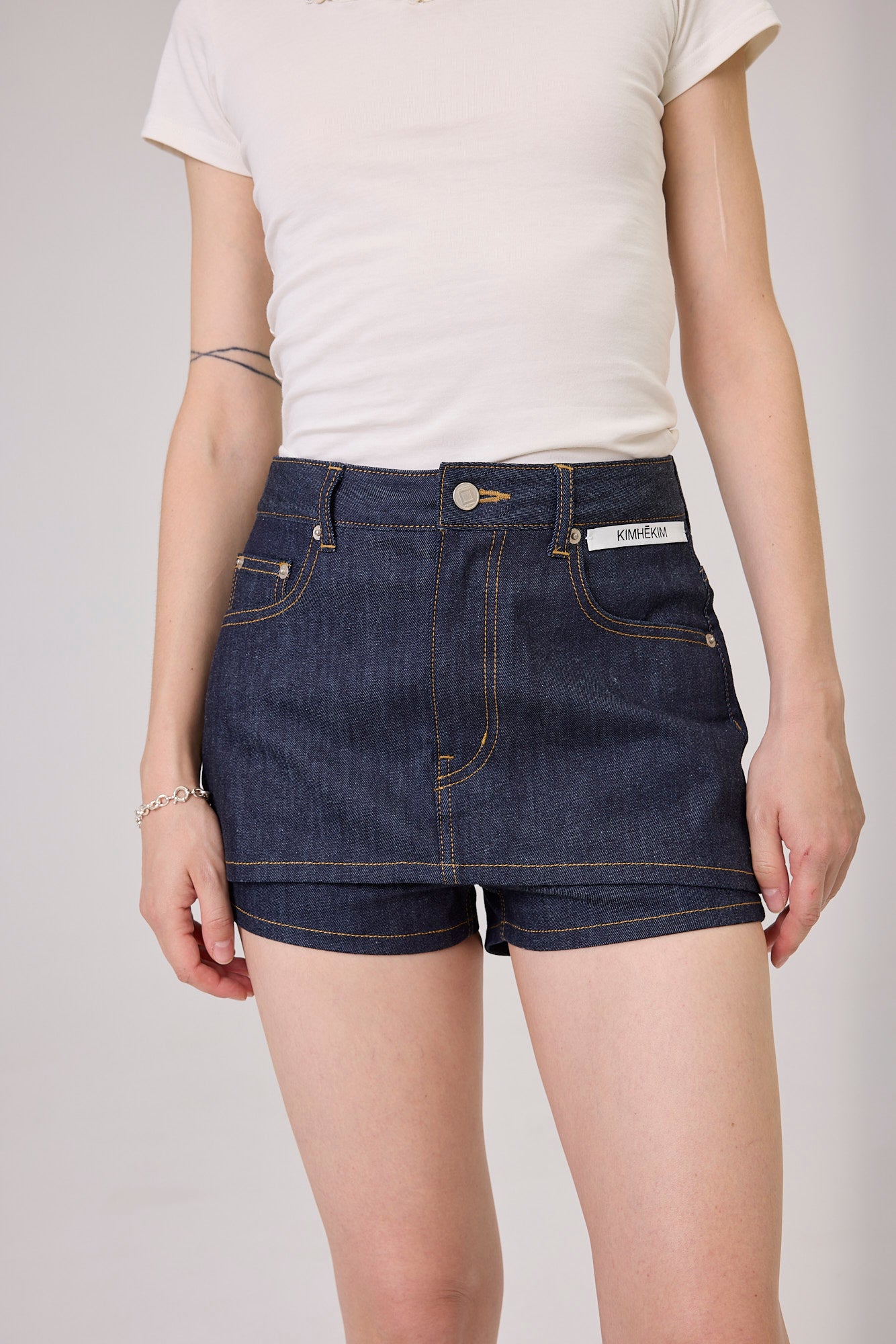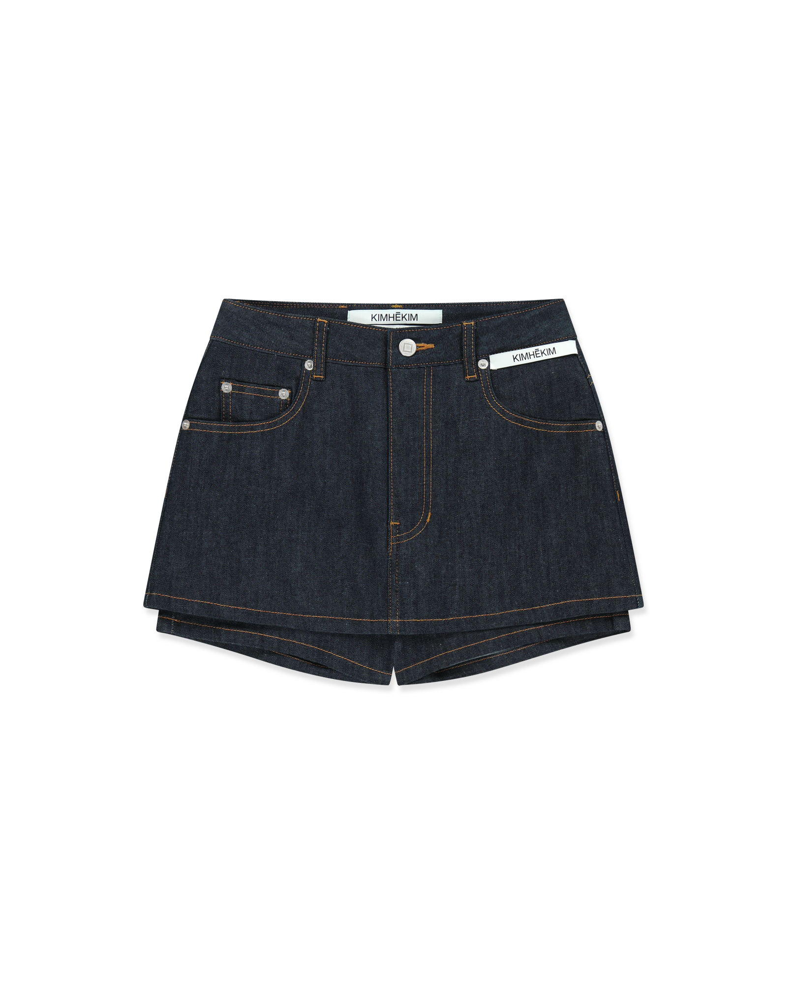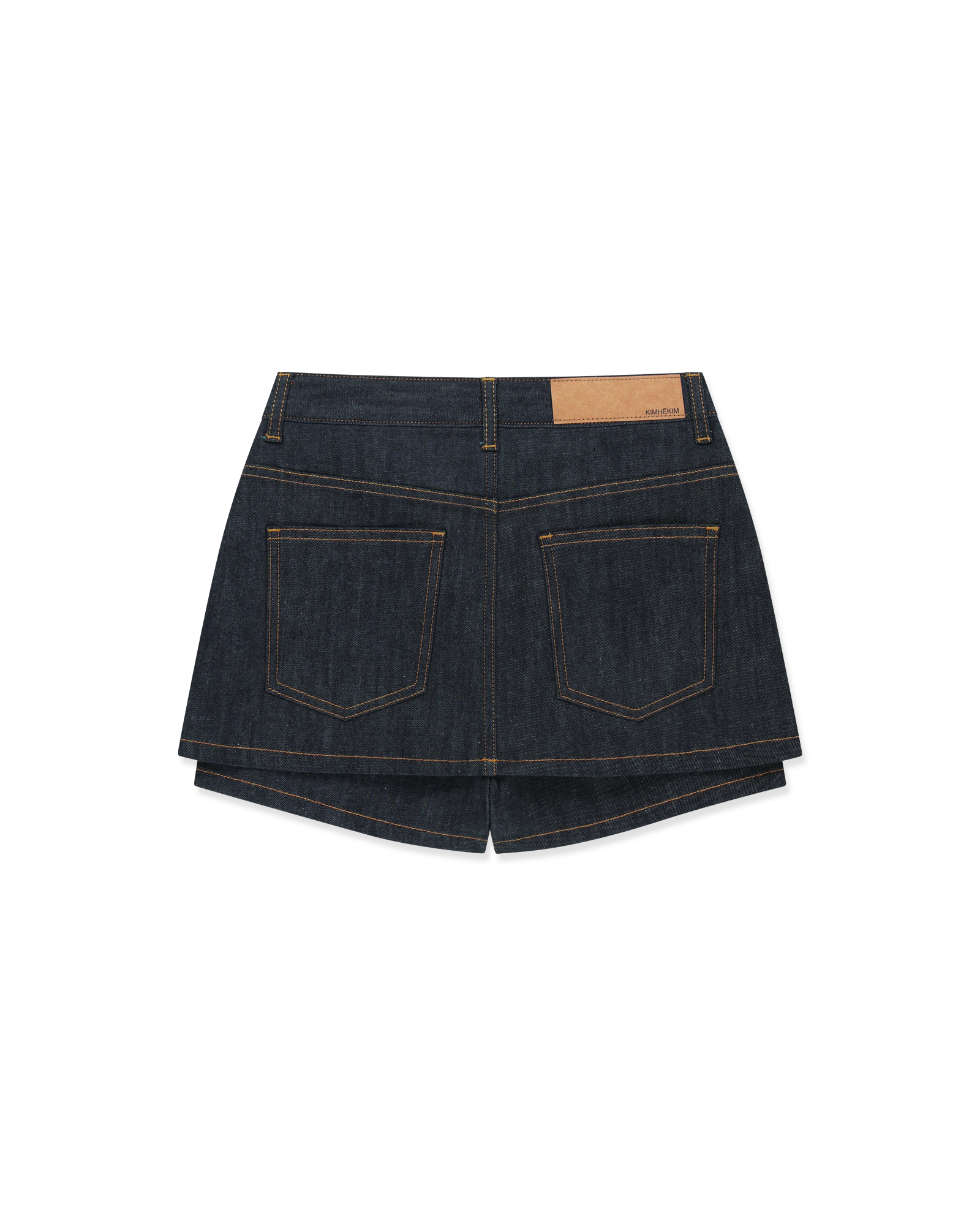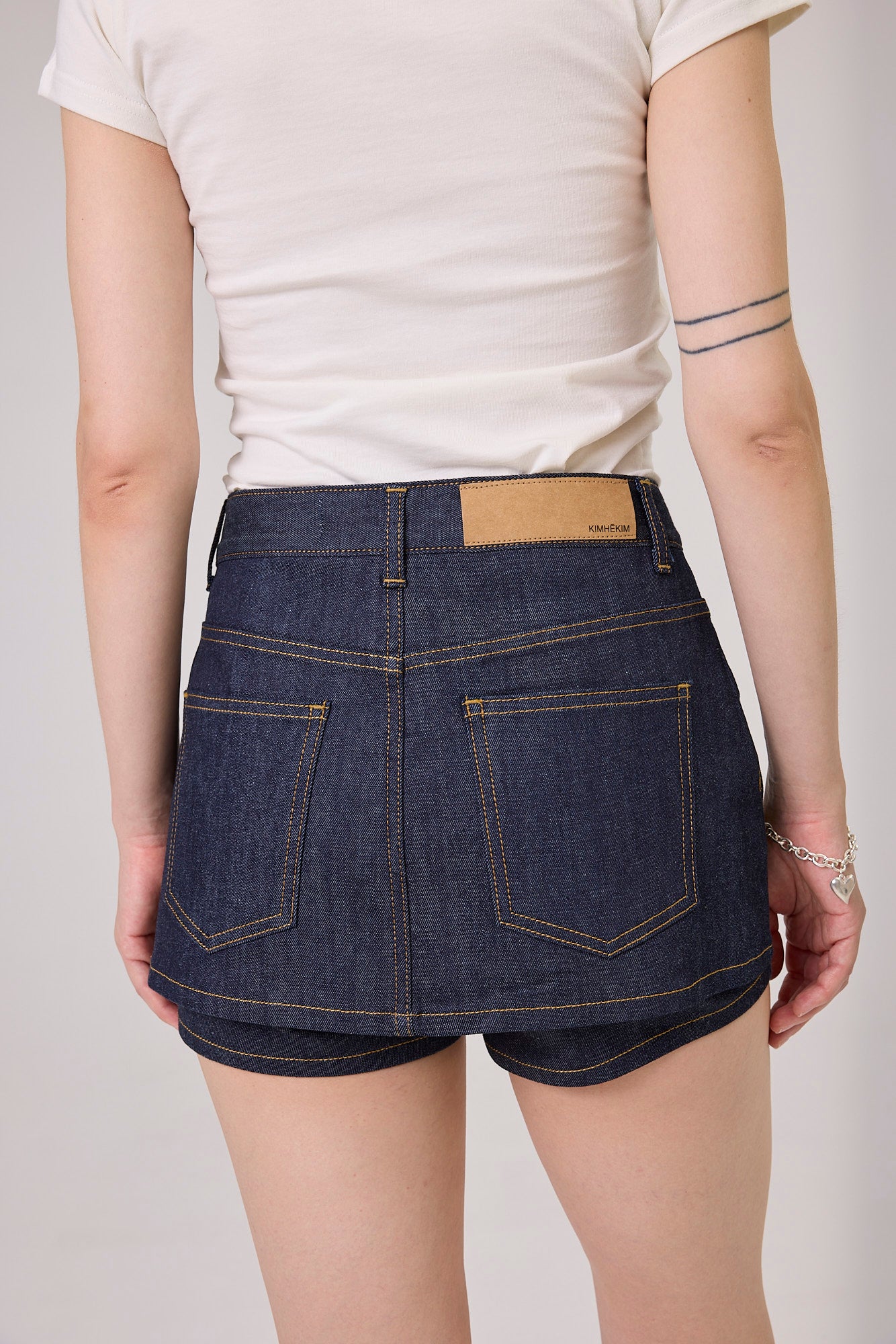 DENIM LAYERED SKIRT SHORT (BLUE)