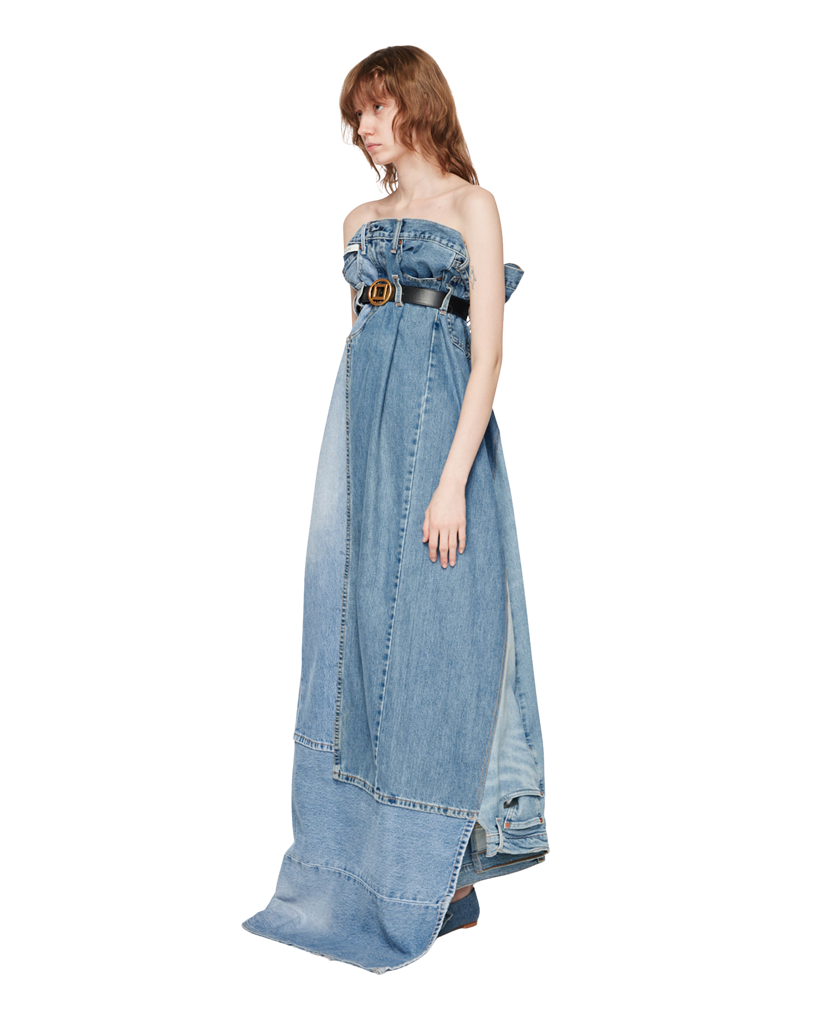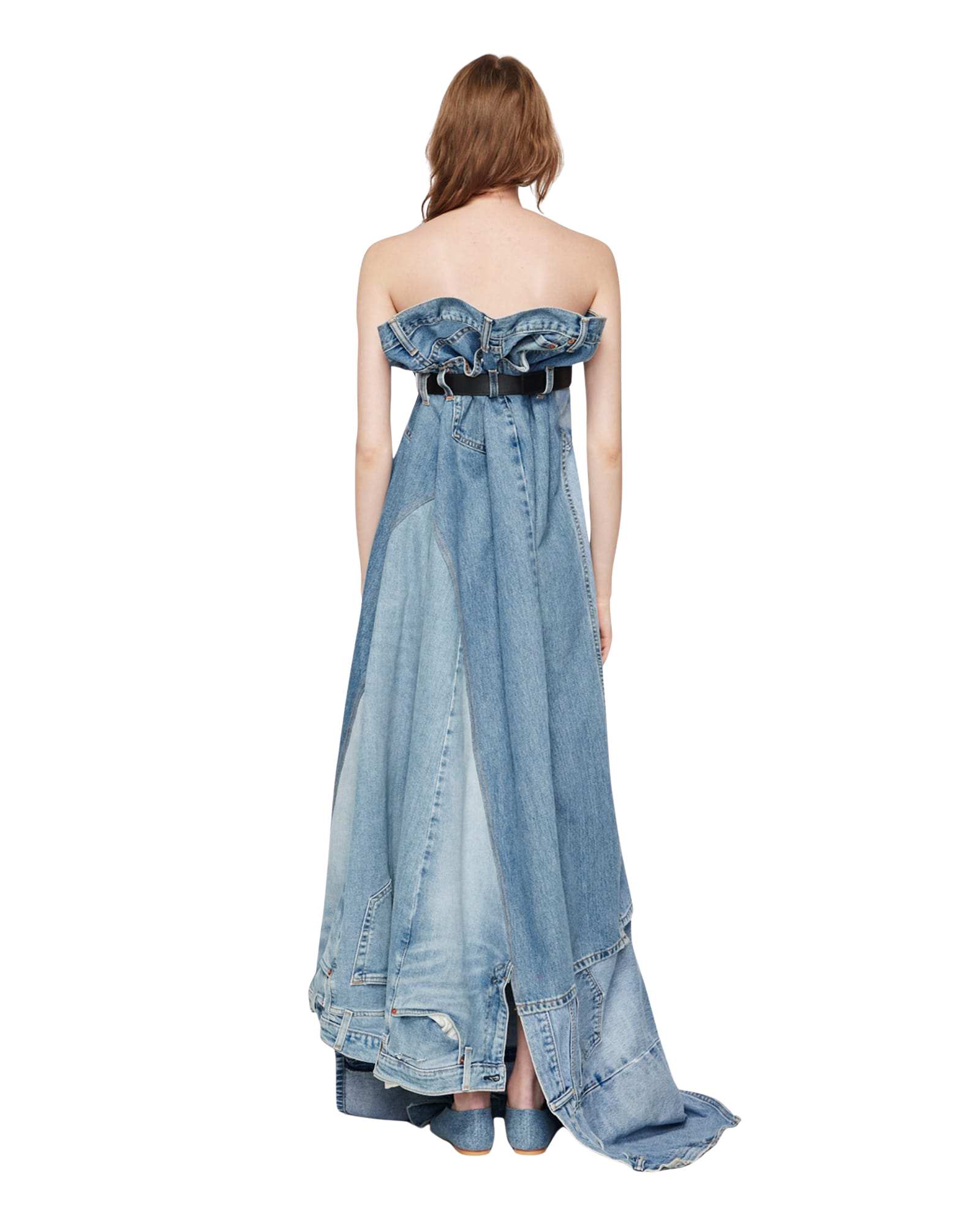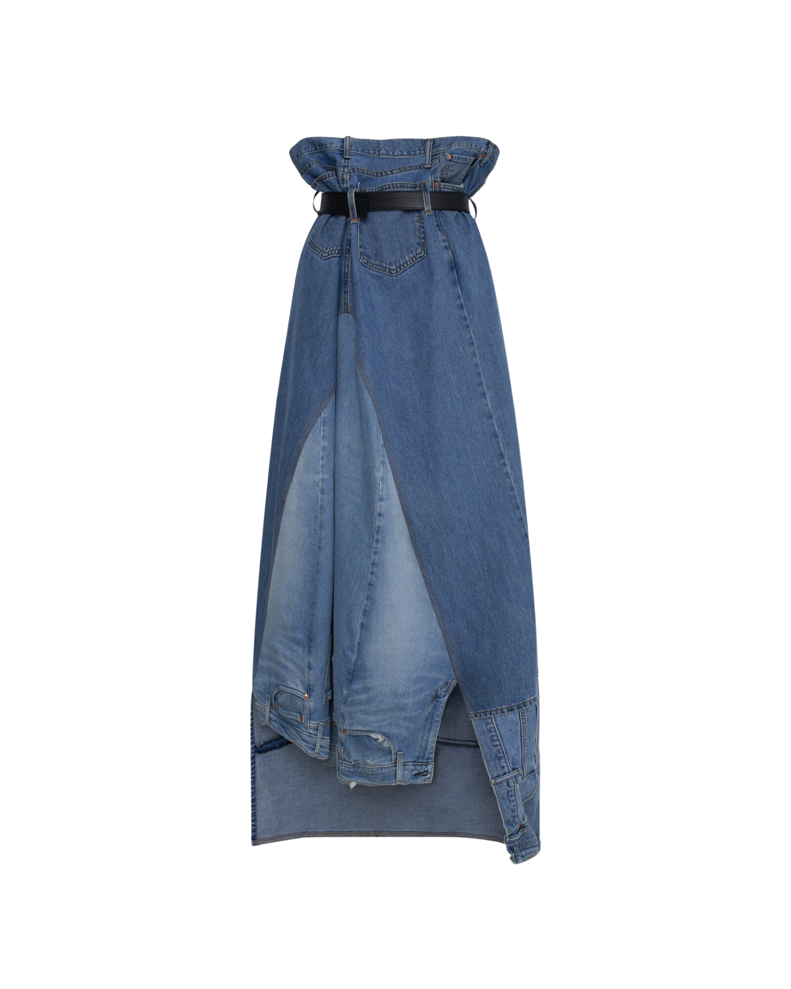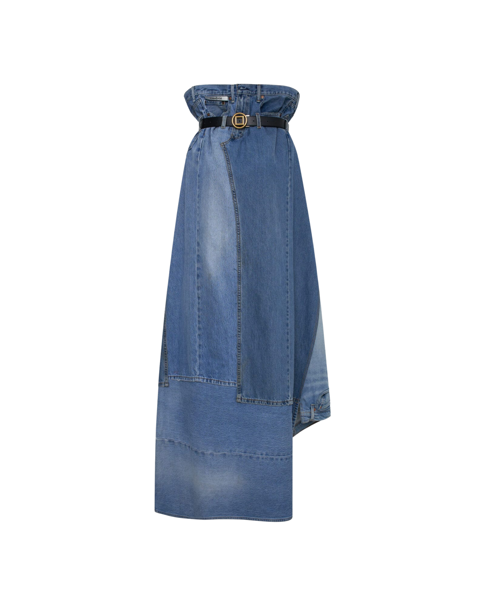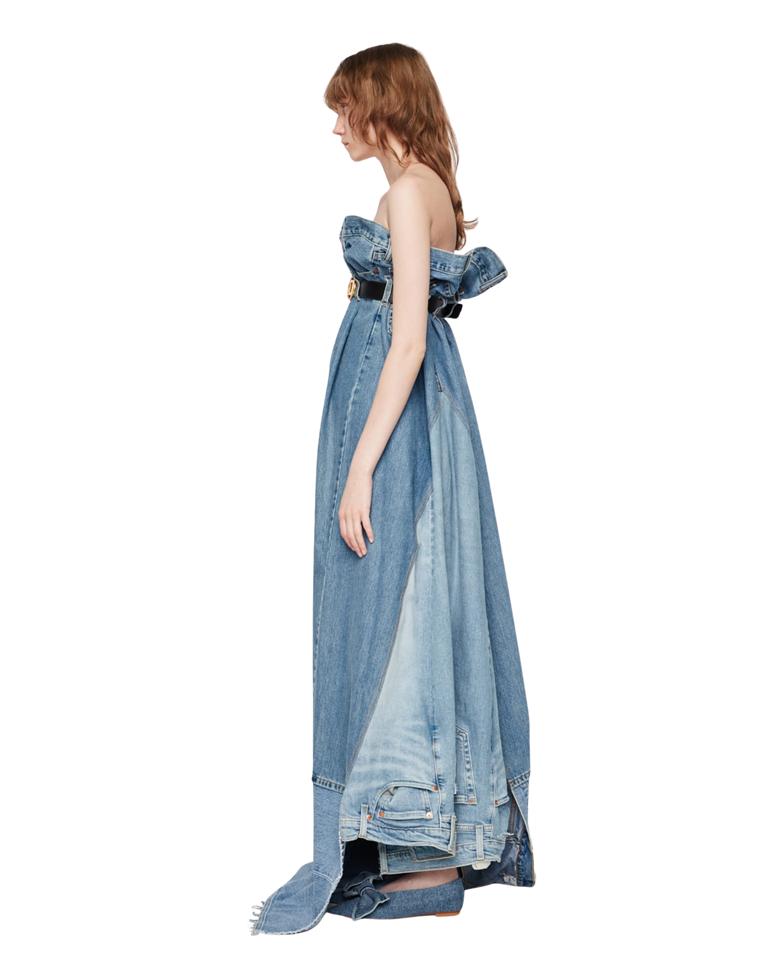 Off-The-Shoulder V Neck Wool-Silk Midi Dress