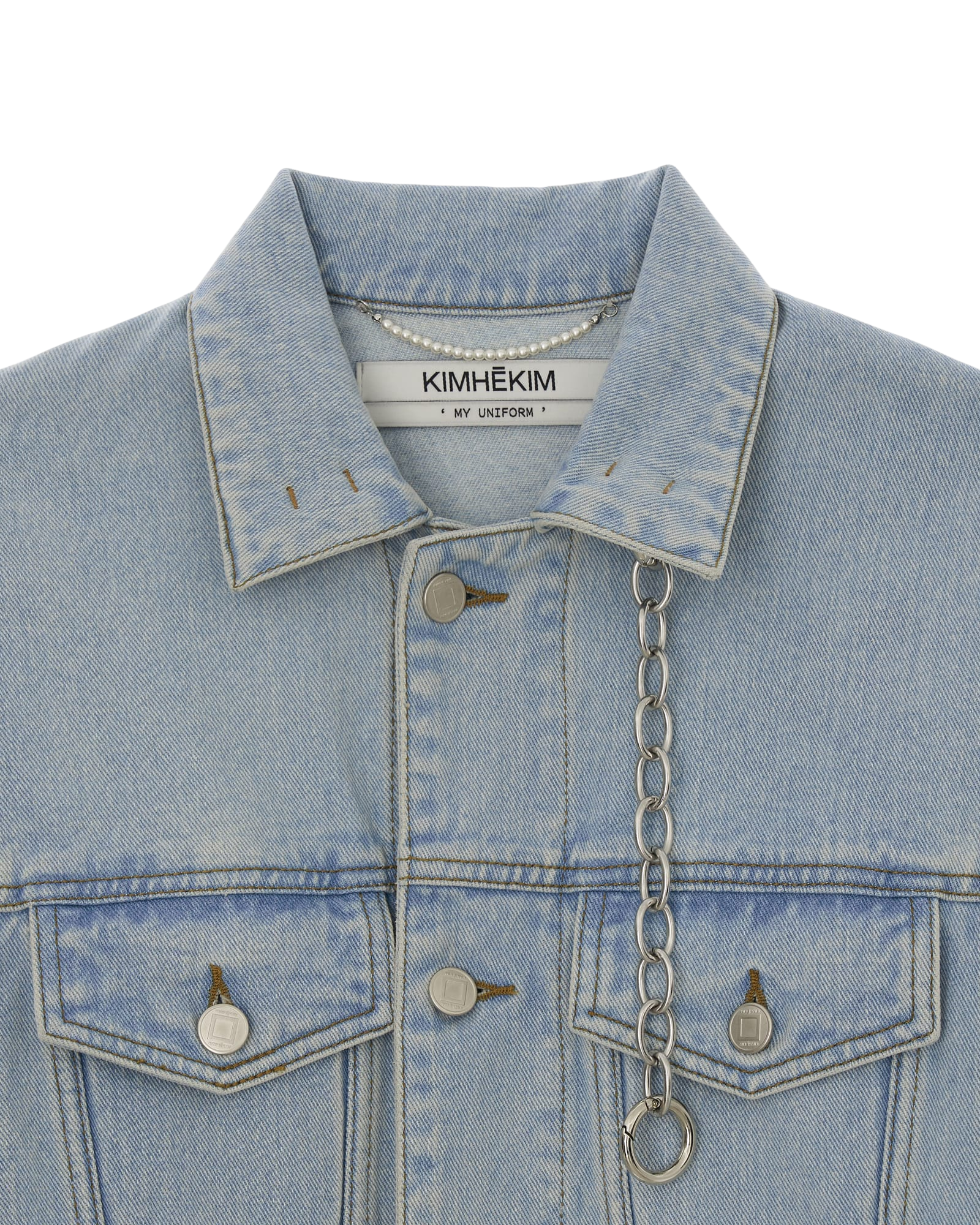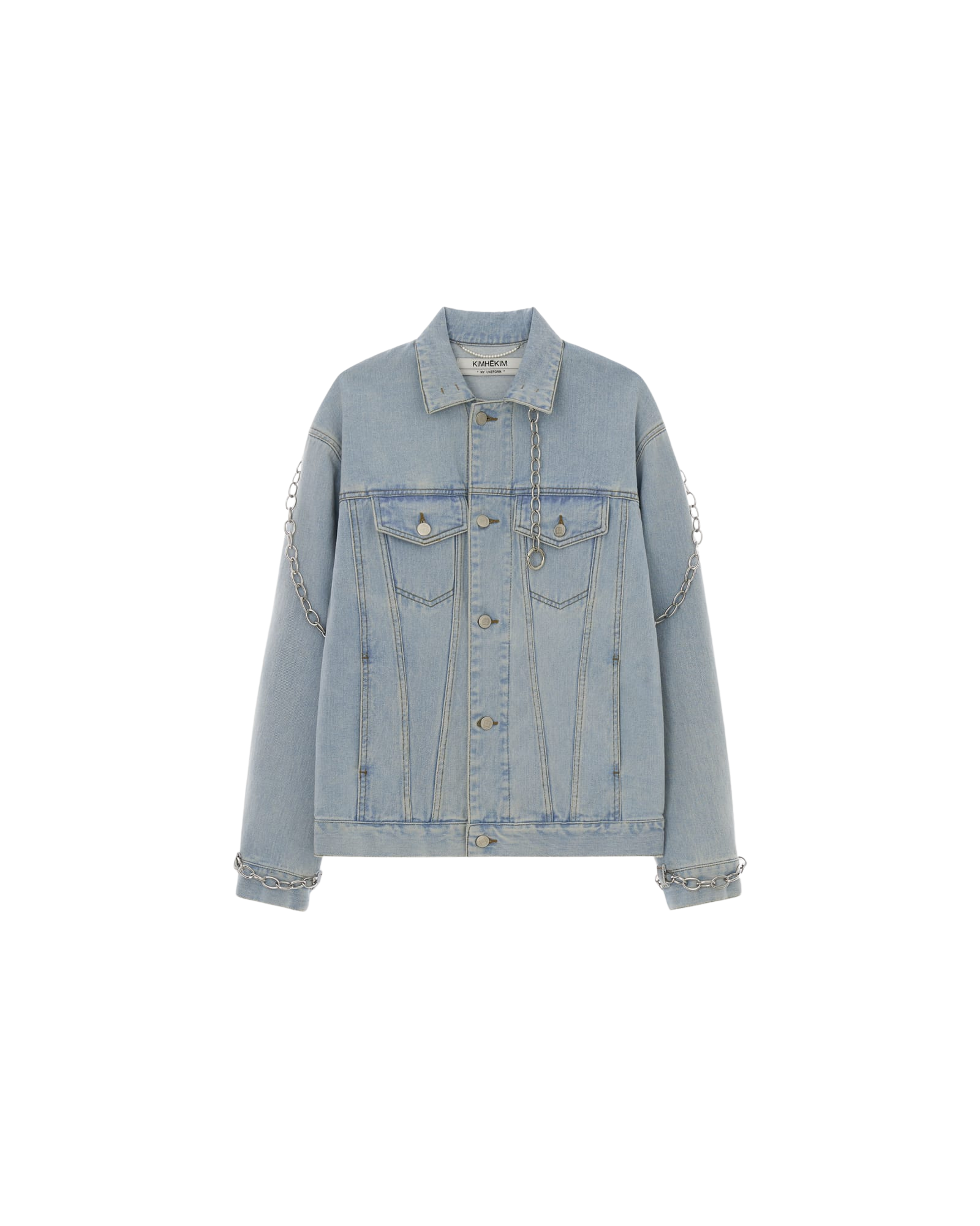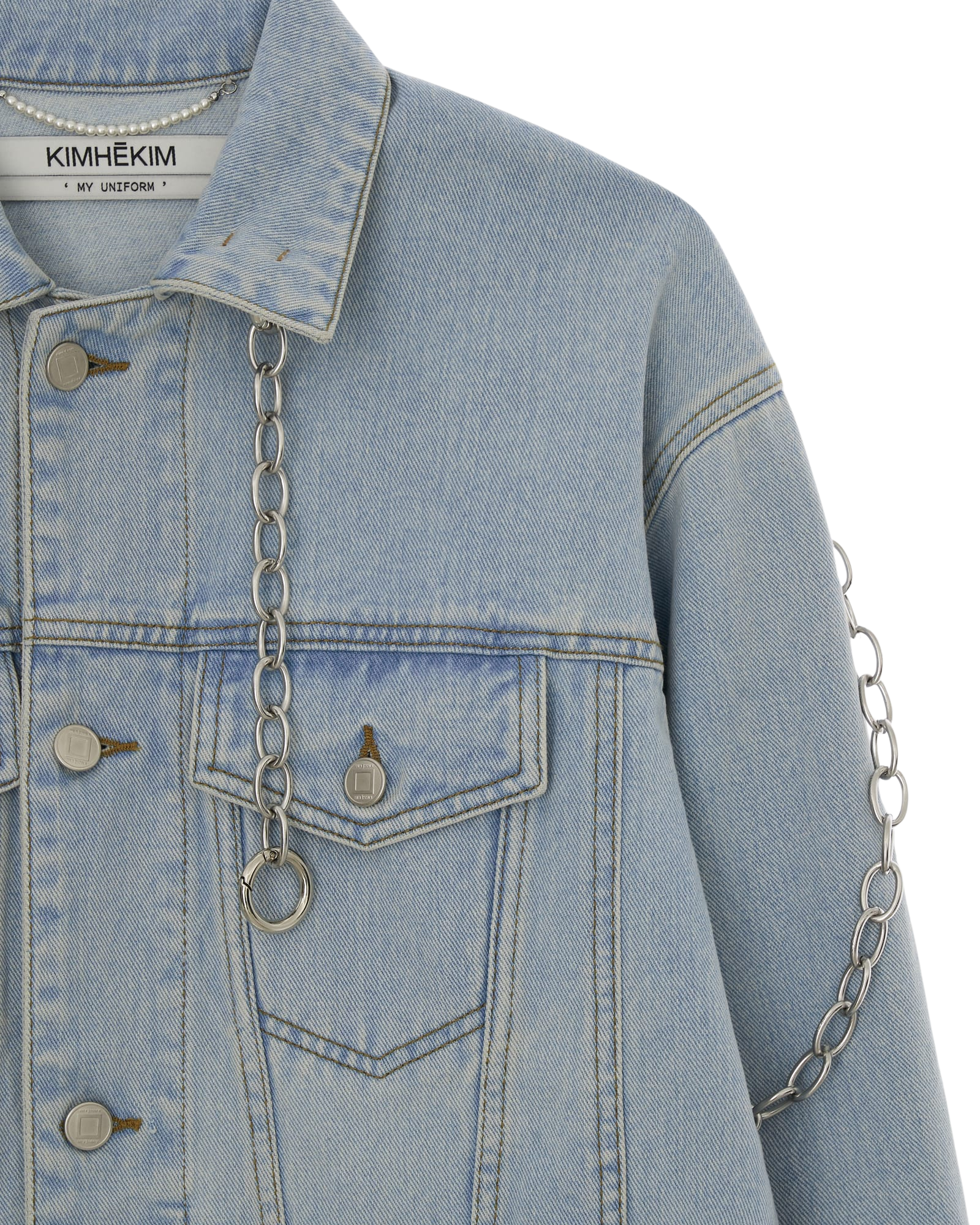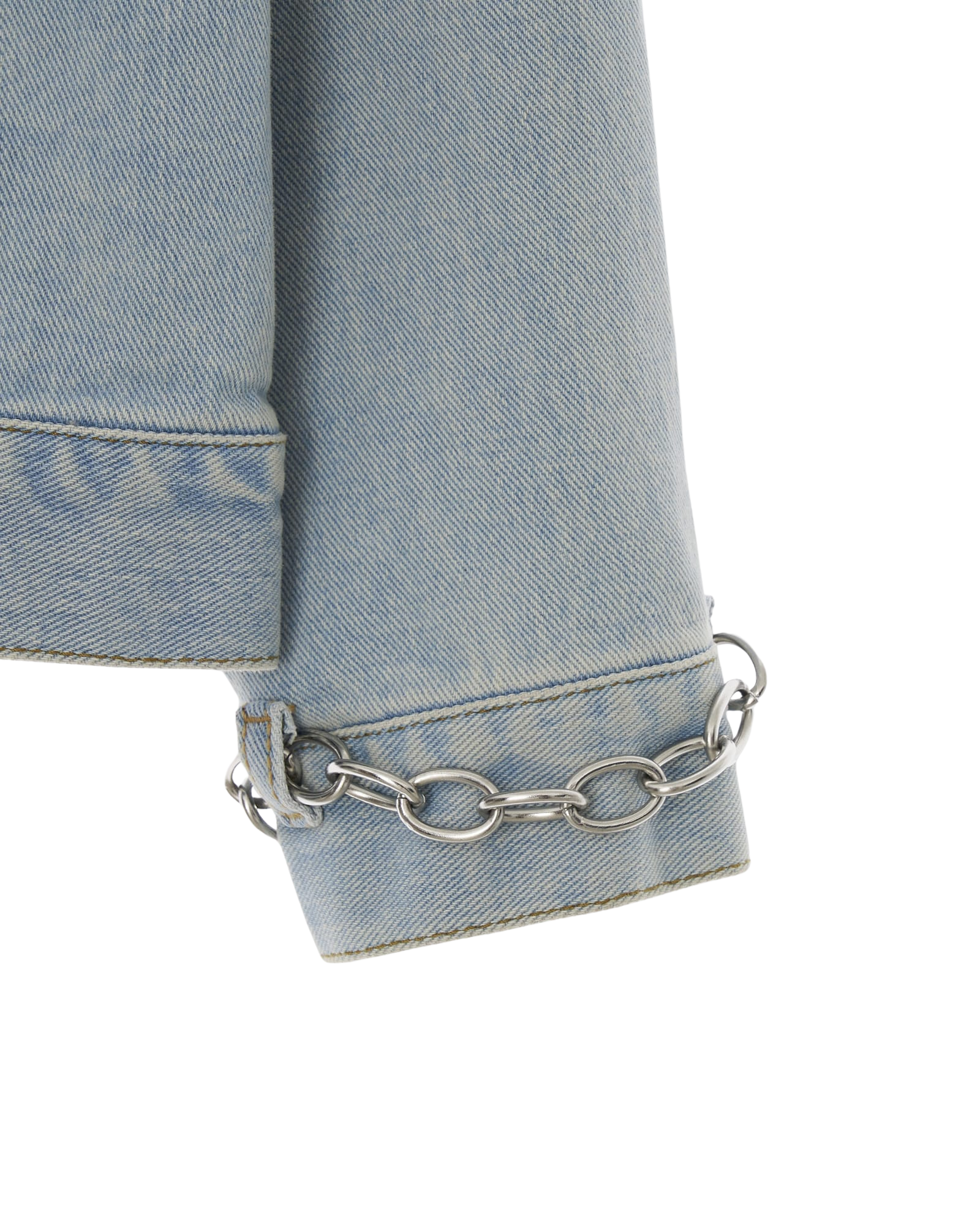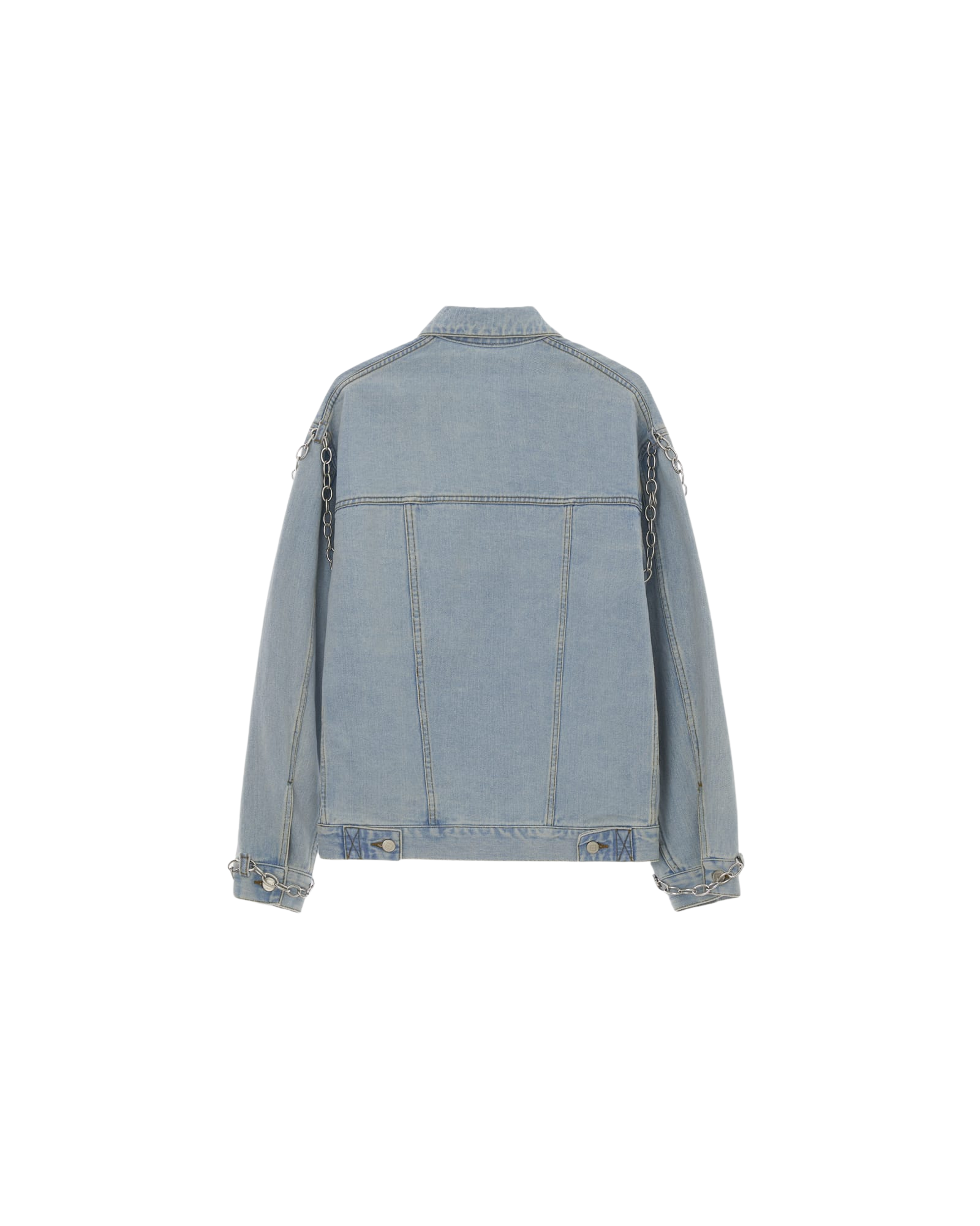 Detachable Chain Embellished Denim Jacket (Sky Blue)