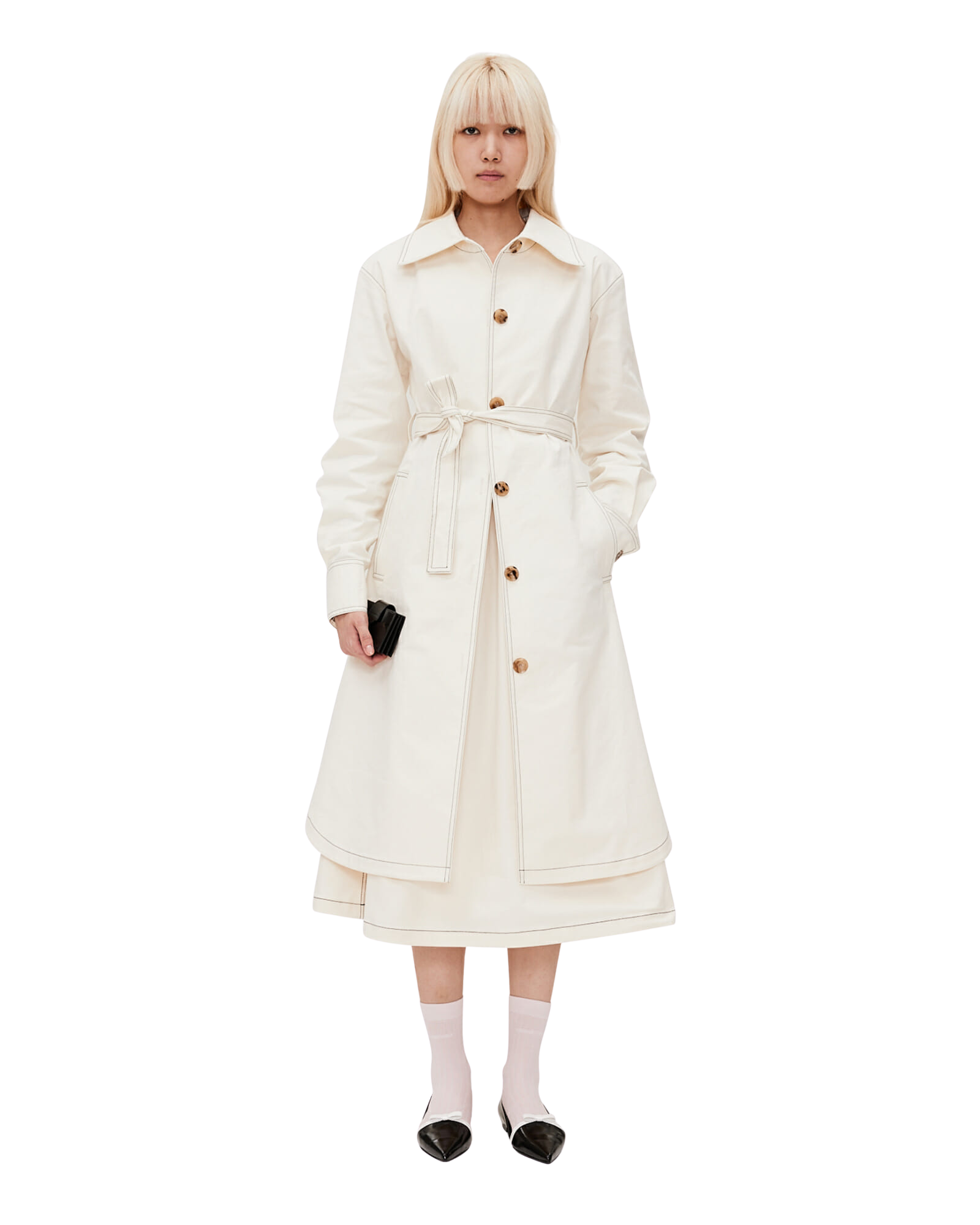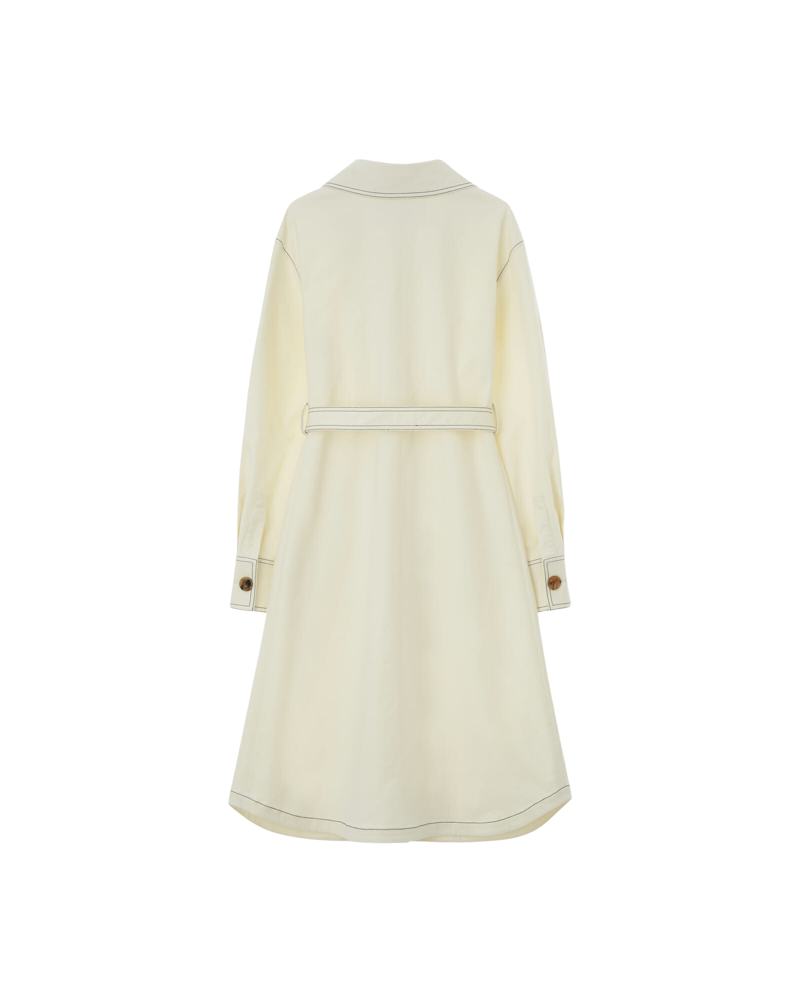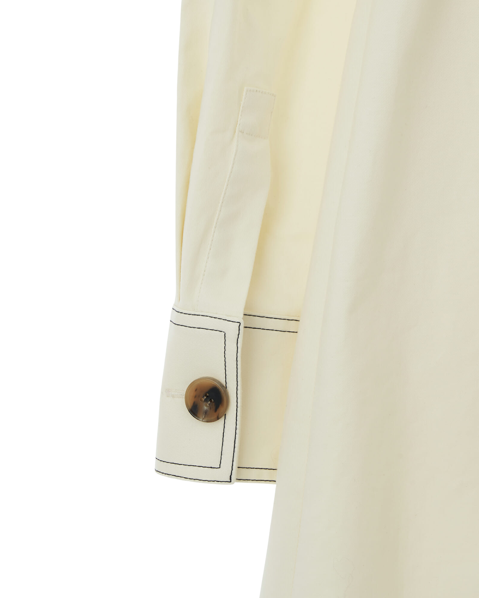 Dropped-Shoulder Cotton-Blended Shirt Dress (Ivory)