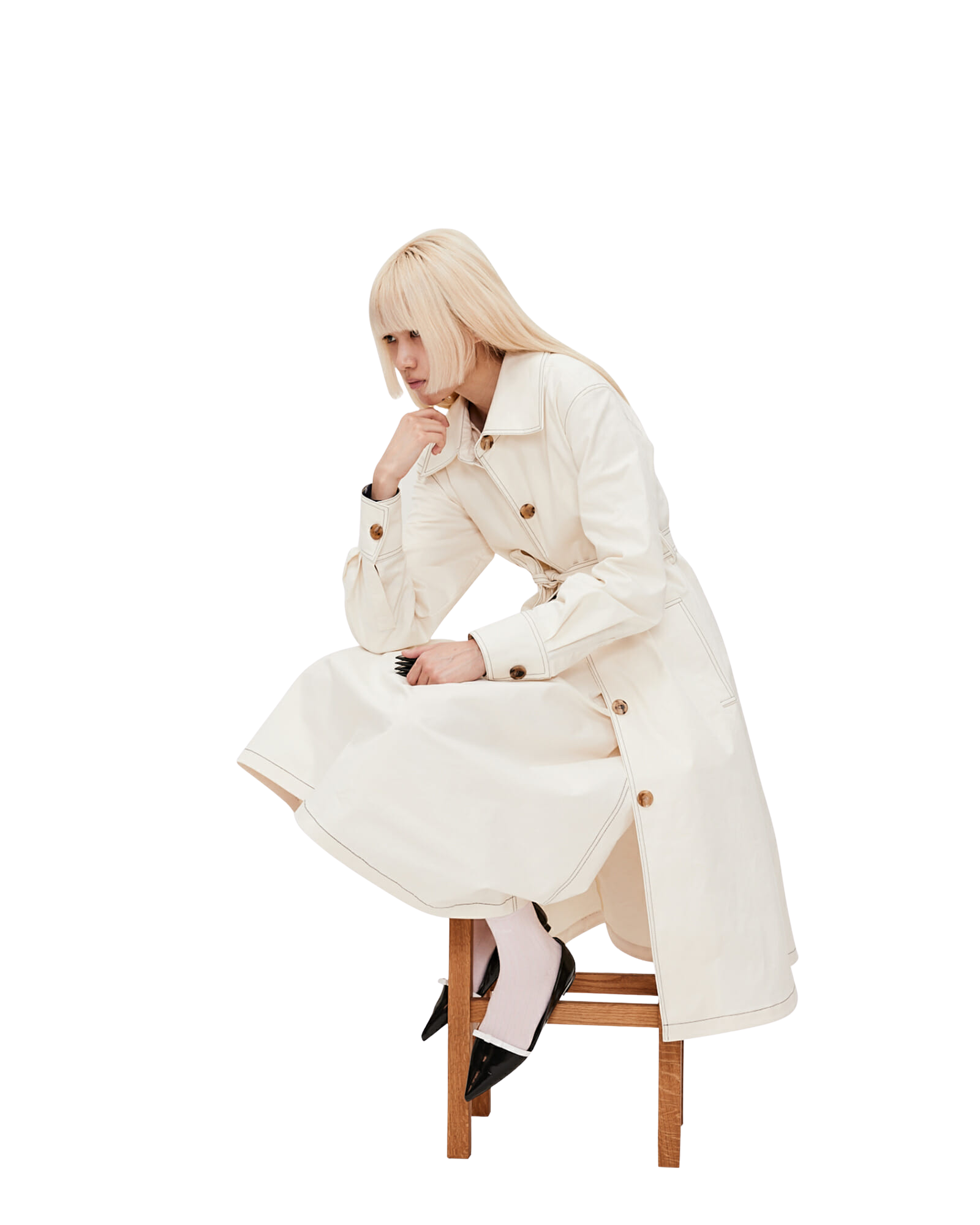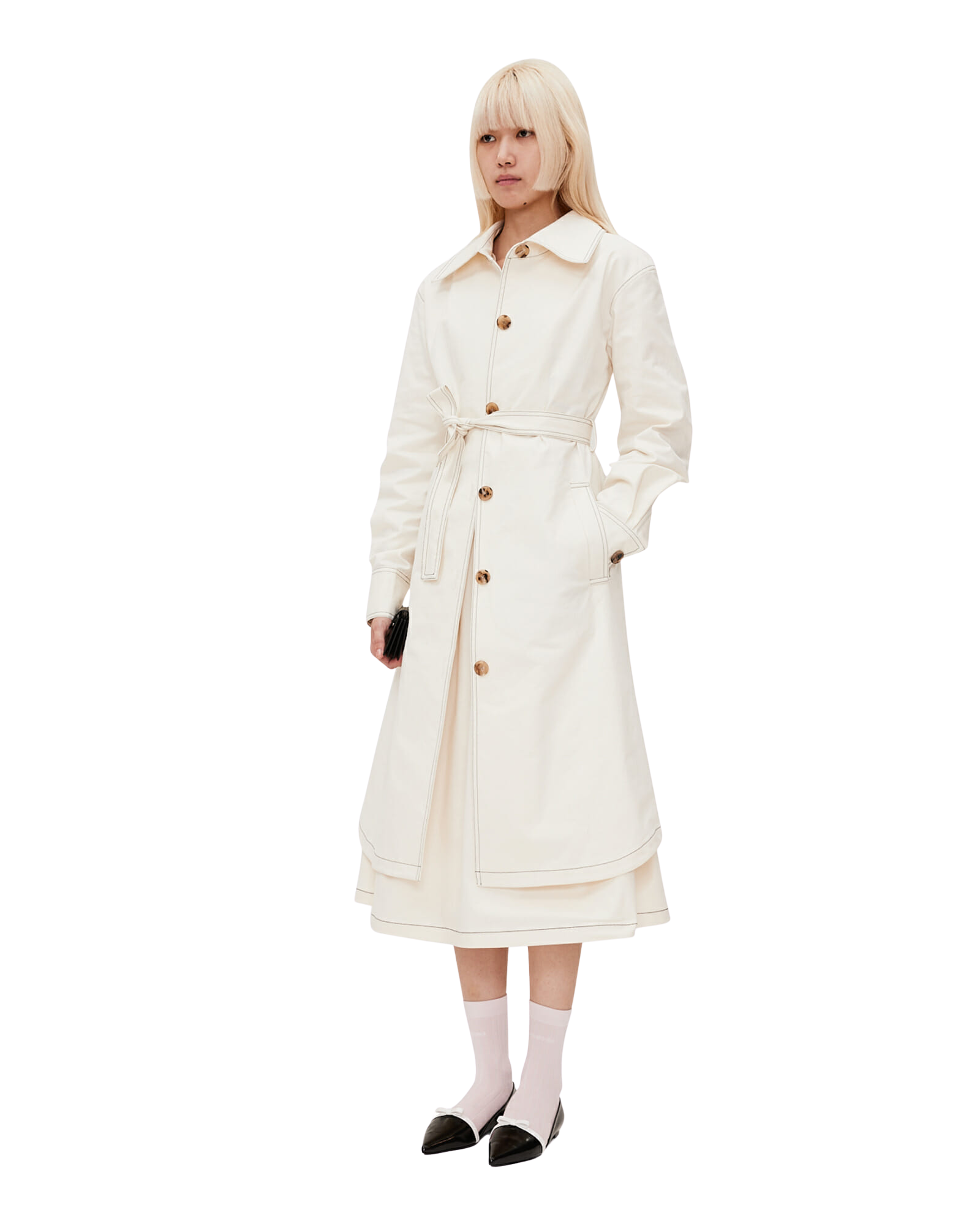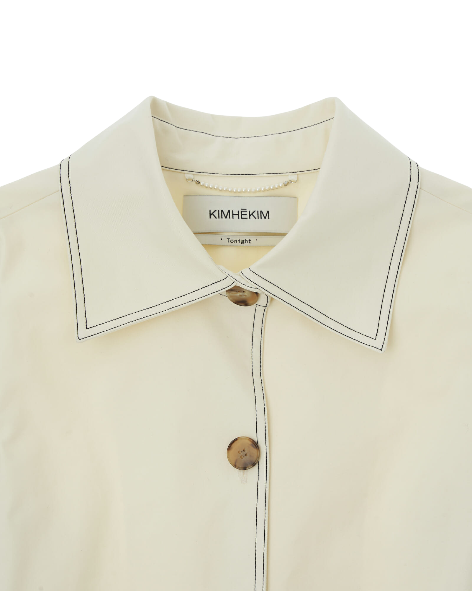 Dropped-Shoulder Cotton-Blended Shirt Dress (Ivory)