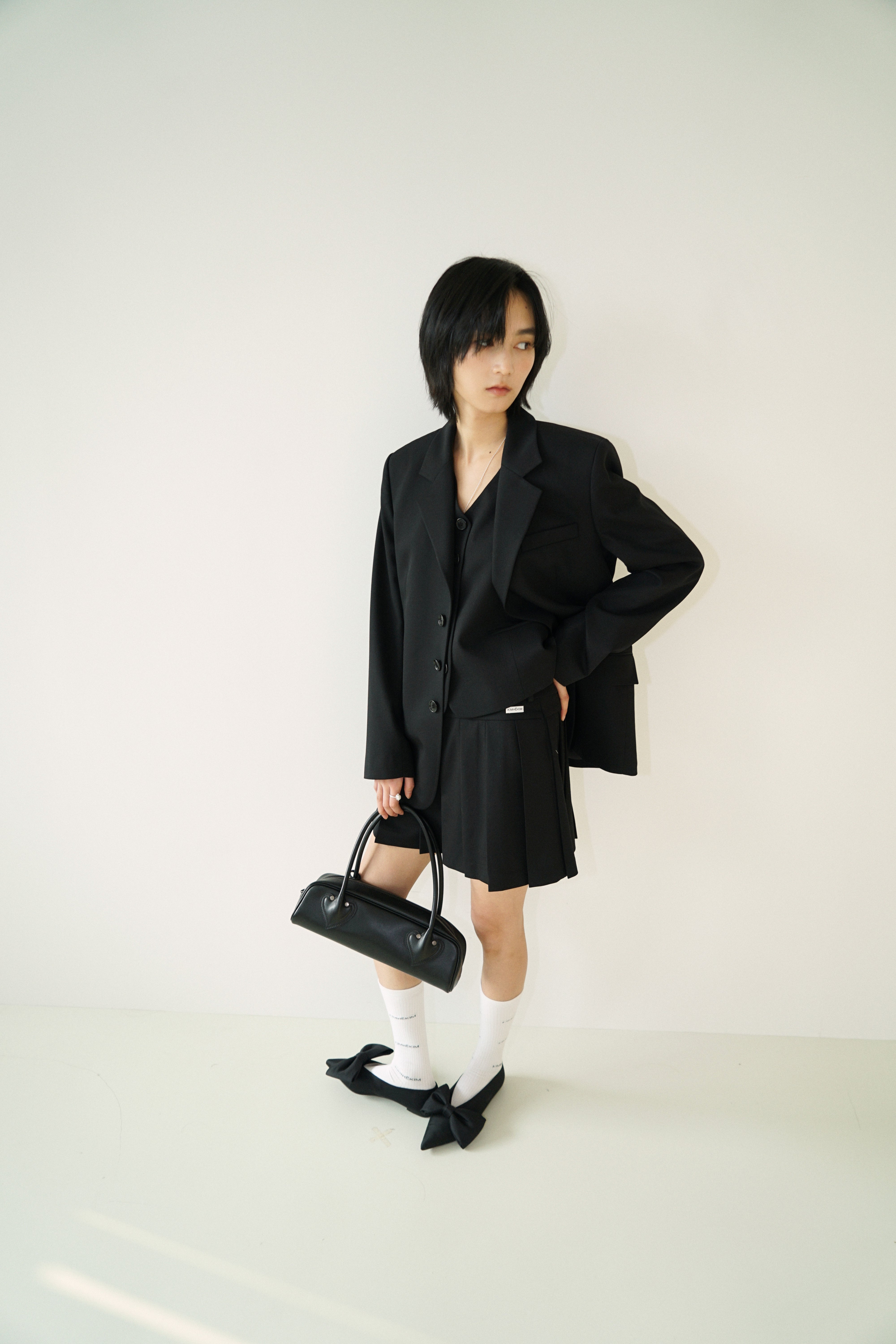 -Single-button closure at the front.