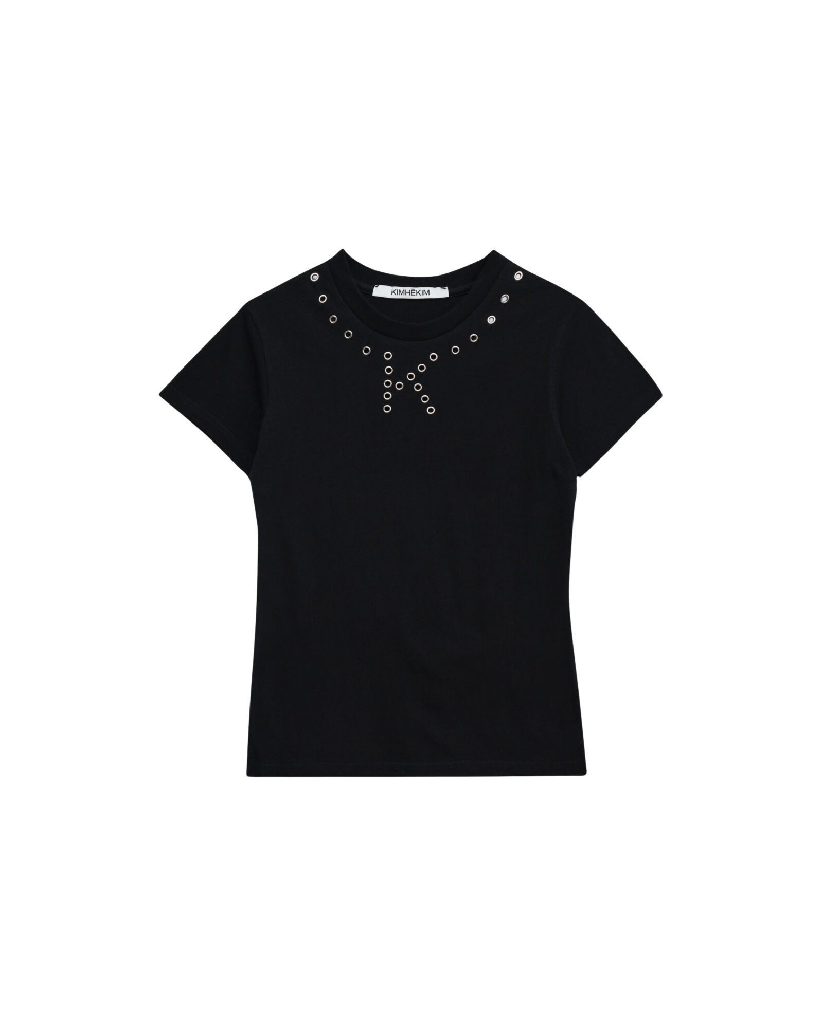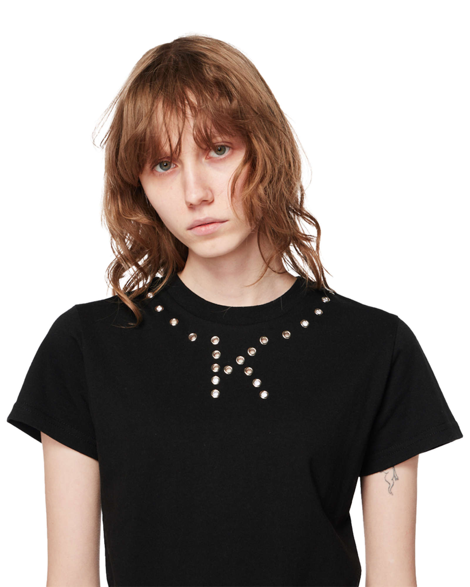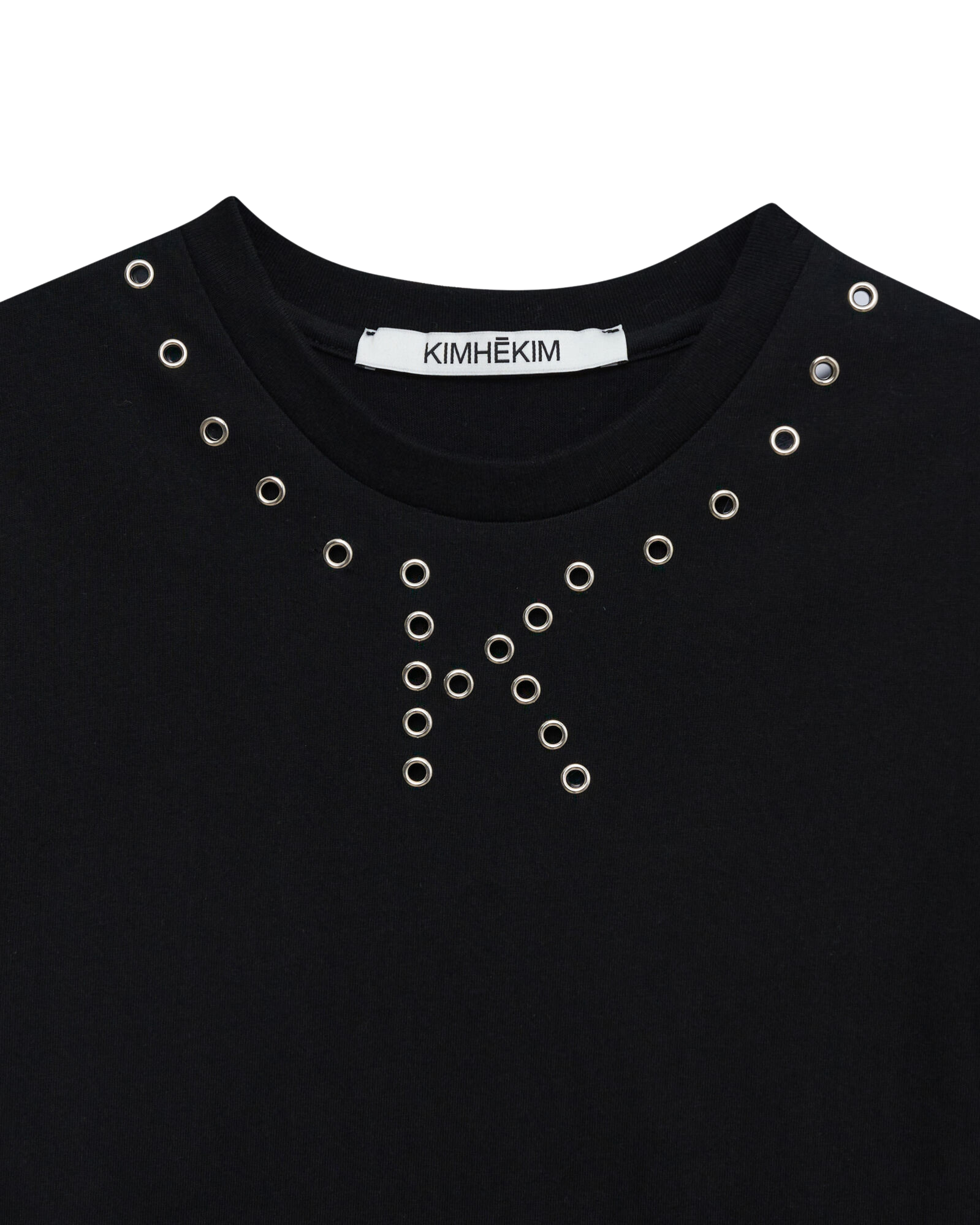 -Embellished eyelet features ‘K' from KIMHEKIM at the center front.