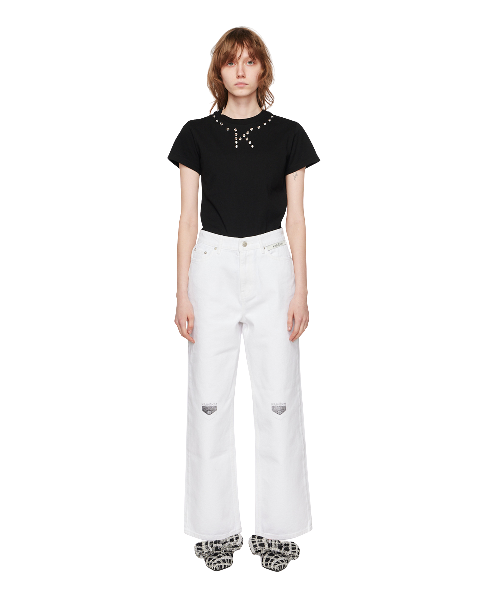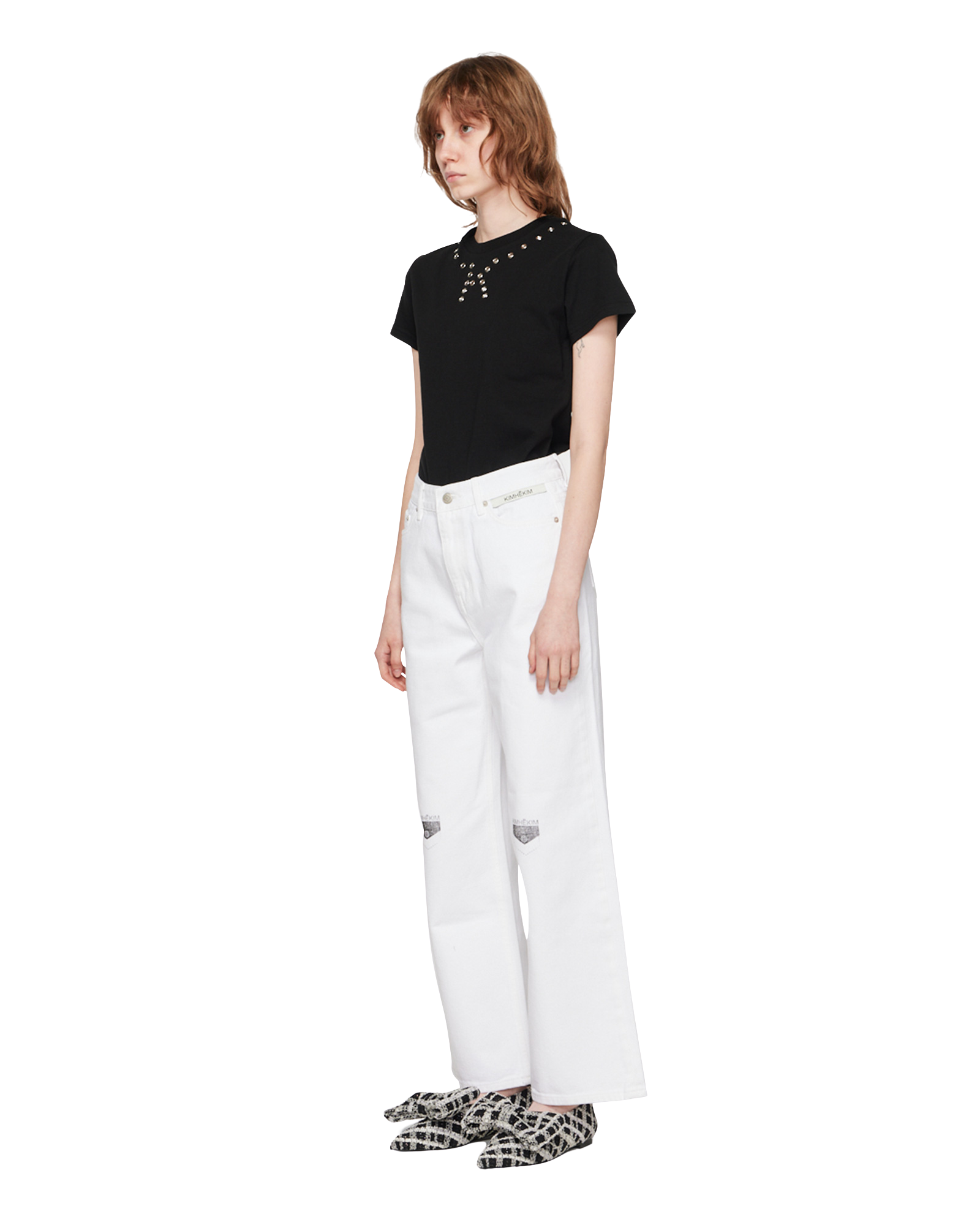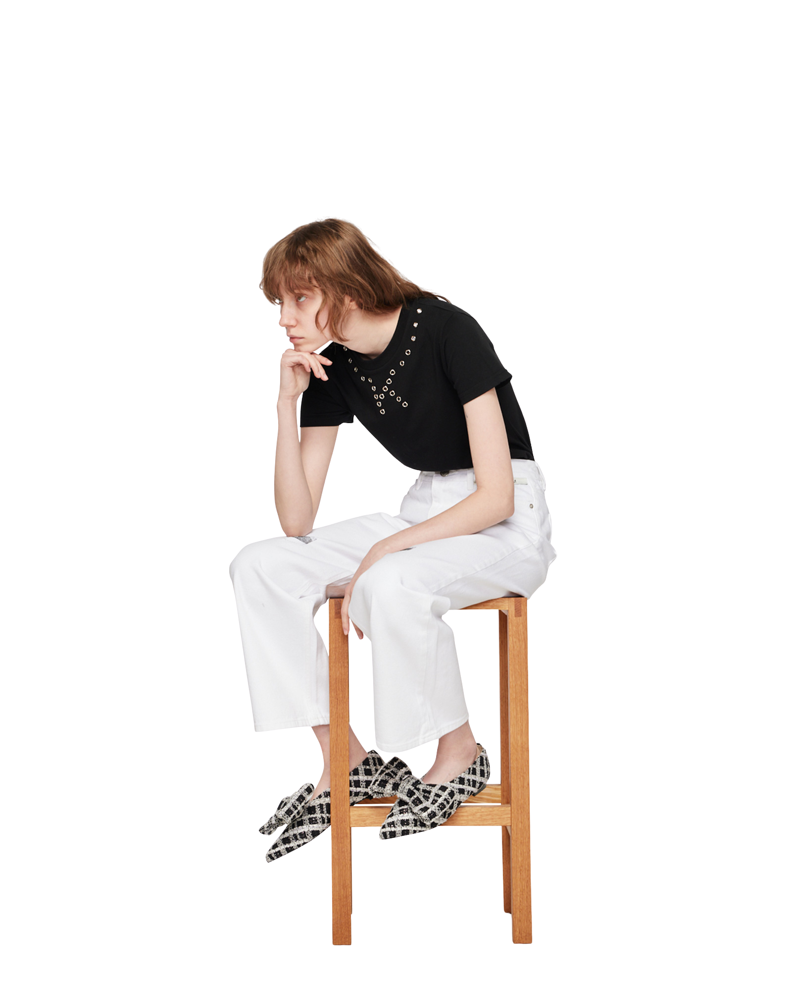 -Embellished eyelet features ‘K' from KIMHEKIM at the center front.
