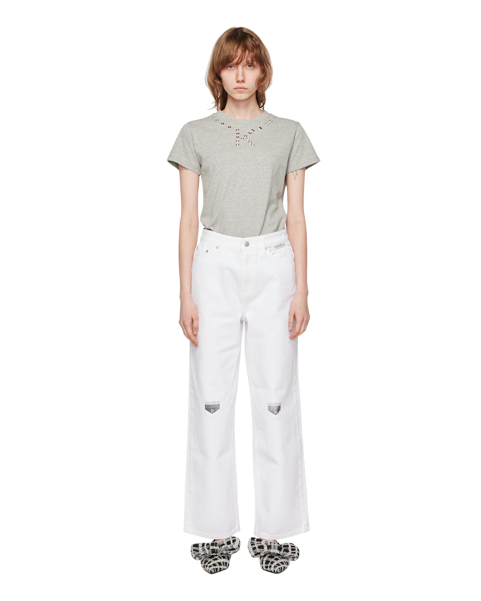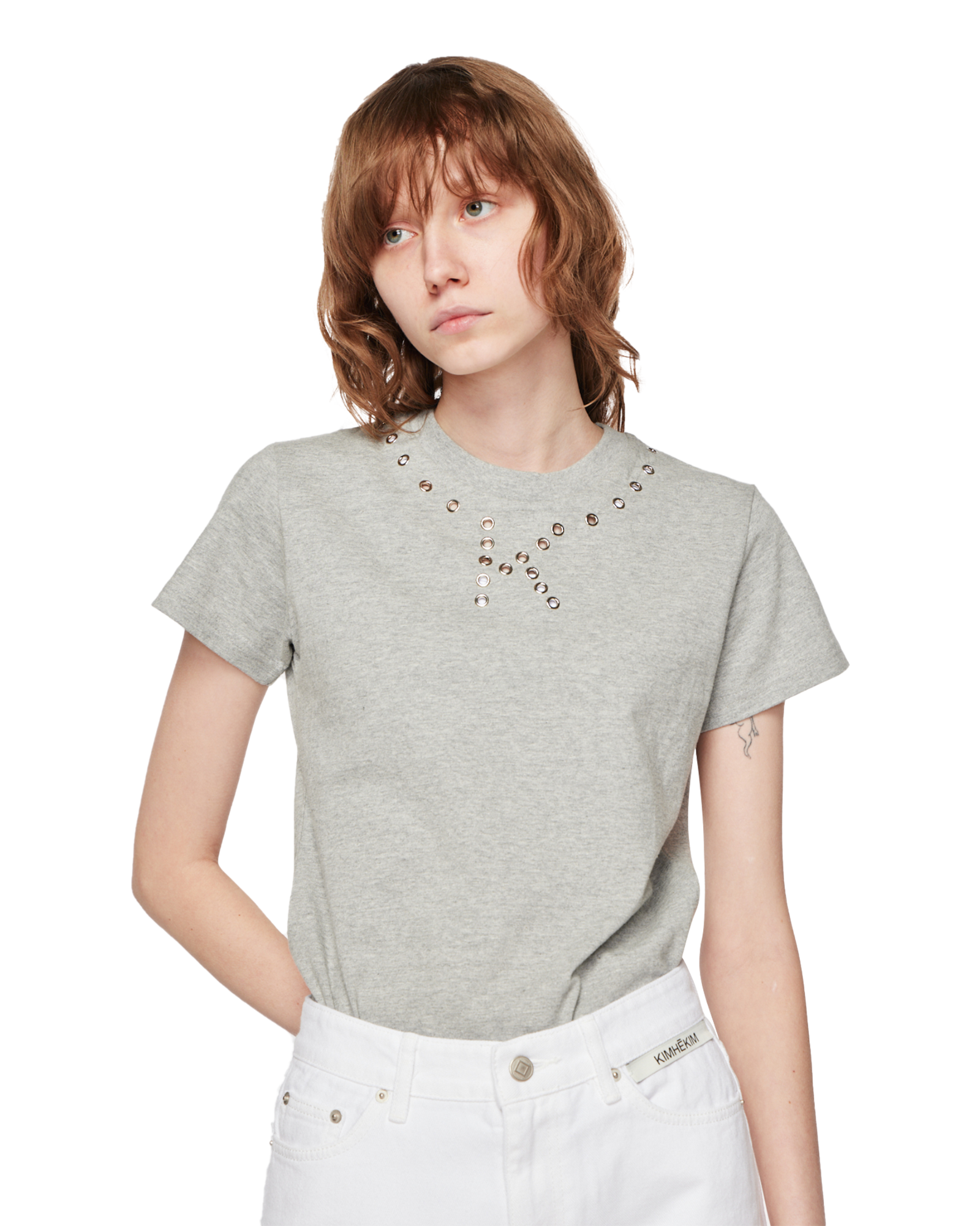 -Embellished eyelet features ‘K' from KIMHEKIM at the center front.