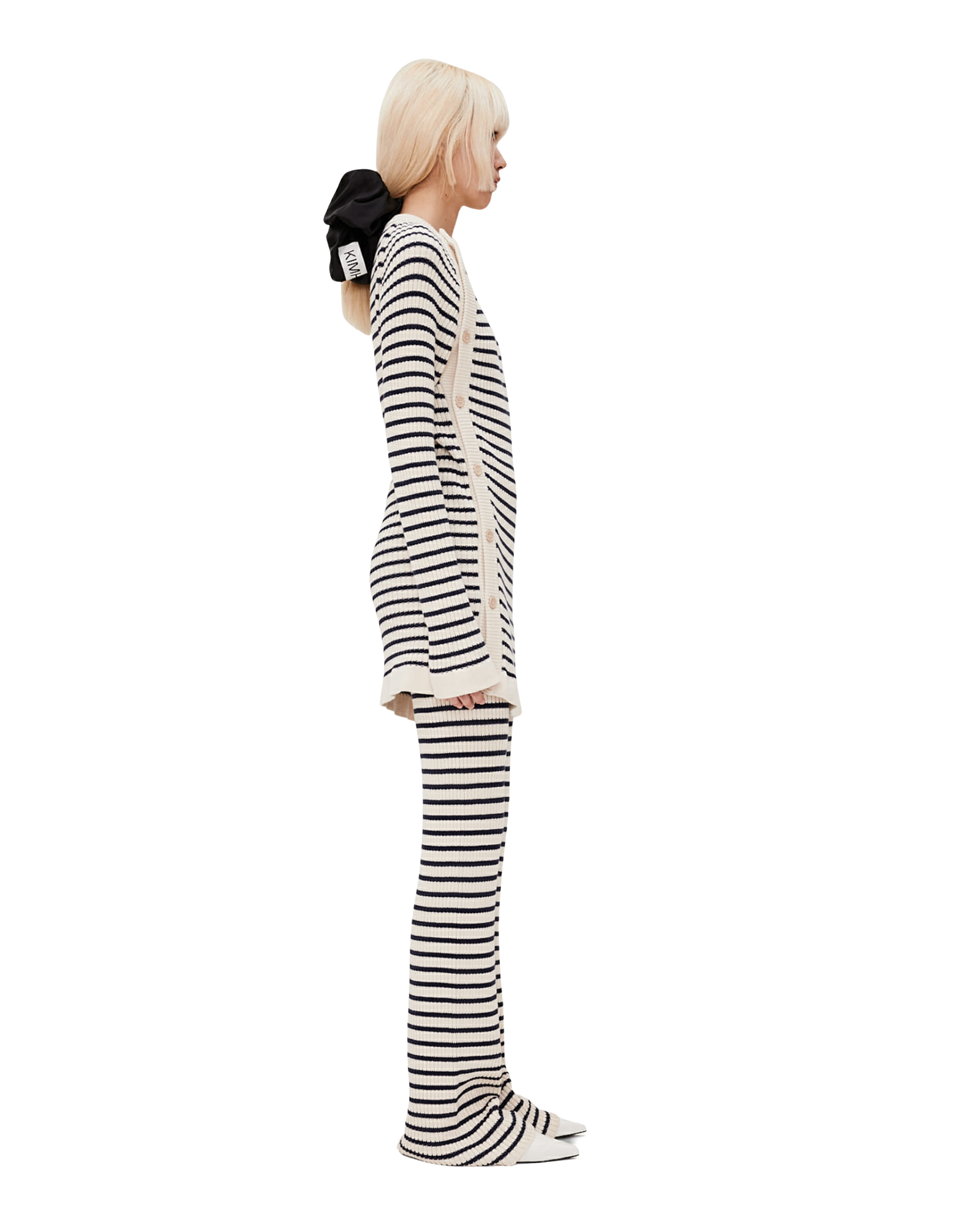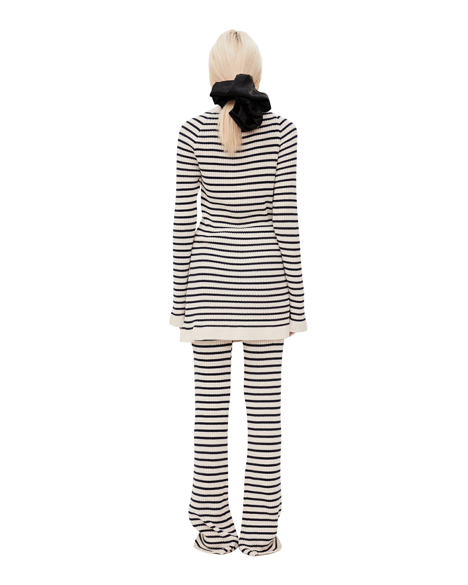 Knitted Fit And Flarred Leg Pants (Navy/Ivory)