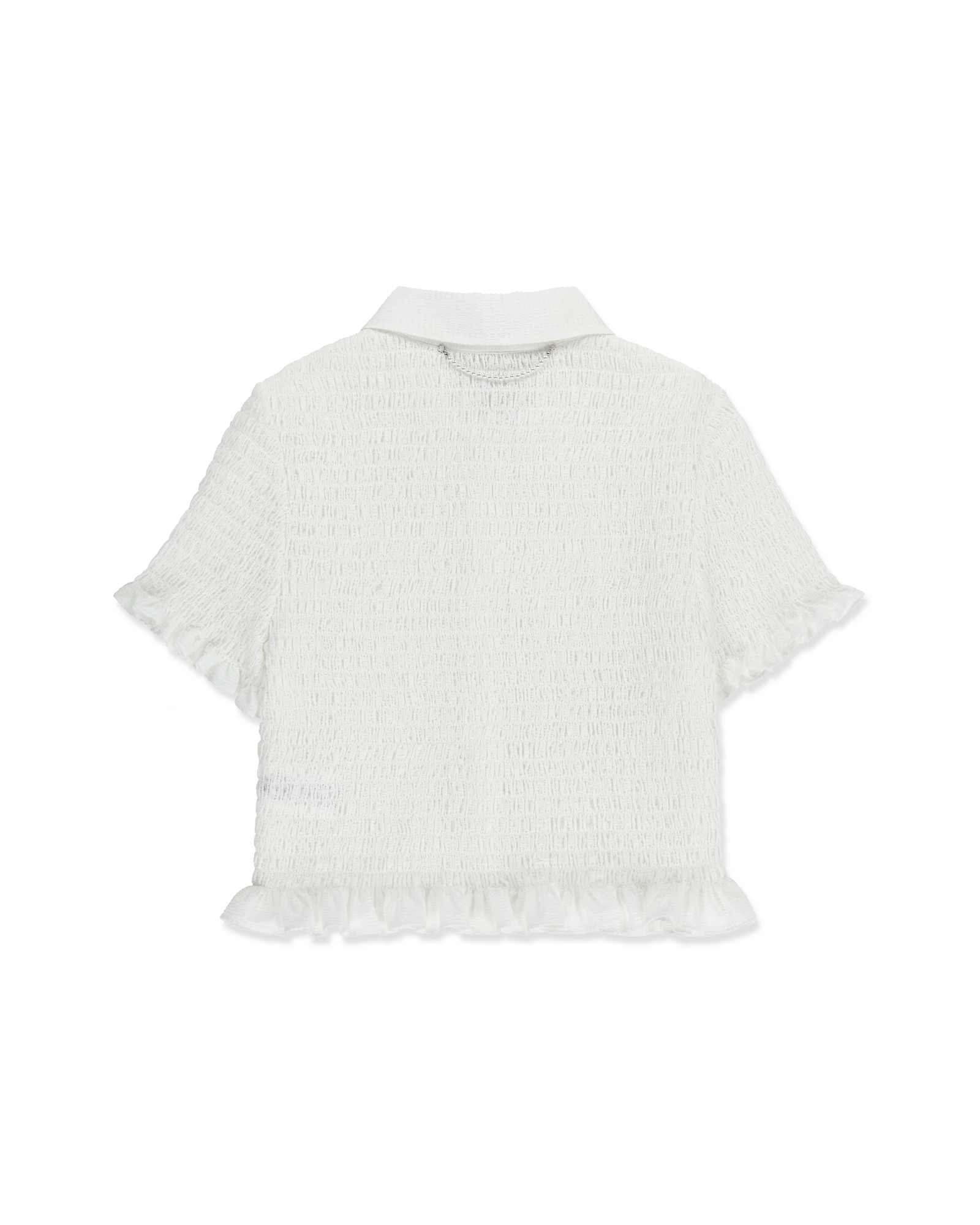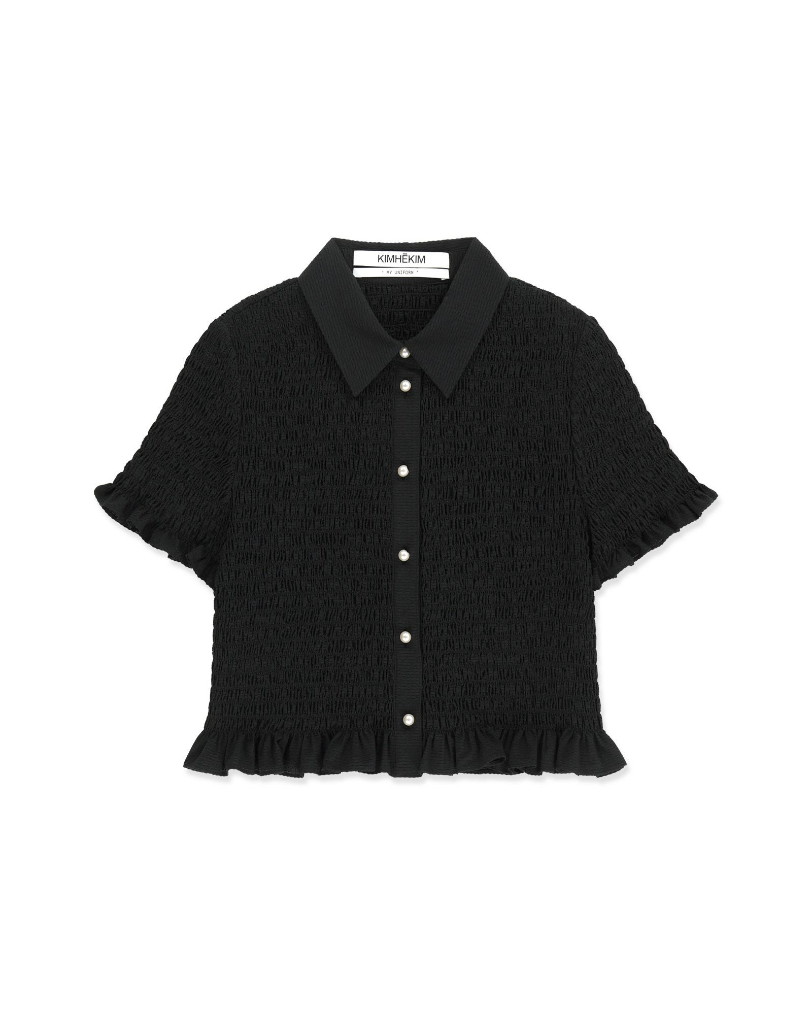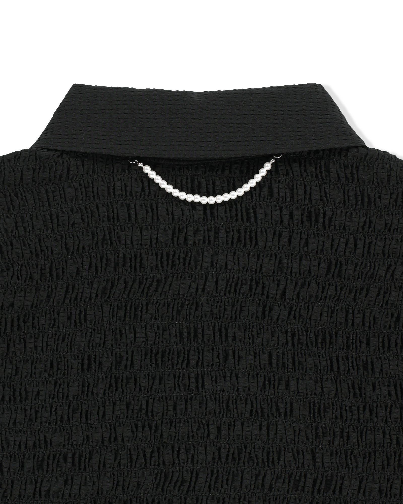 -A cropped shirt adorned with pearl buttons.