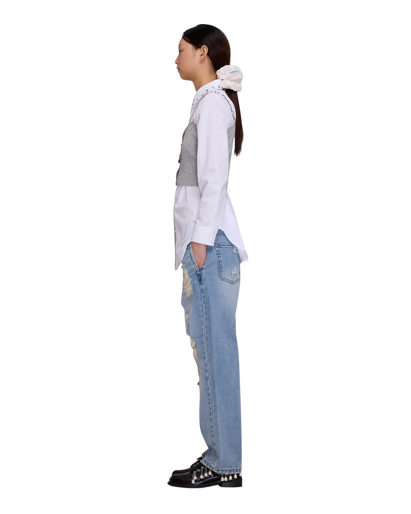 Small Ribbon Embellished Faux-Pearl Necklace (White)