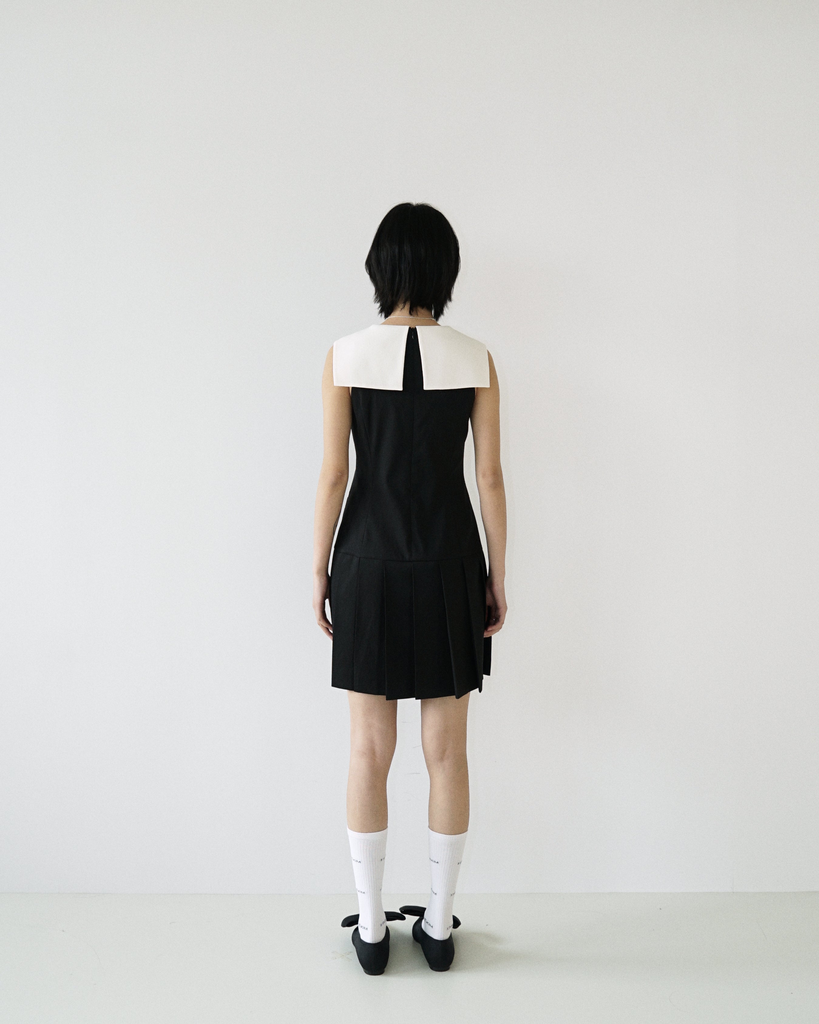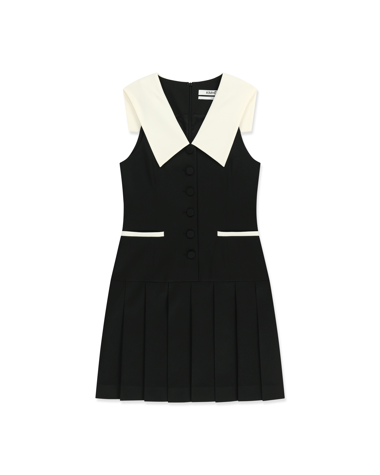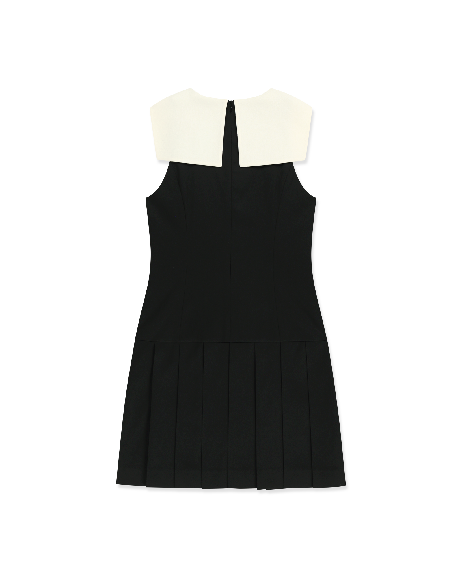 Malevich Sailor Collar Pleated Sleeveless Dress (Black/Ivory)