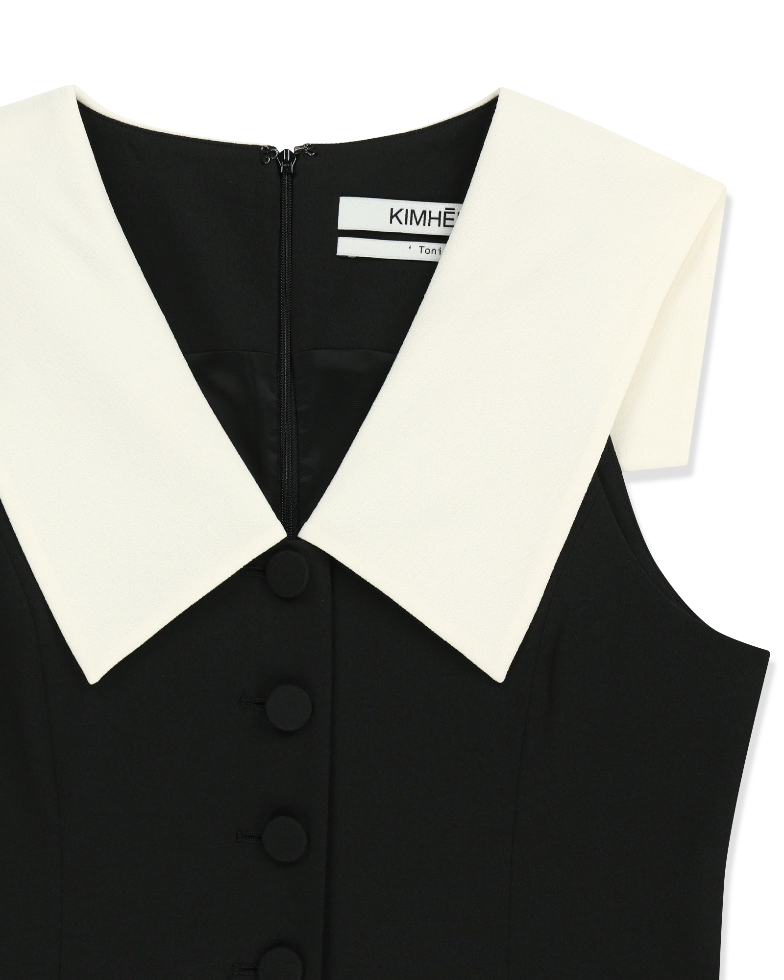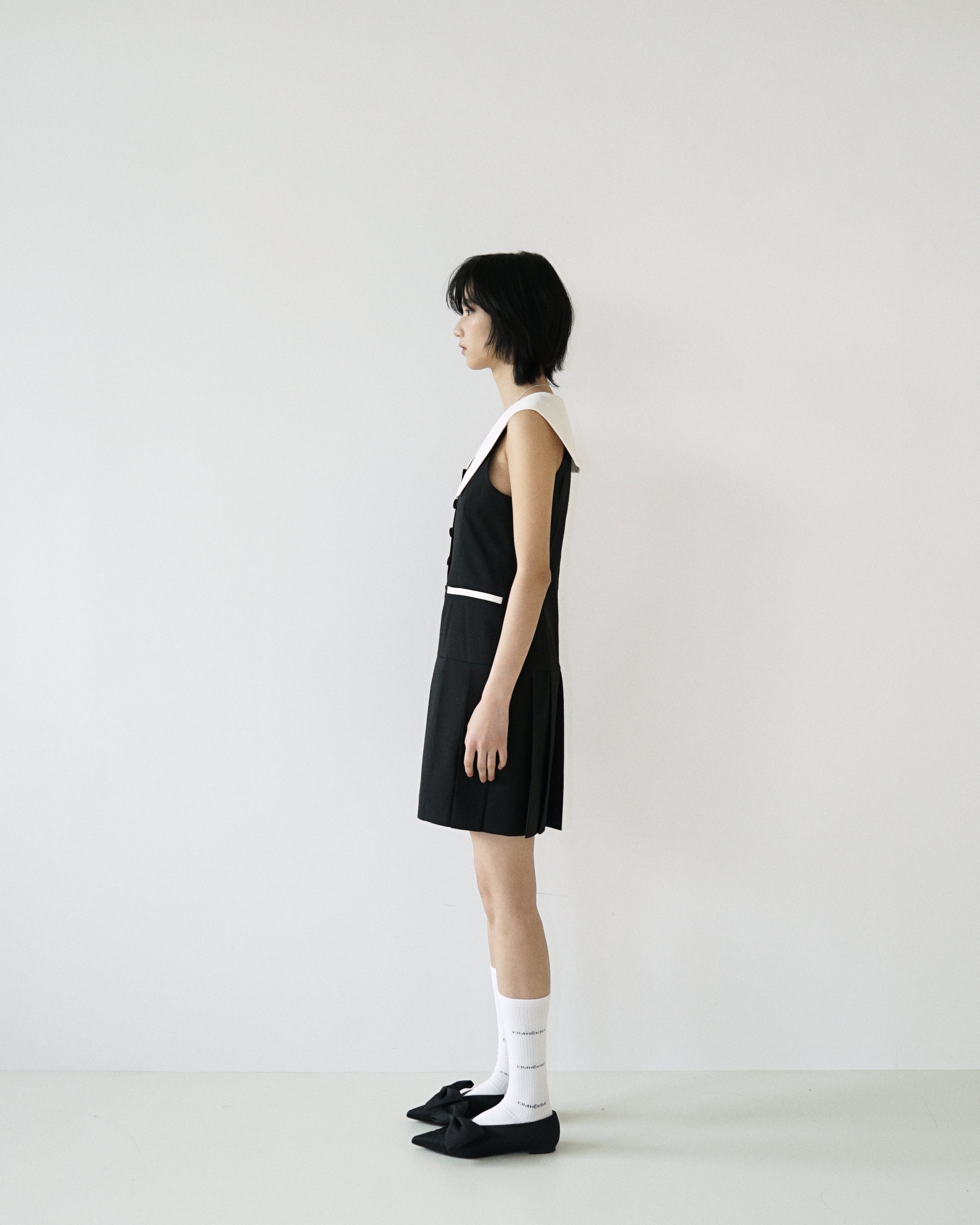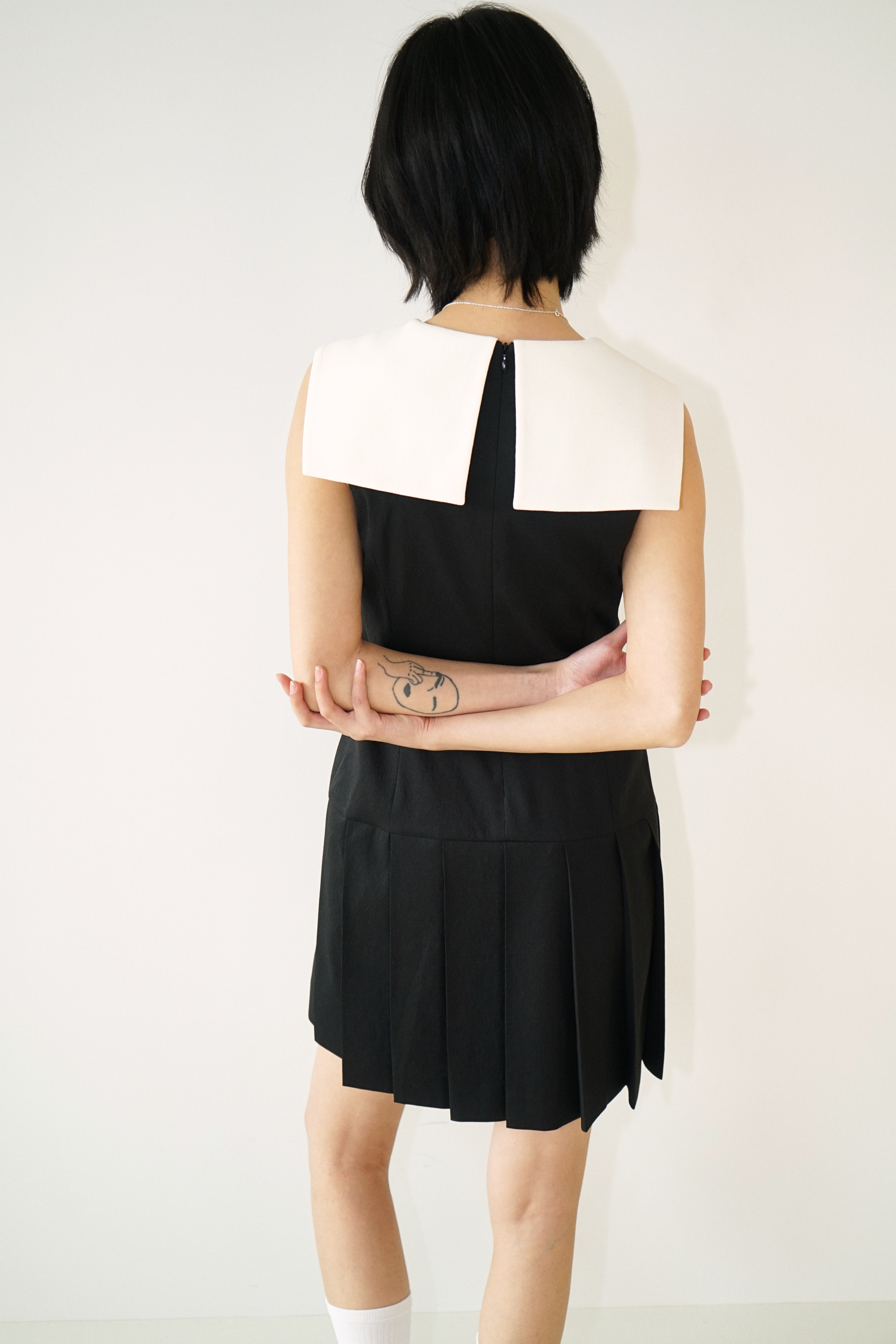 Malevich Sailor Collar Pleated Sleeveless Dress (Black/Ivory)