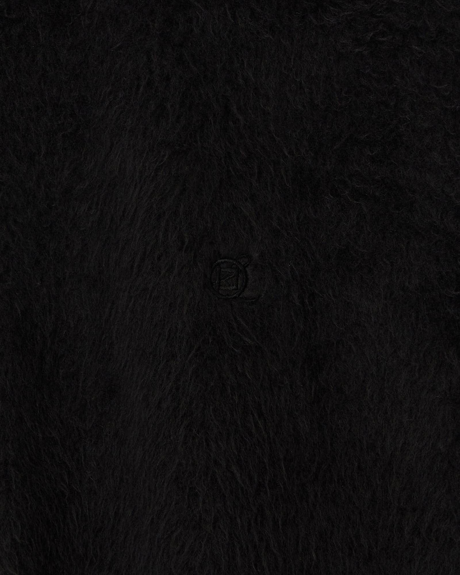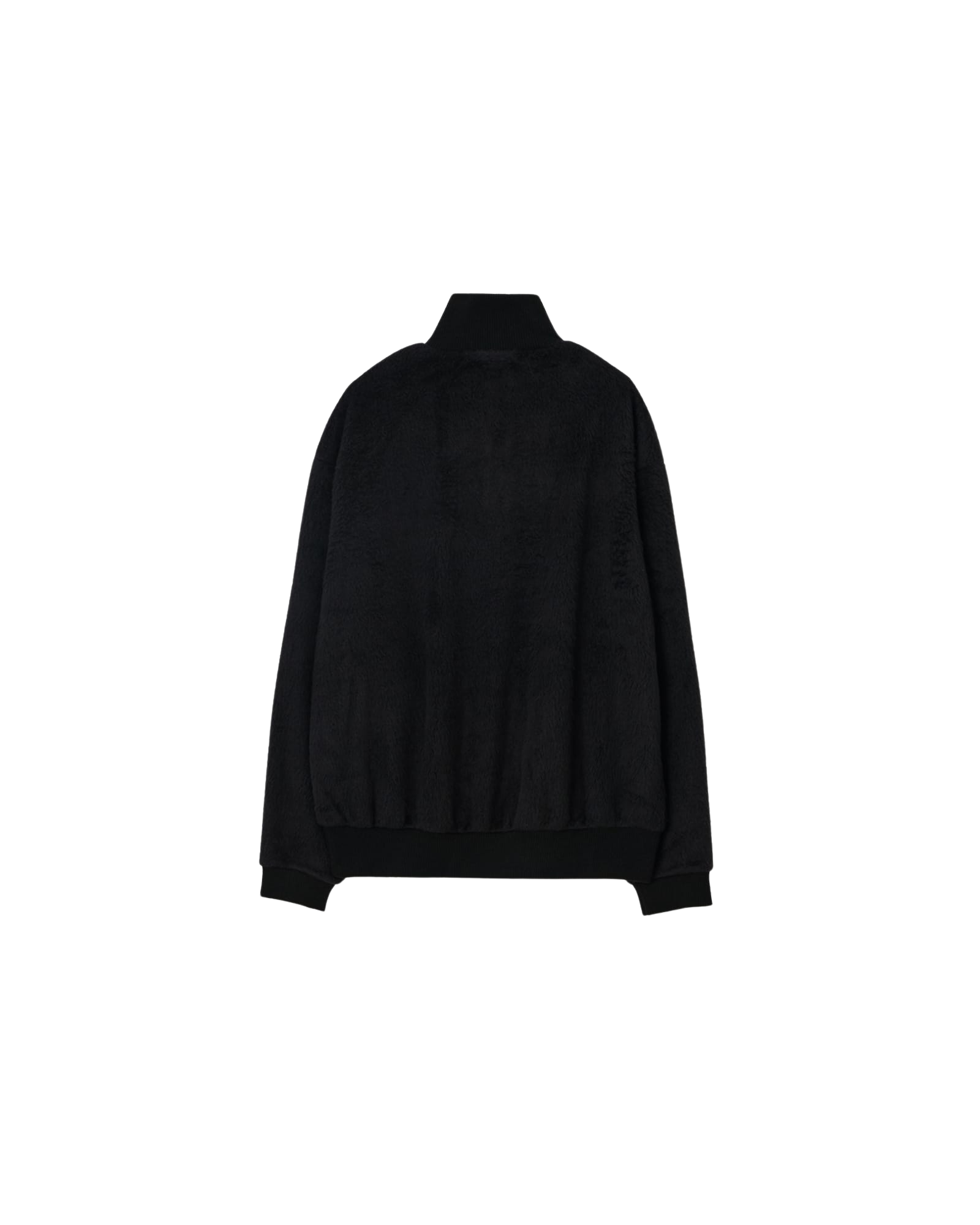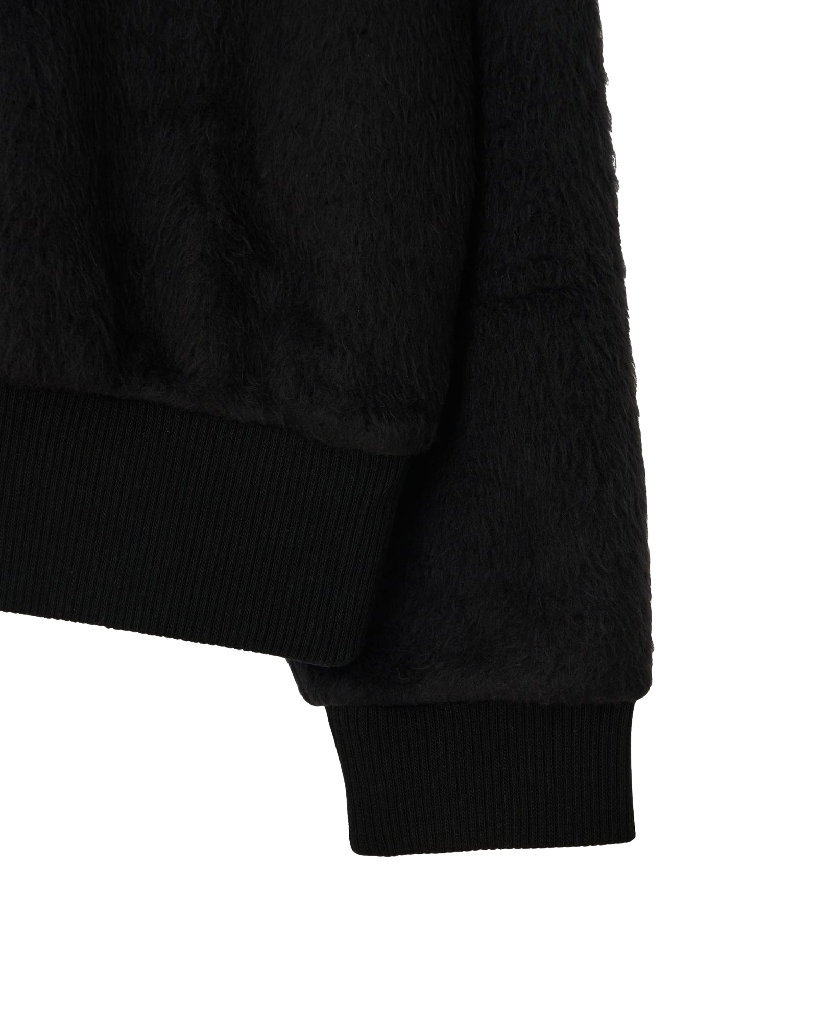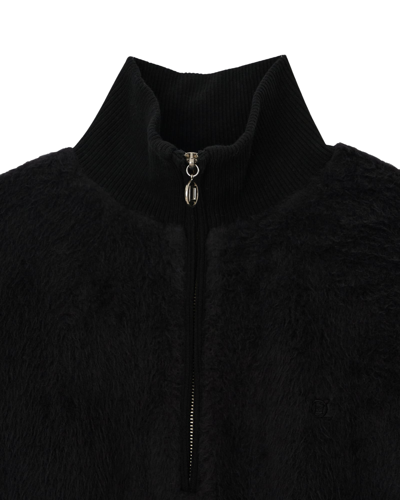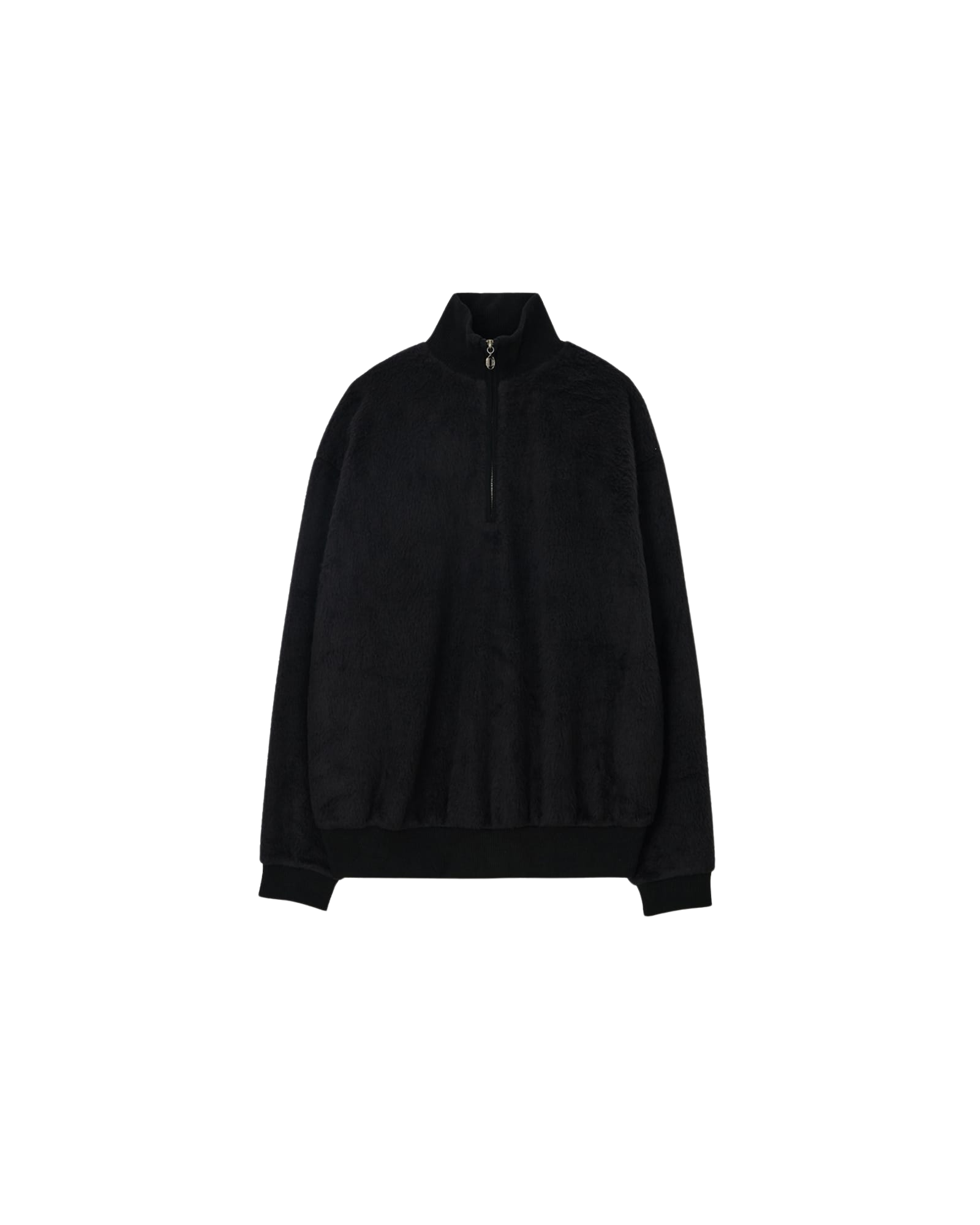 -A half-zip pullover sweatshirt made from hairy fabric.