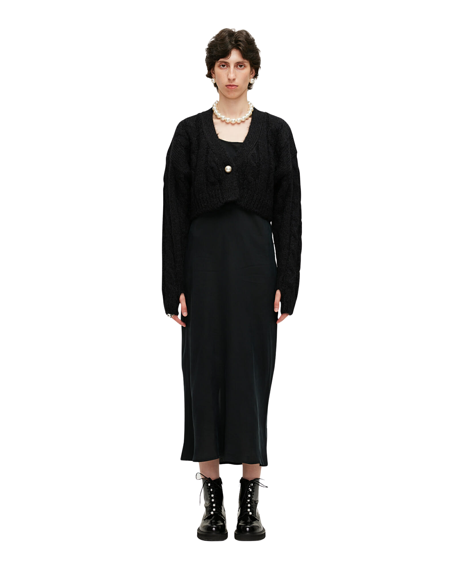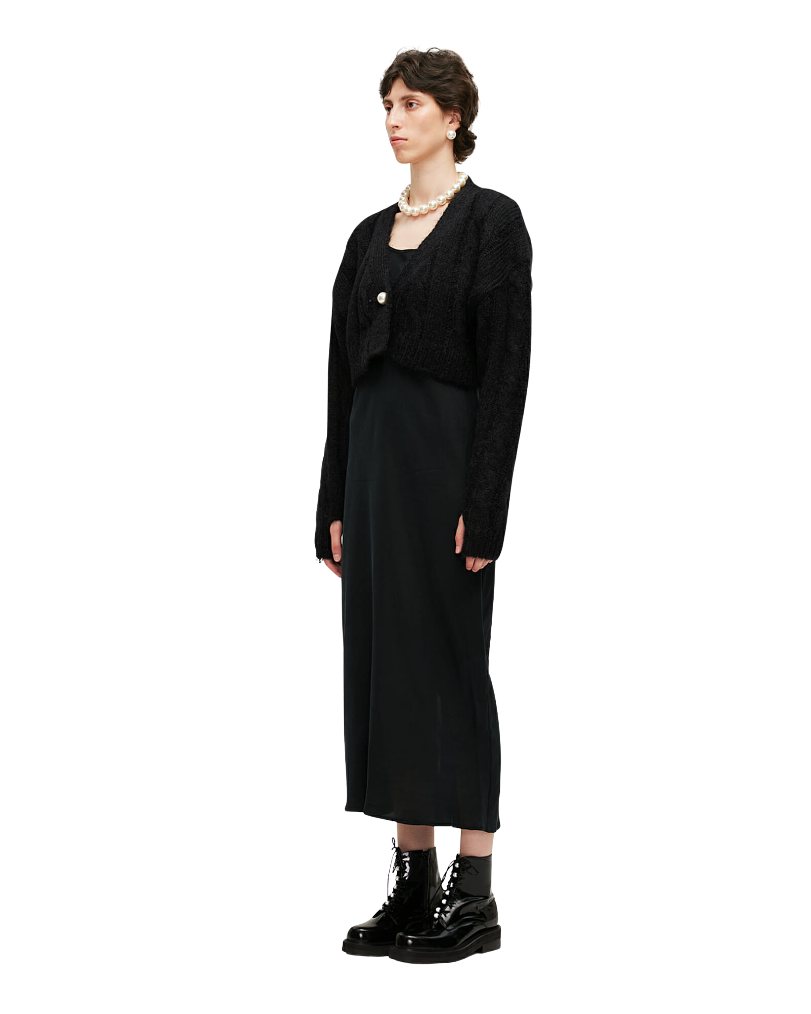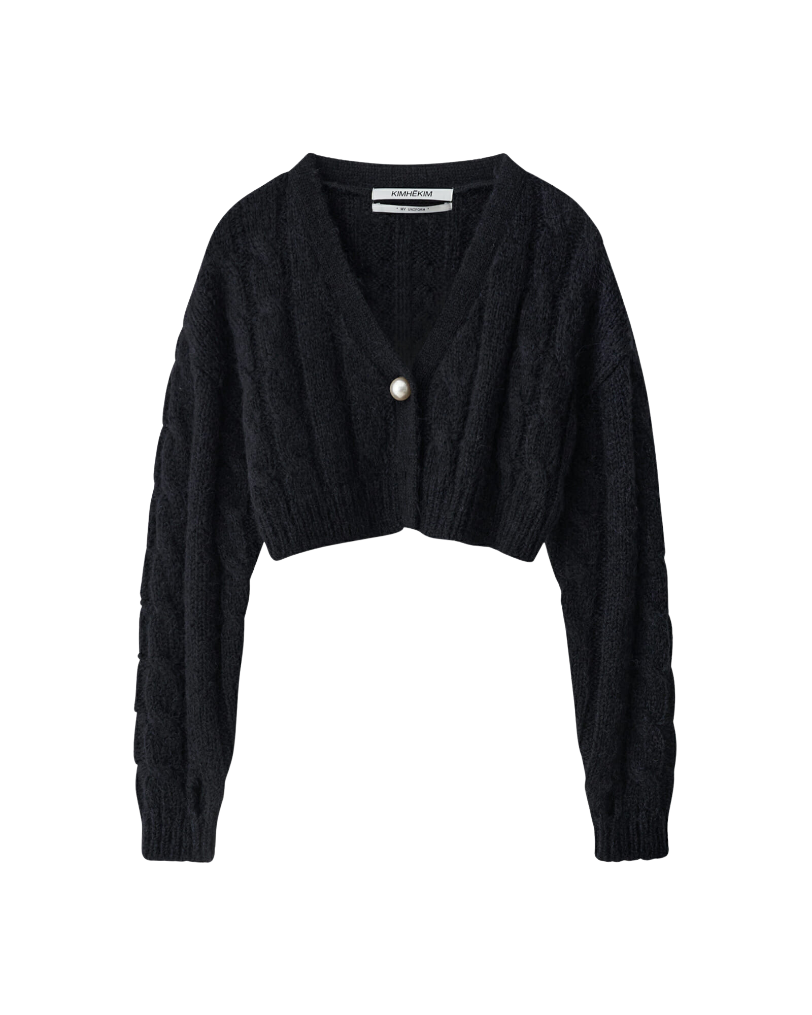 Pearl Button Cropped Mohair-Alpaca Cardigan (Black)