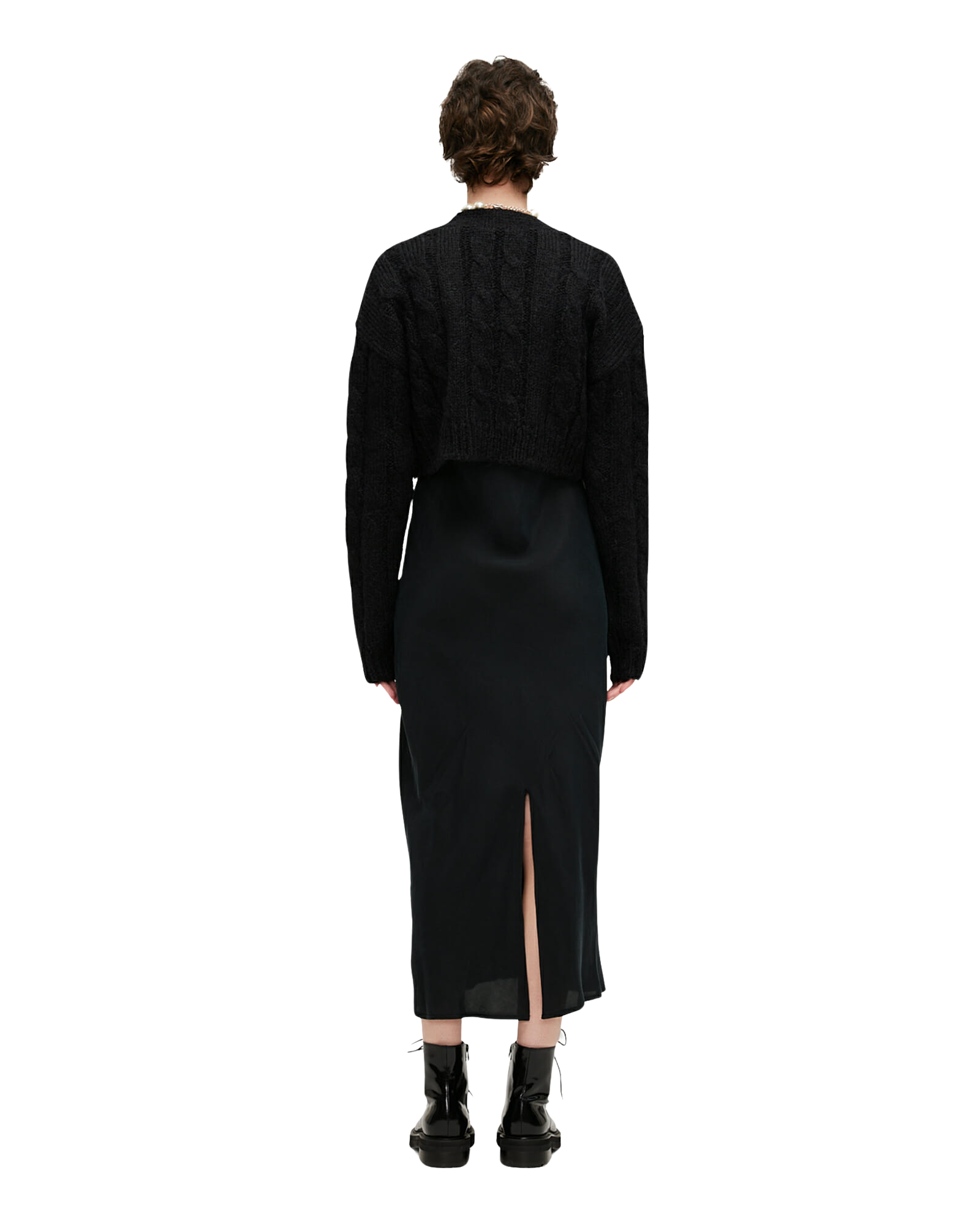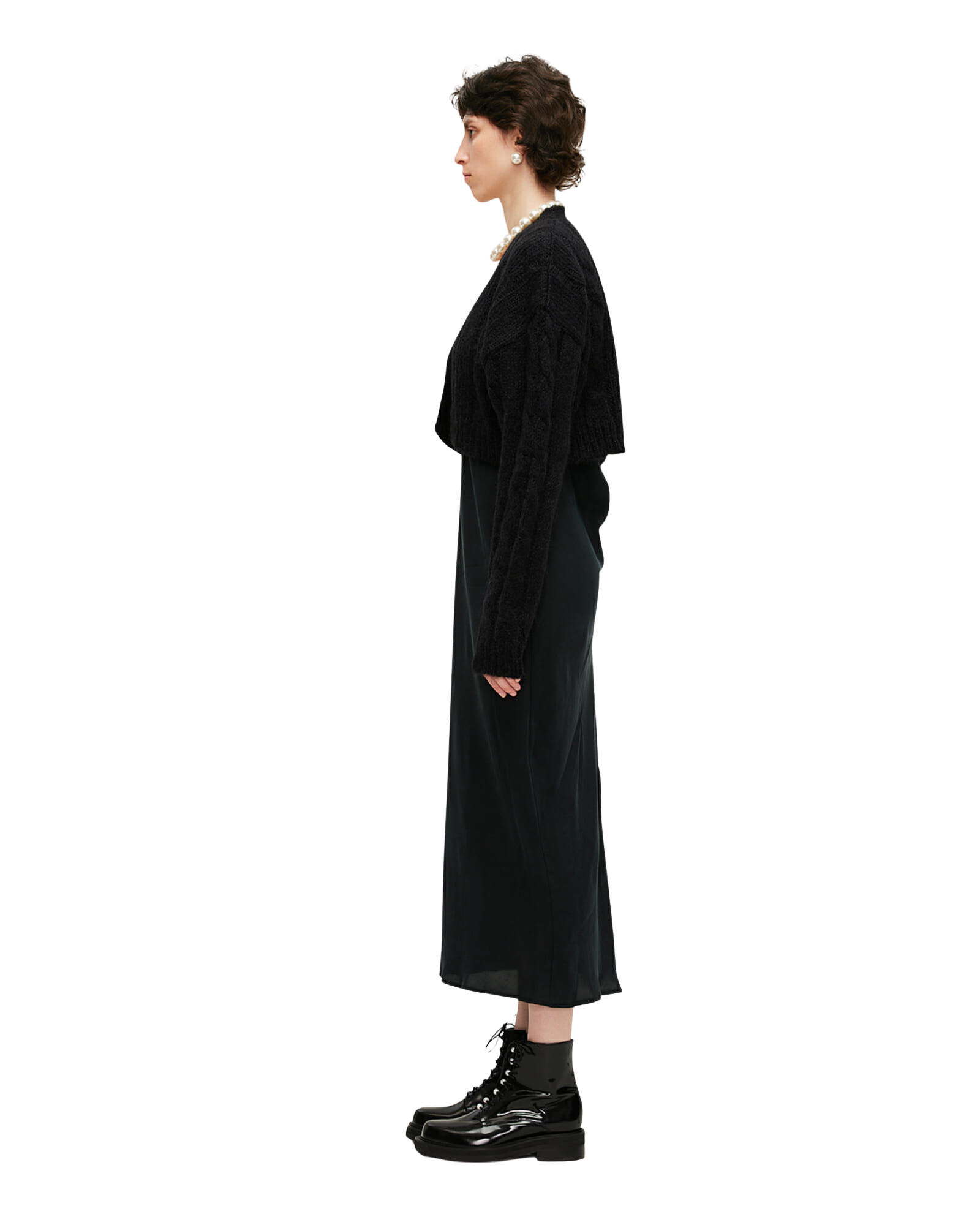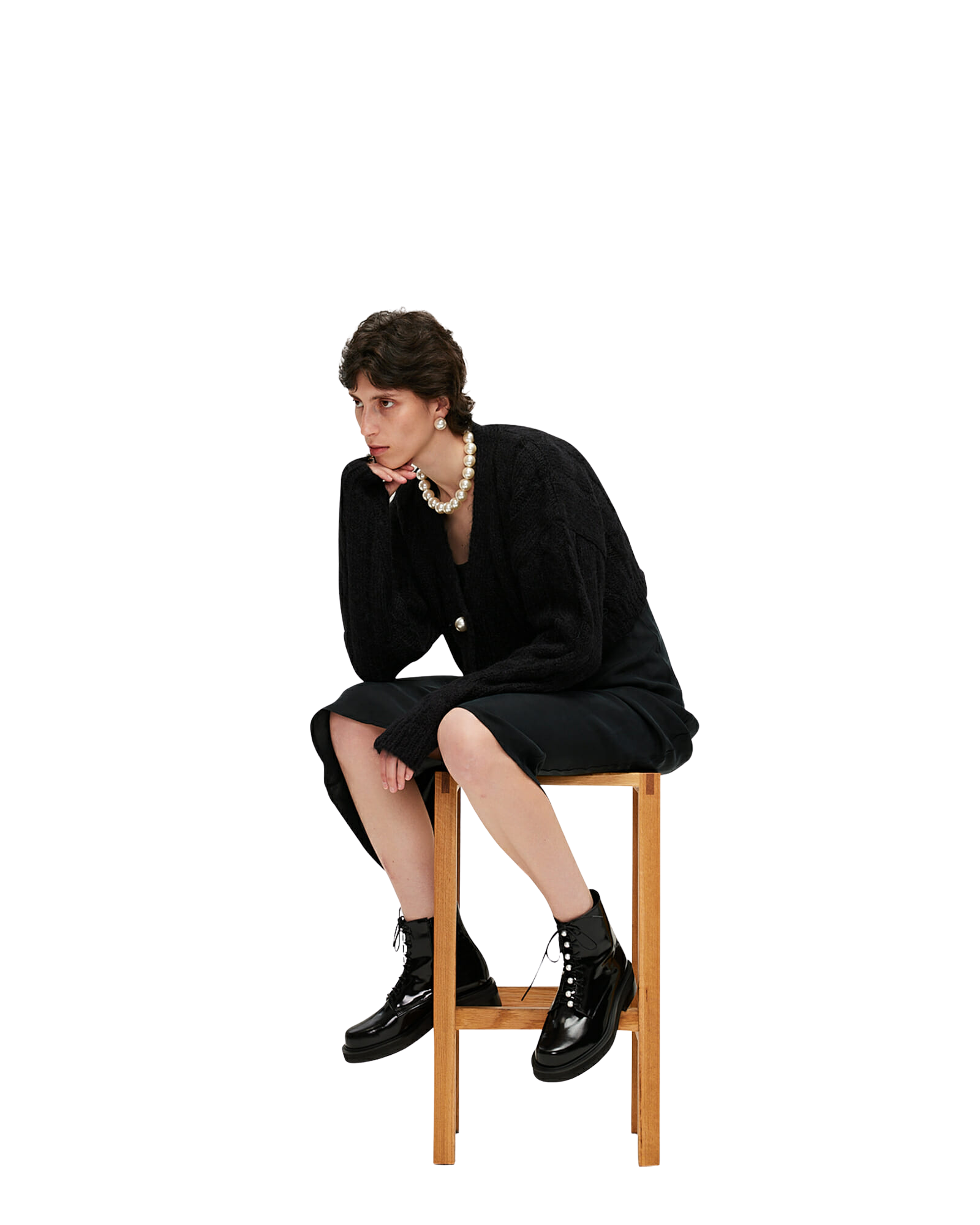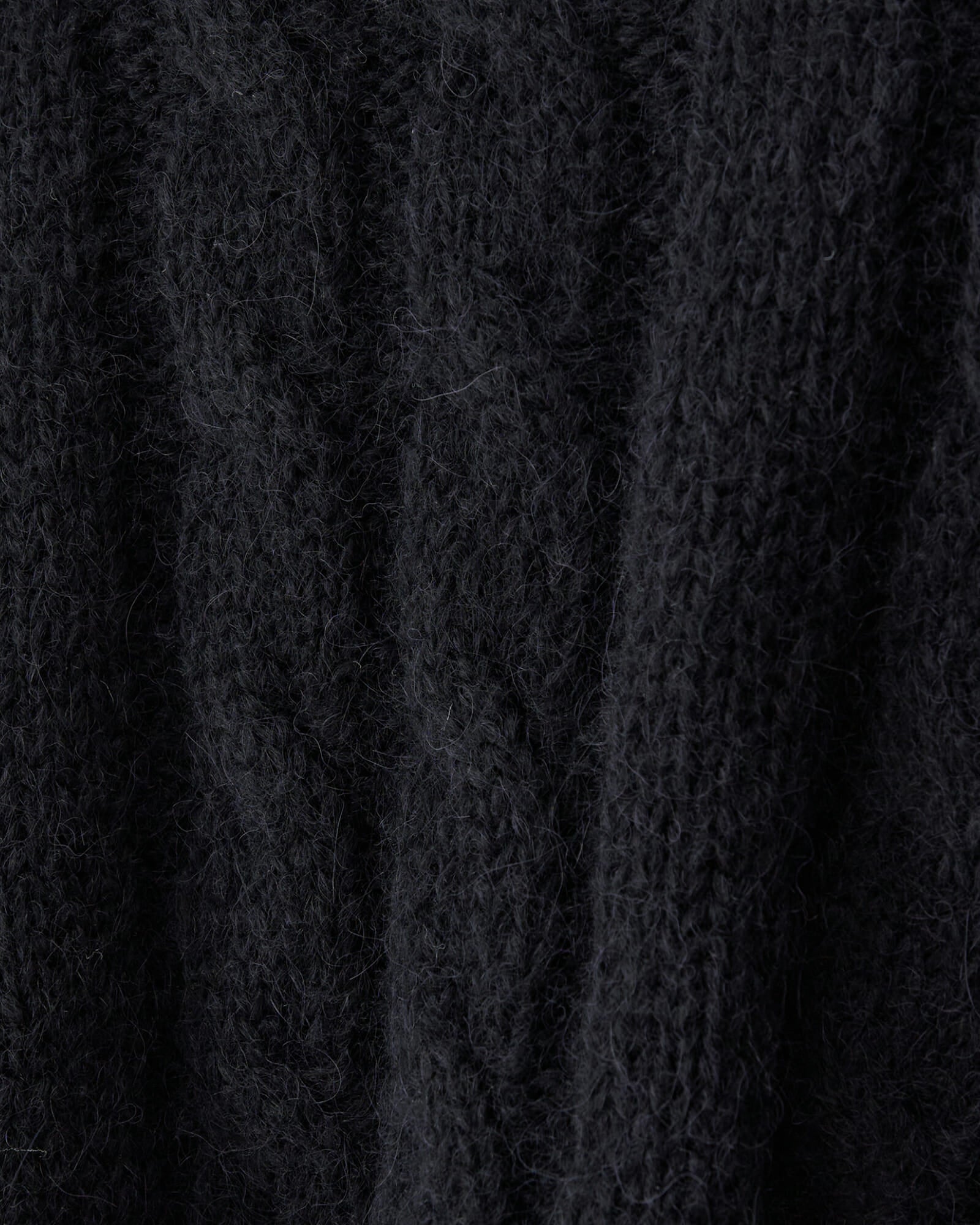 Pearl Button Cropped Mohair-Alpaca Cardigan (Black)