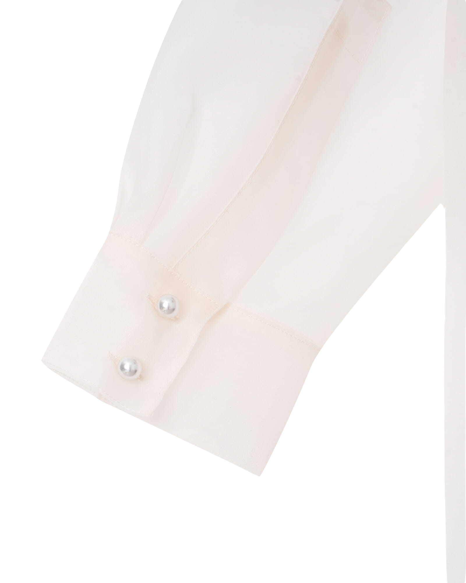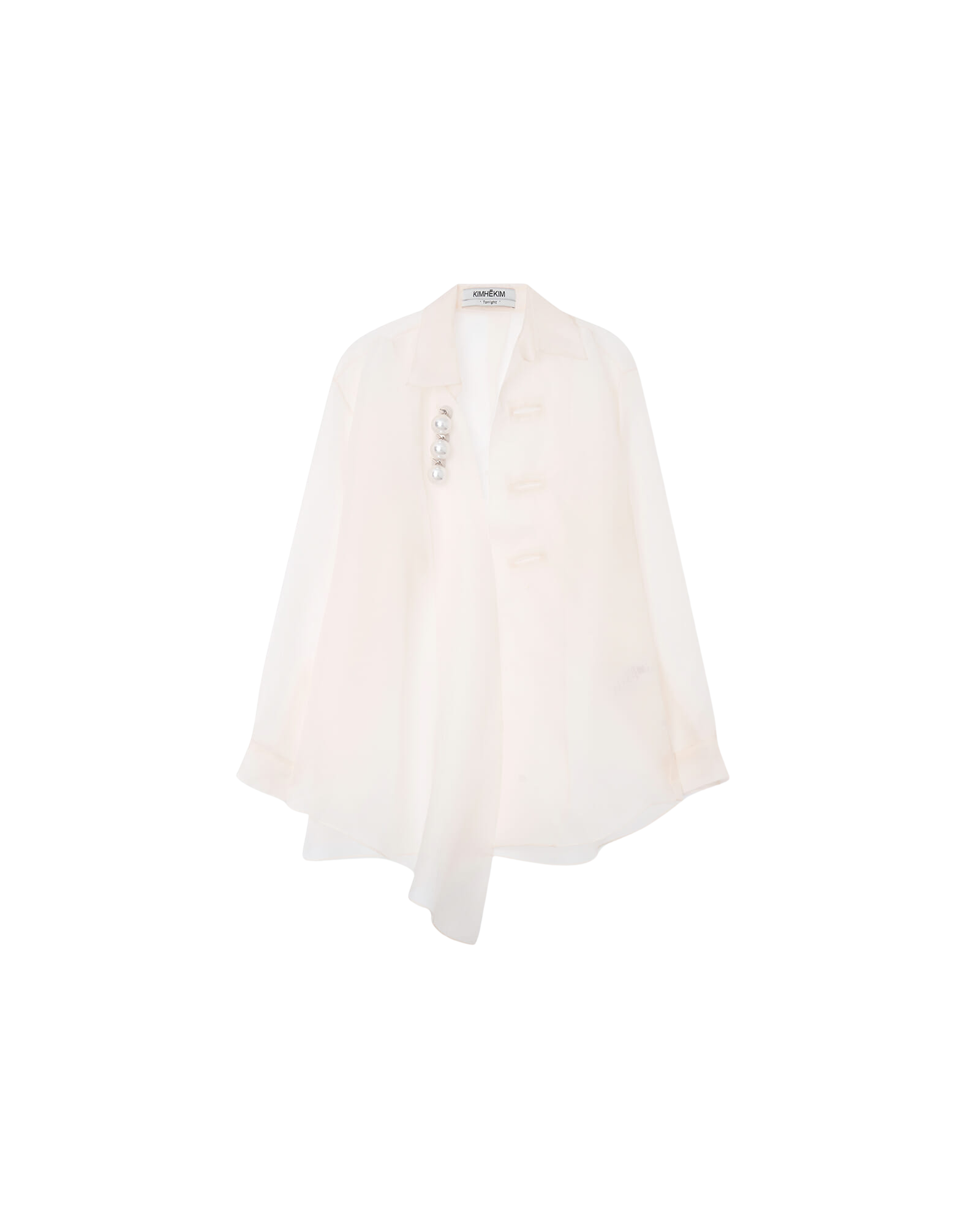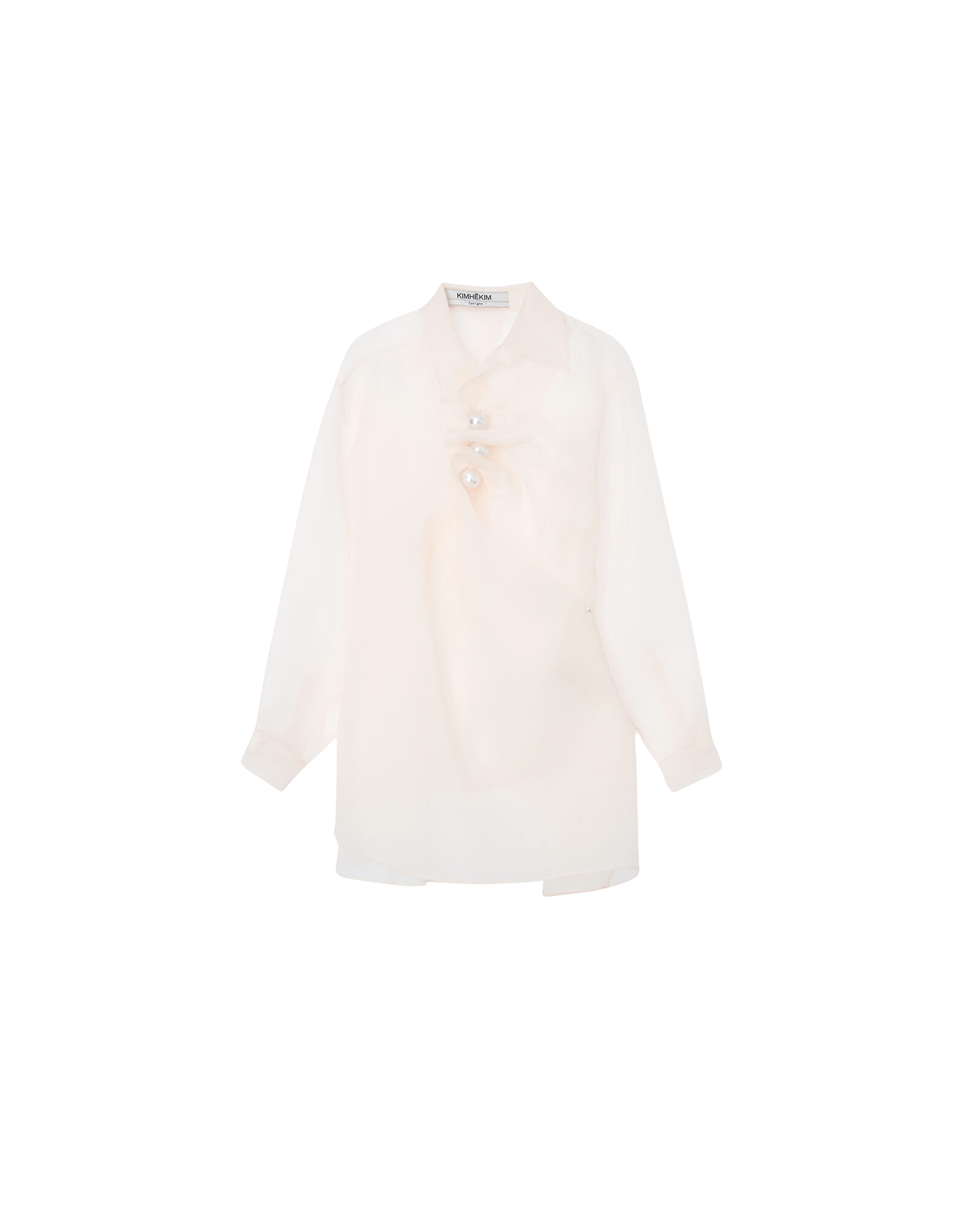 Pearl Buttons Organza Draped Shirt (Ivory)