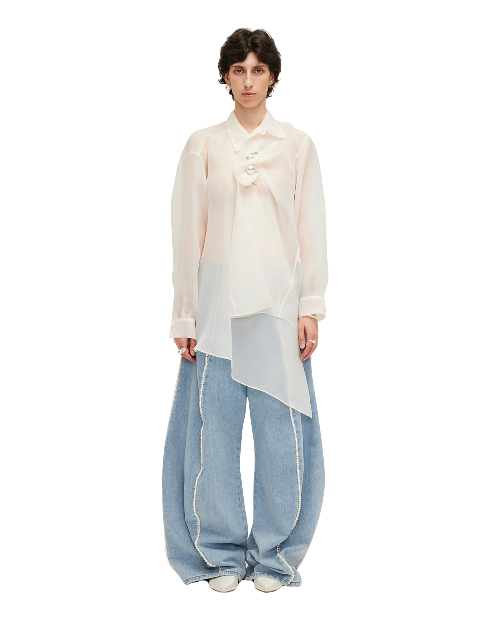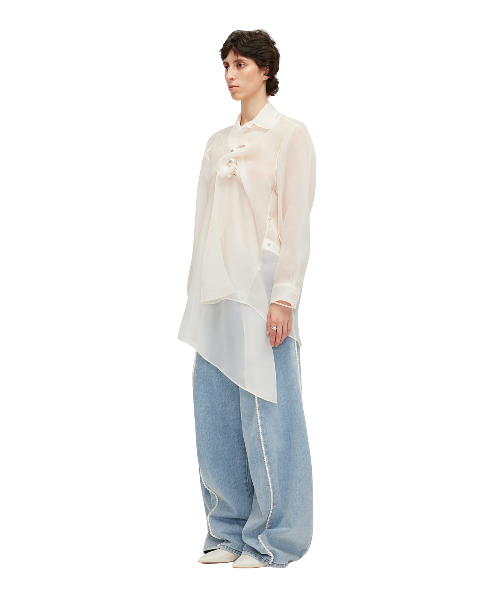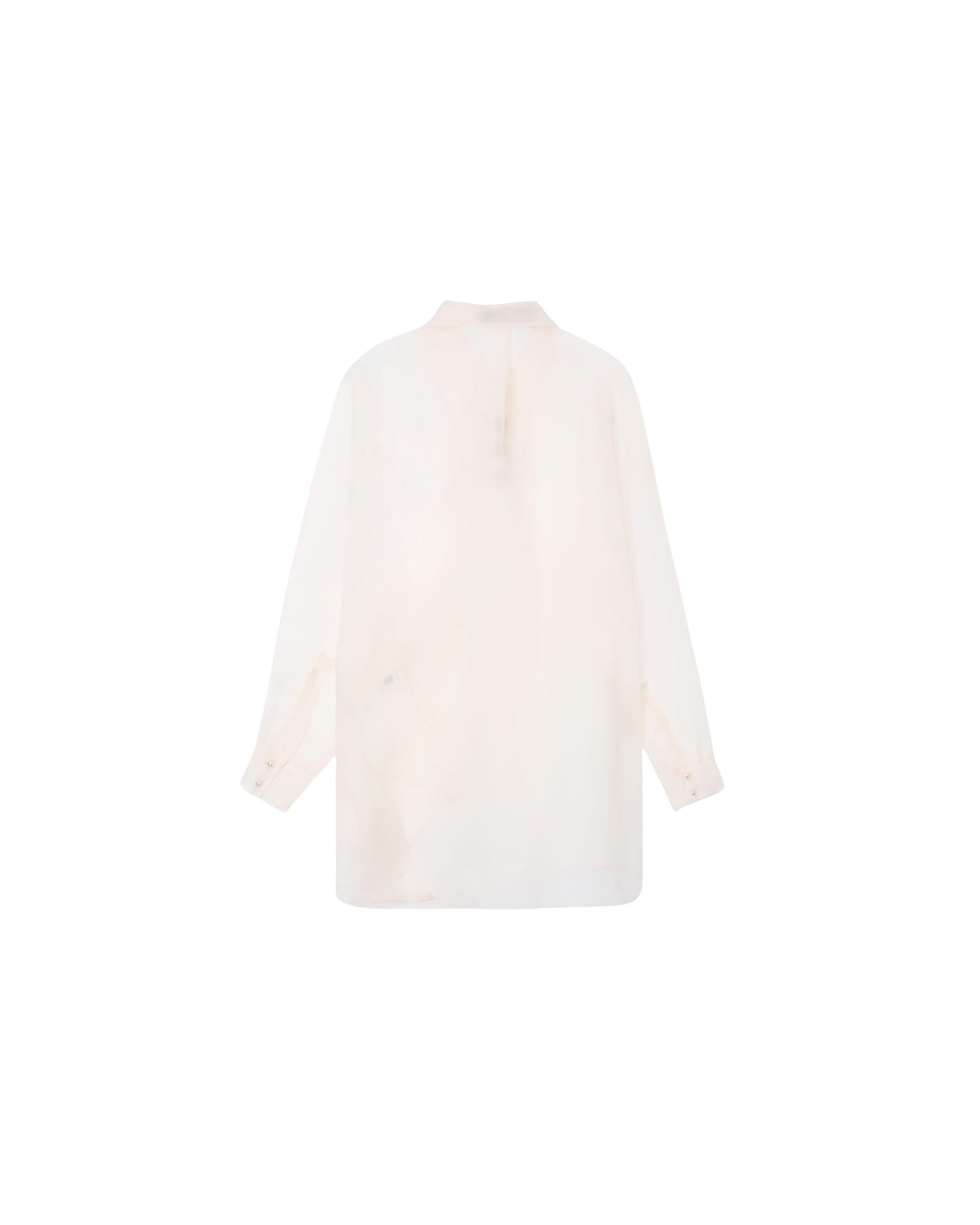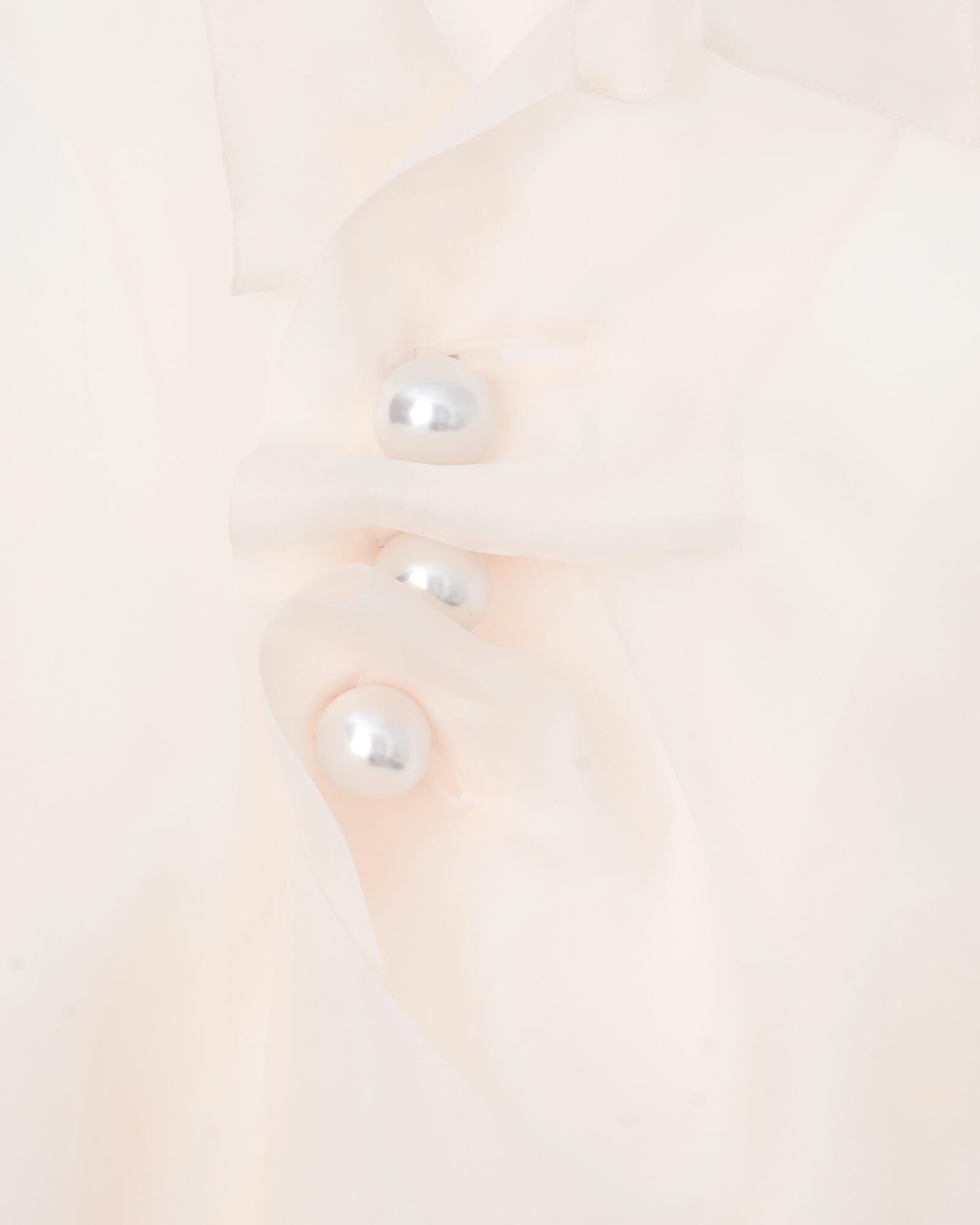 Pearl Buttons Organza Draped Shirt (Ivory)