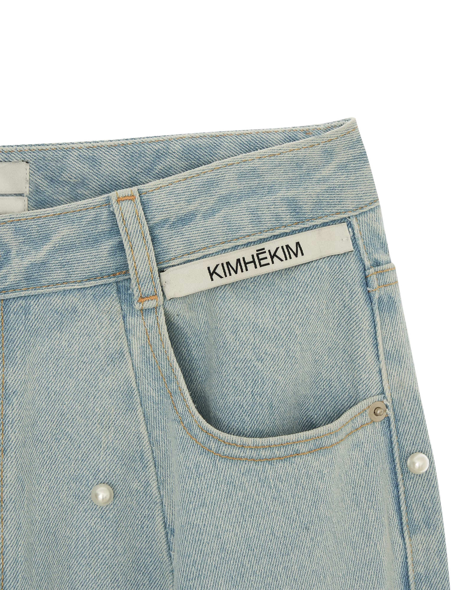 Pearl Embellished Balloon Fit Jeans (Sky Blue)