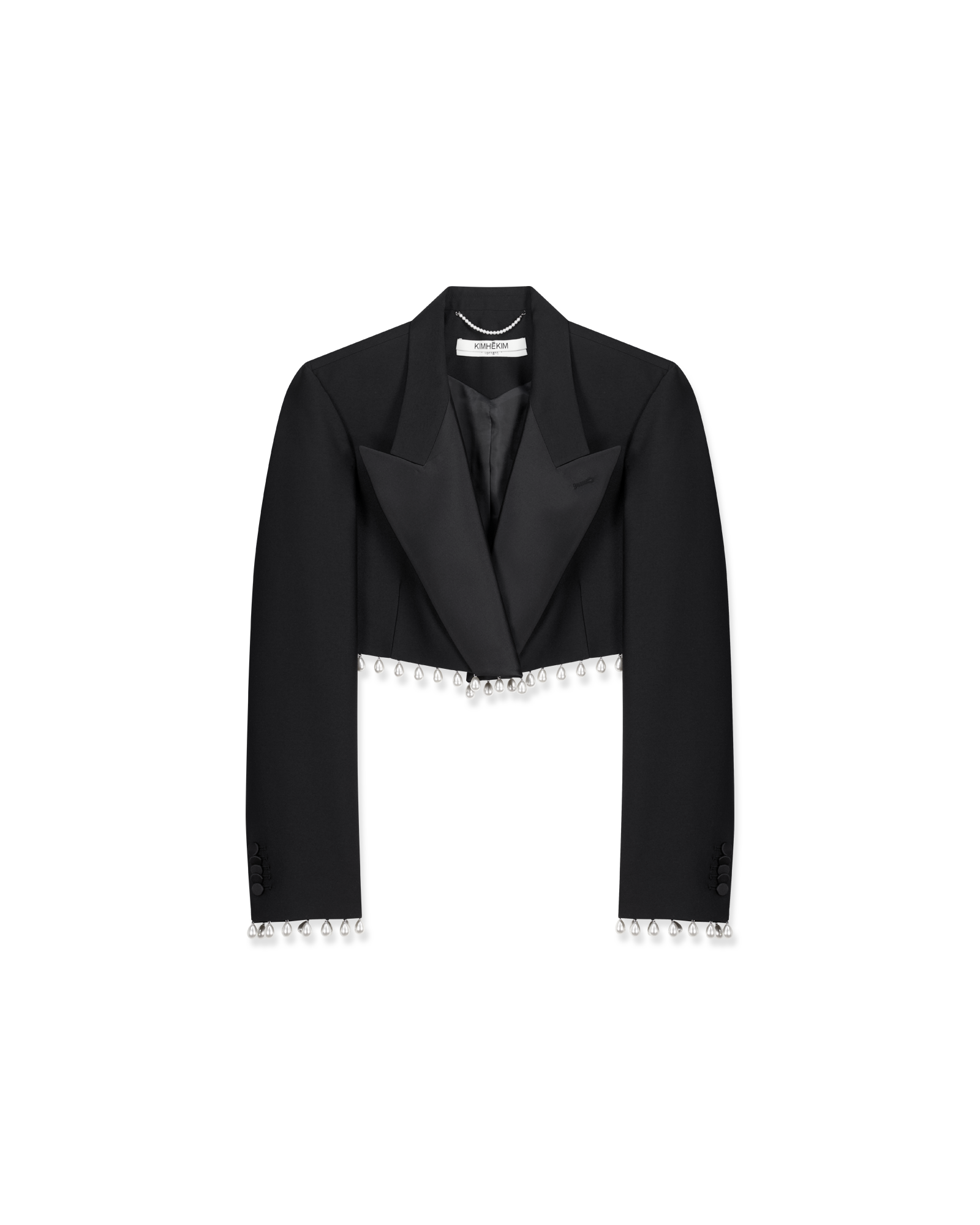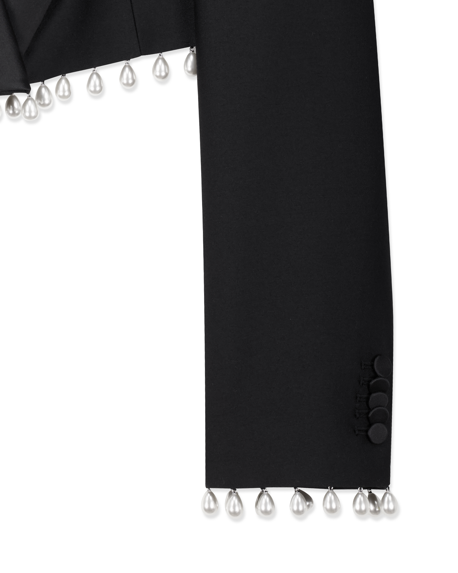 Pearl Embellished Cropped Tuxedo Jacket (Black)