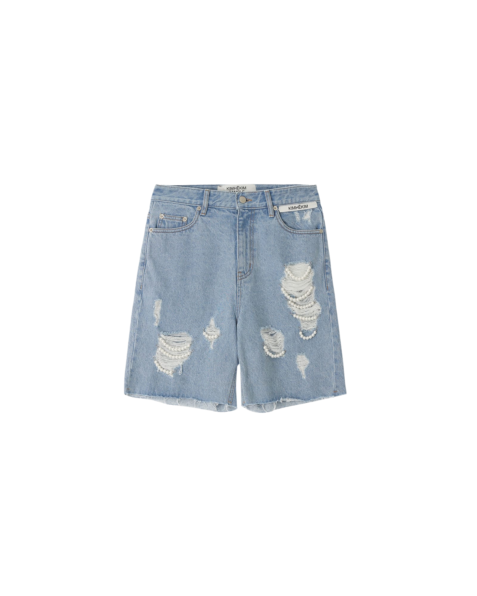 Pearl Embellished Destroyed Shorts (Sky Blue)