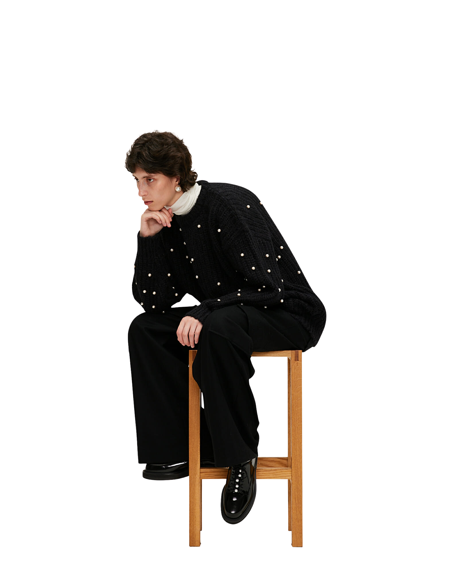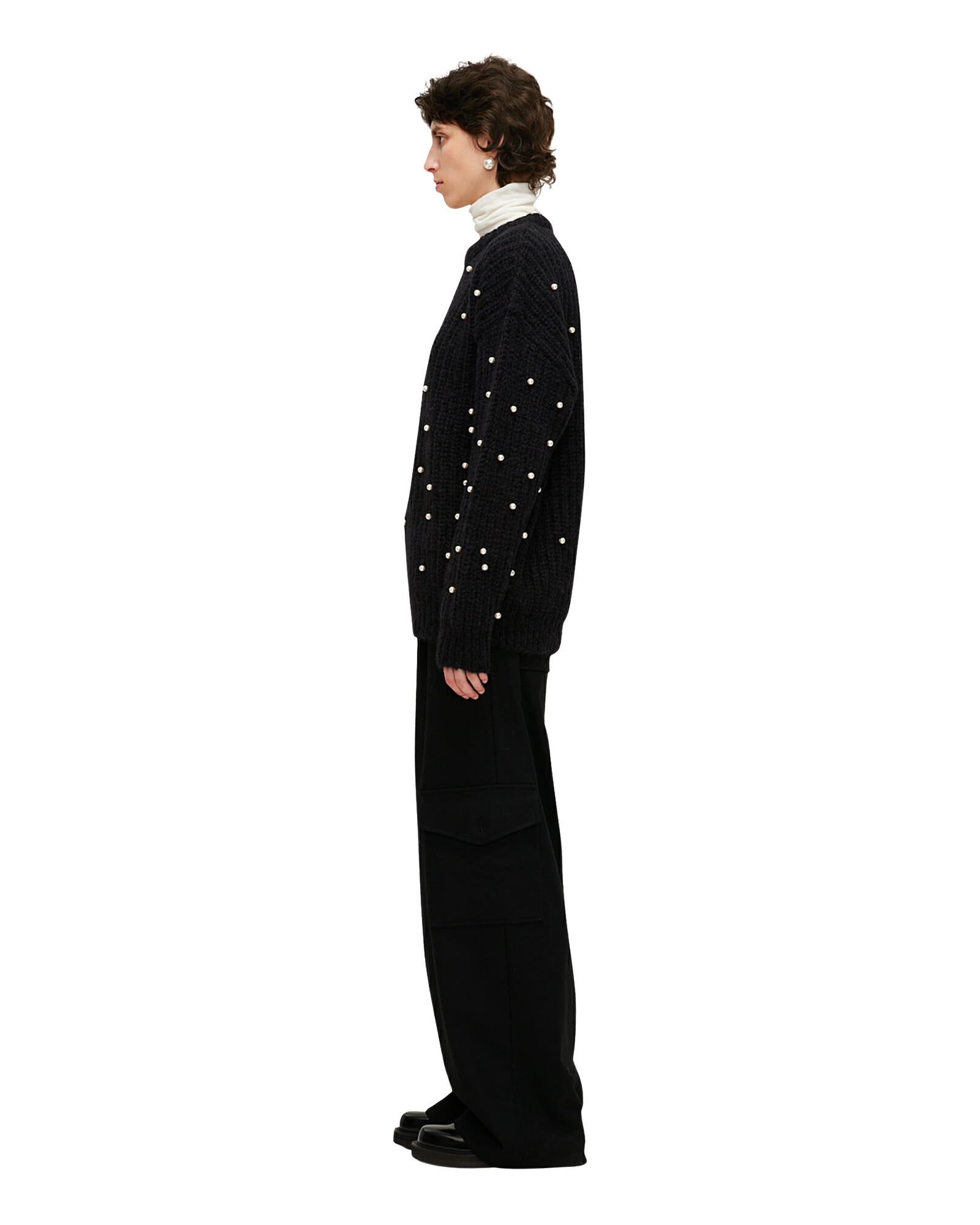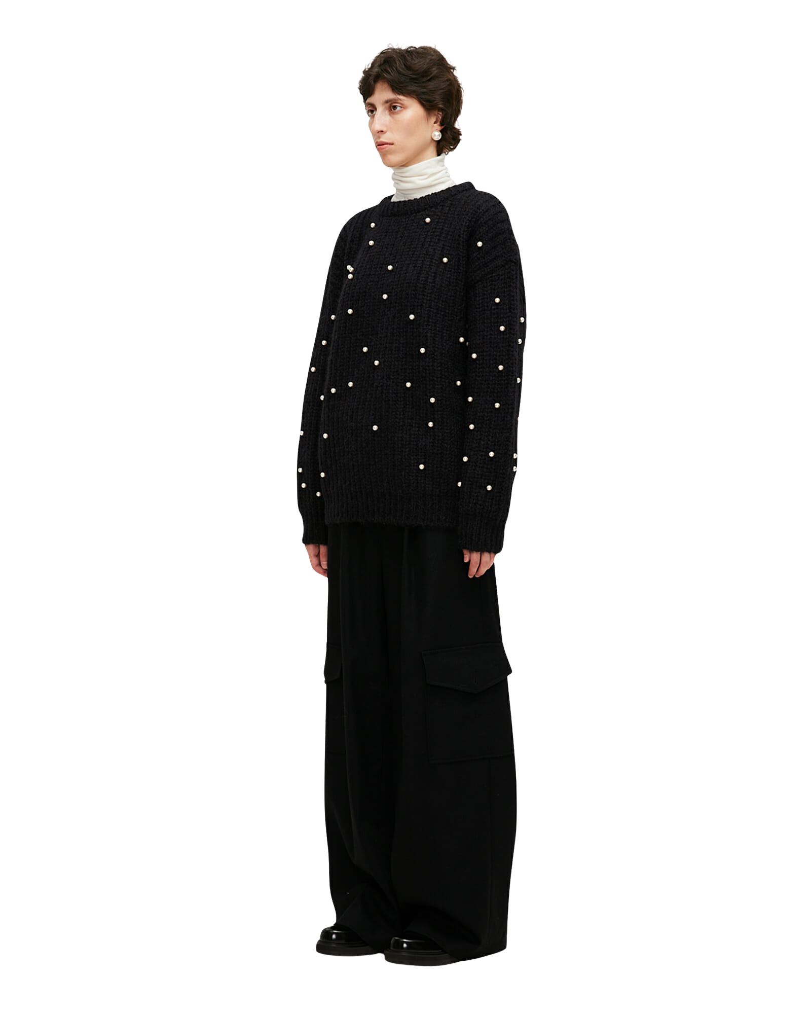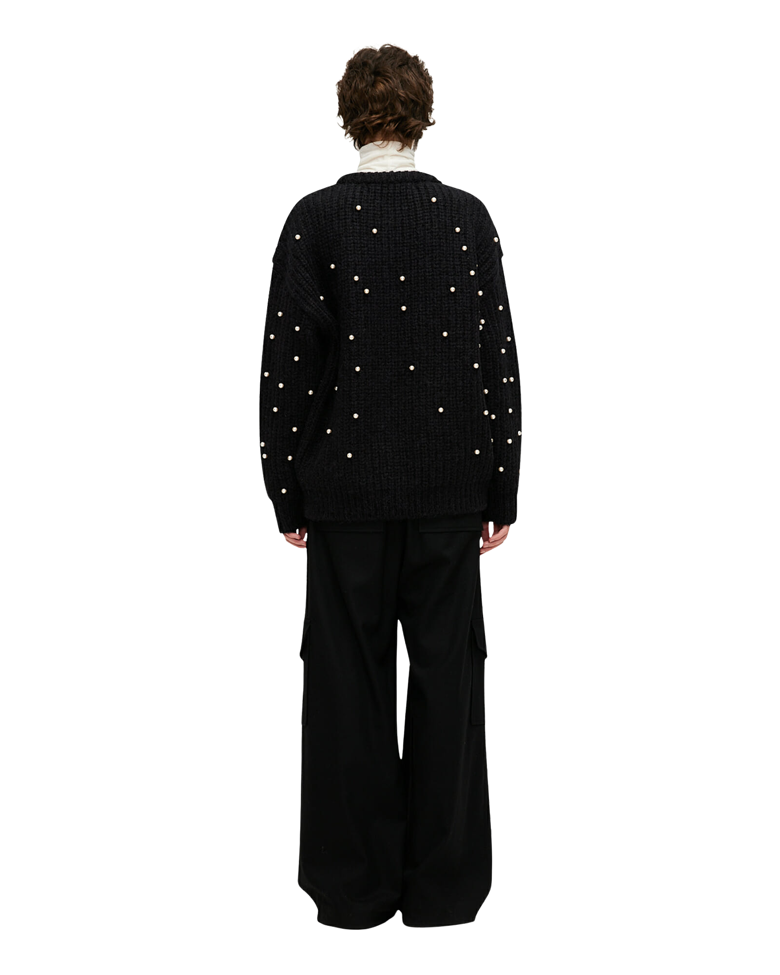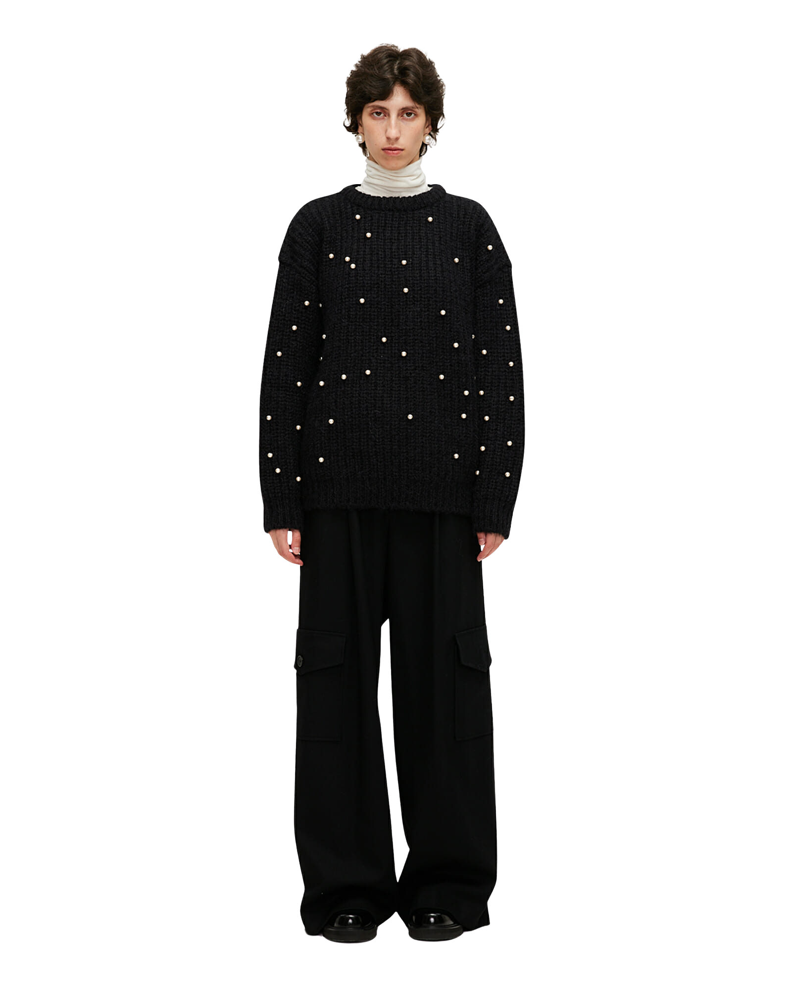 Pearl Embellished Mohair-Alpaca Sweater (Black)