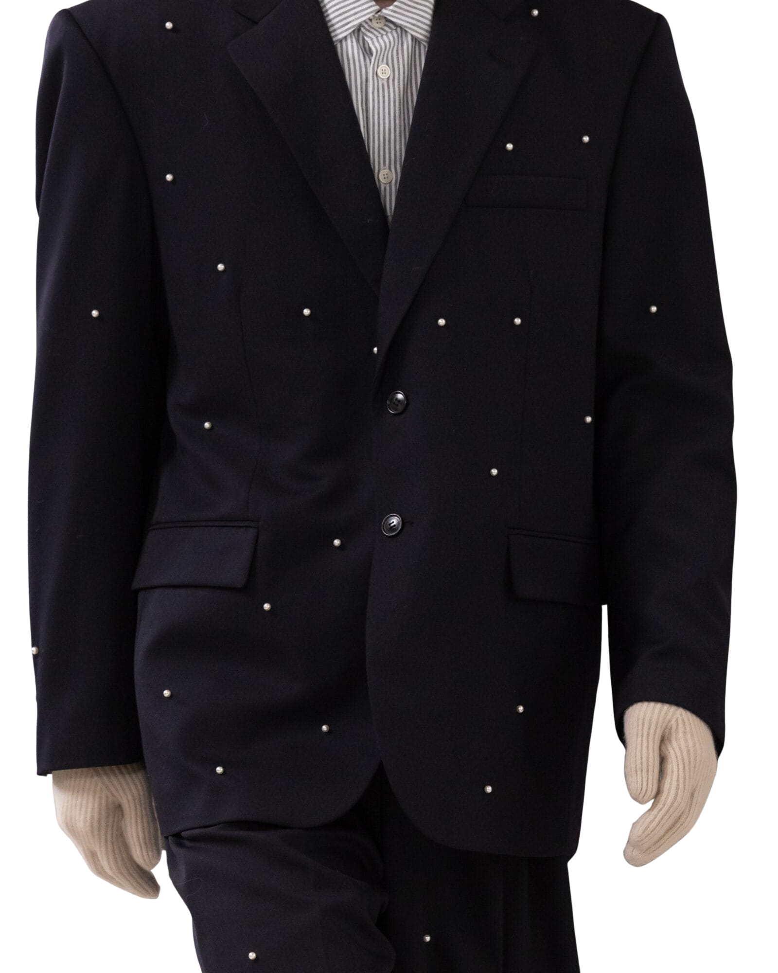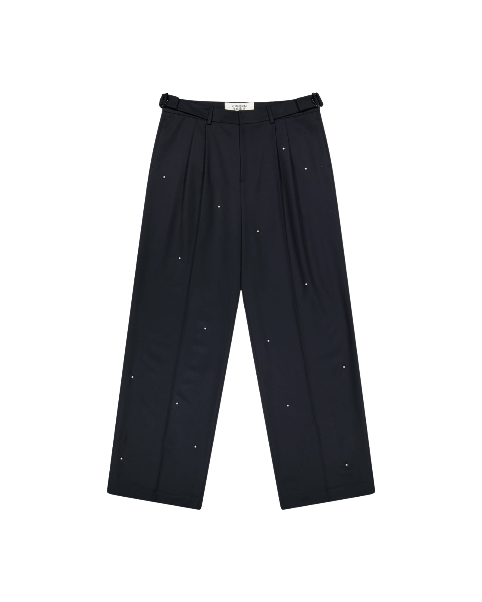 Pearl Embellished Pleated Trousers (Dark Navy)