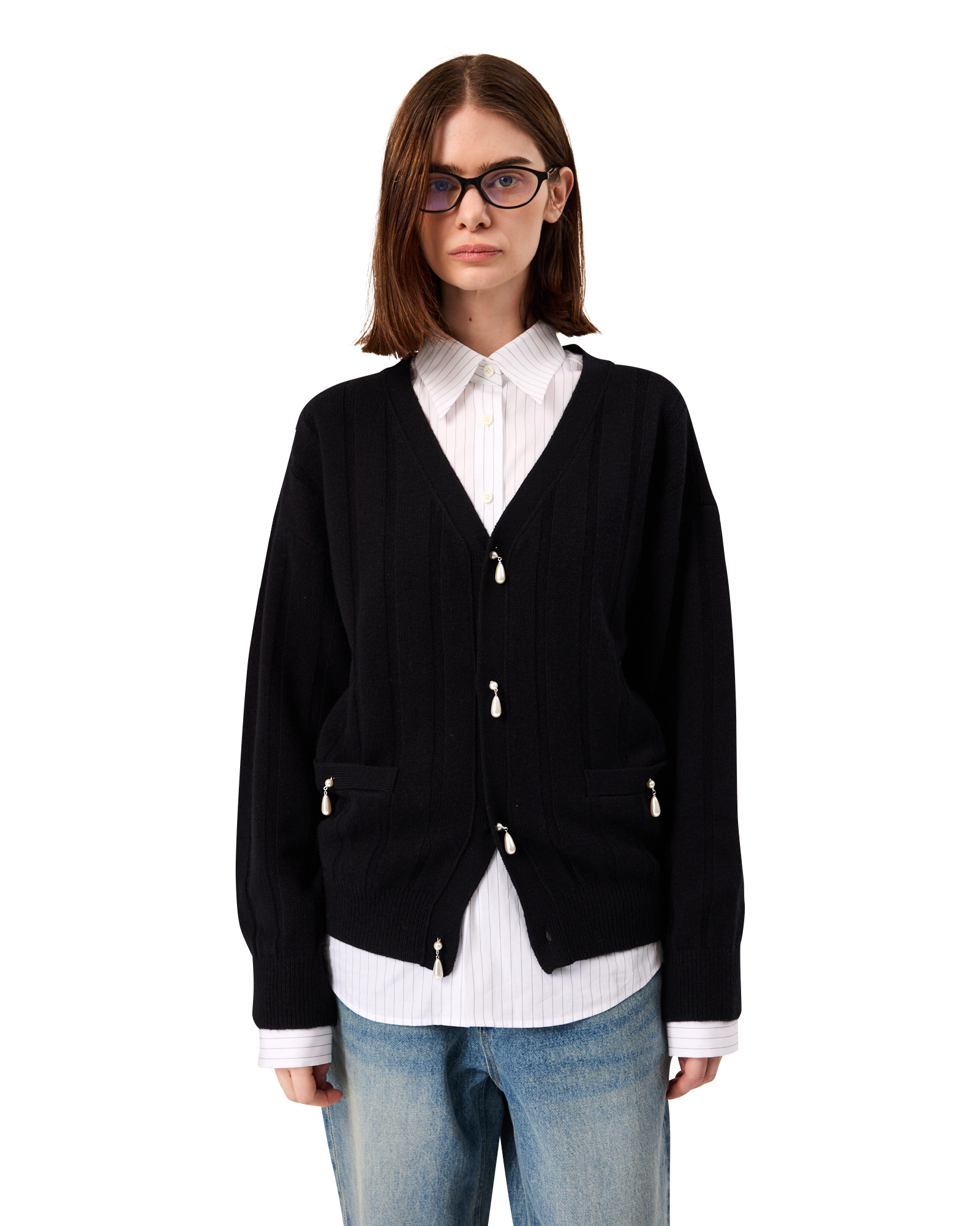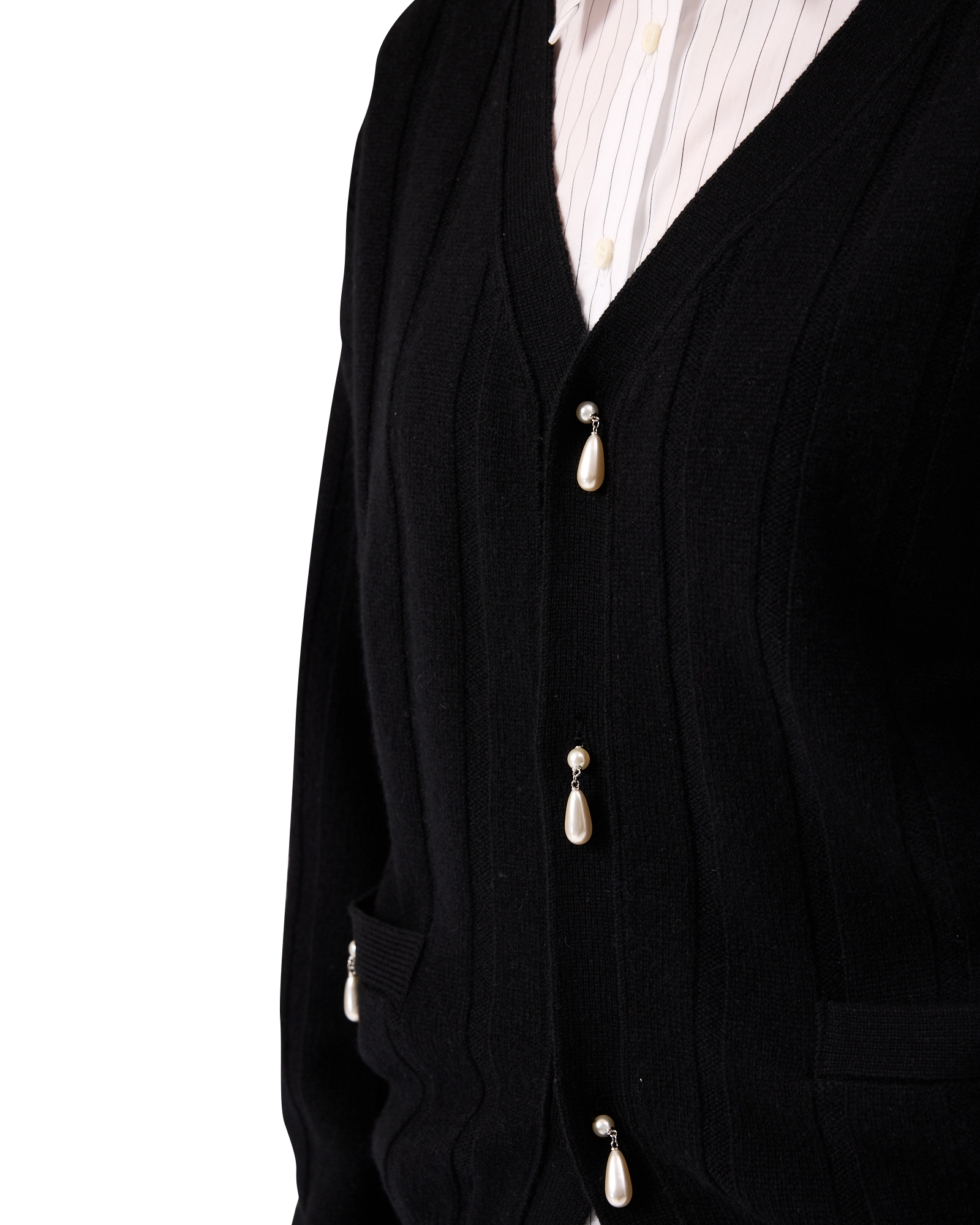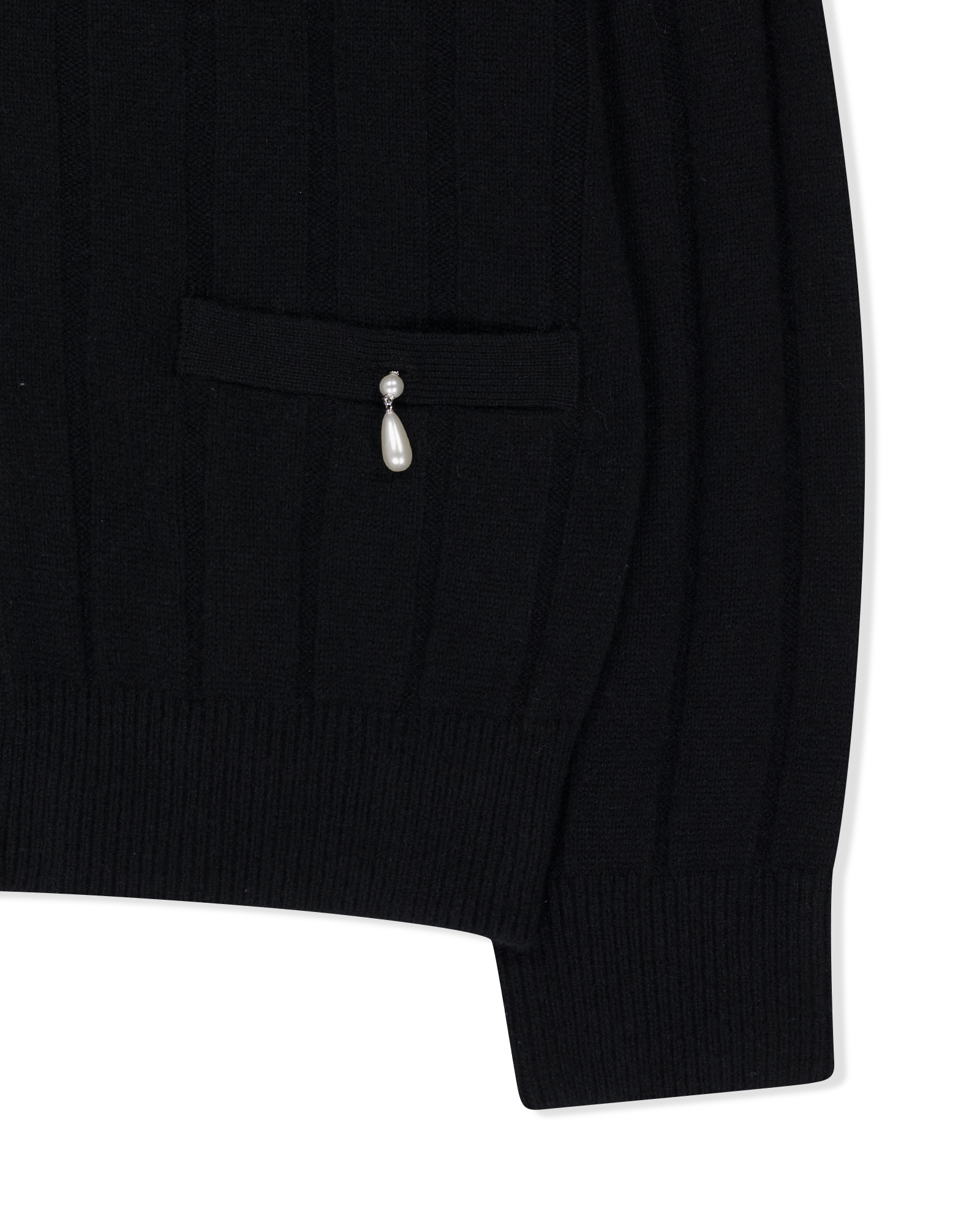 Pearl Embellished V-Neck Cardigan (Black)