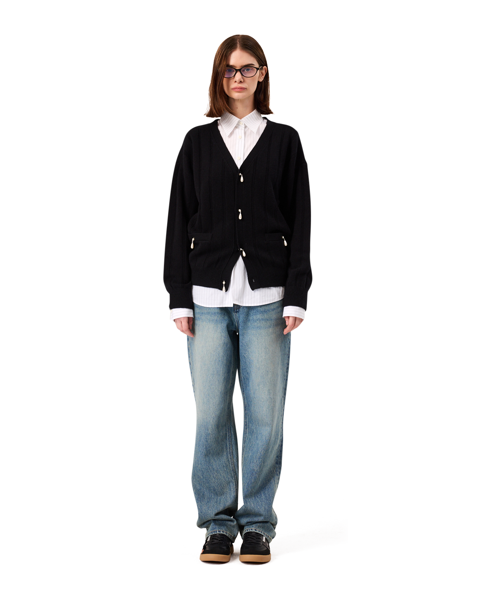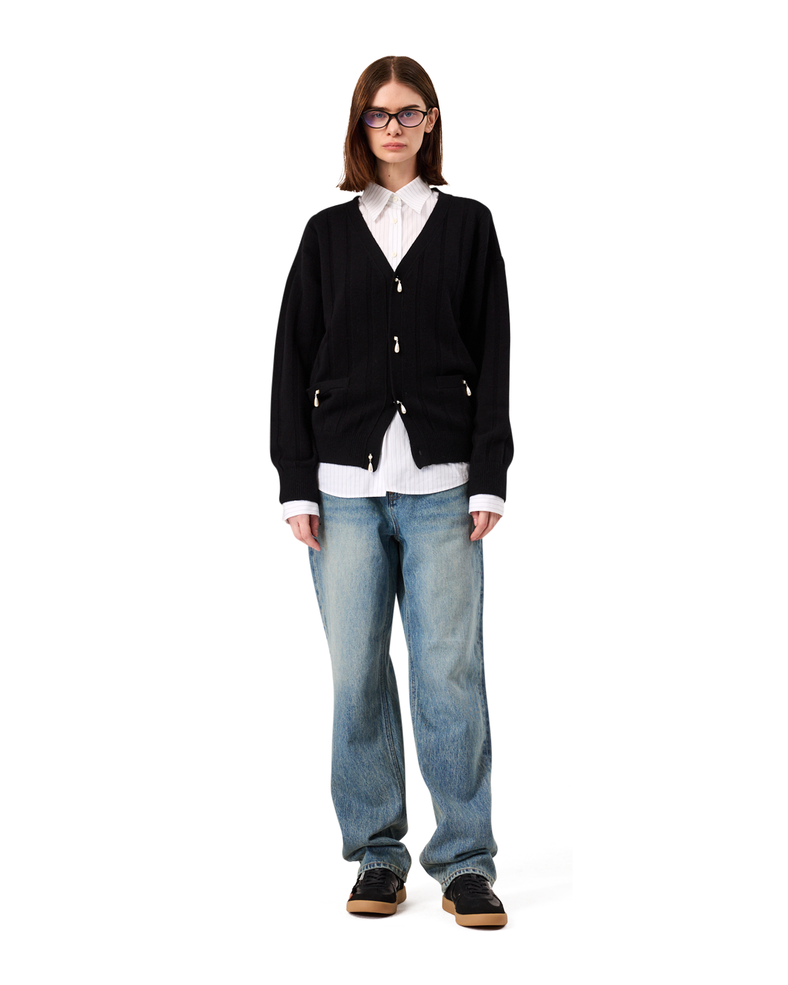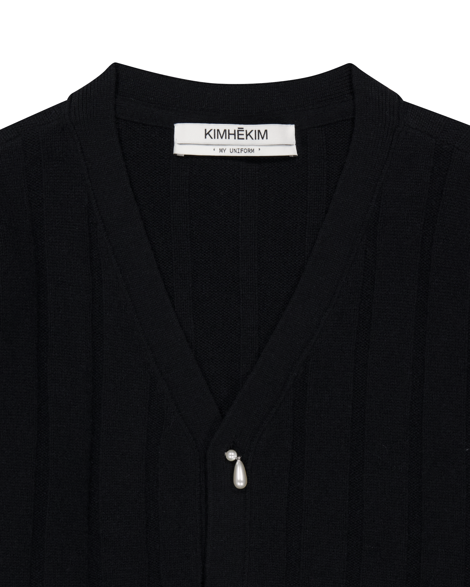 Pearl Embellished V-Neck Cardigan (Black)
