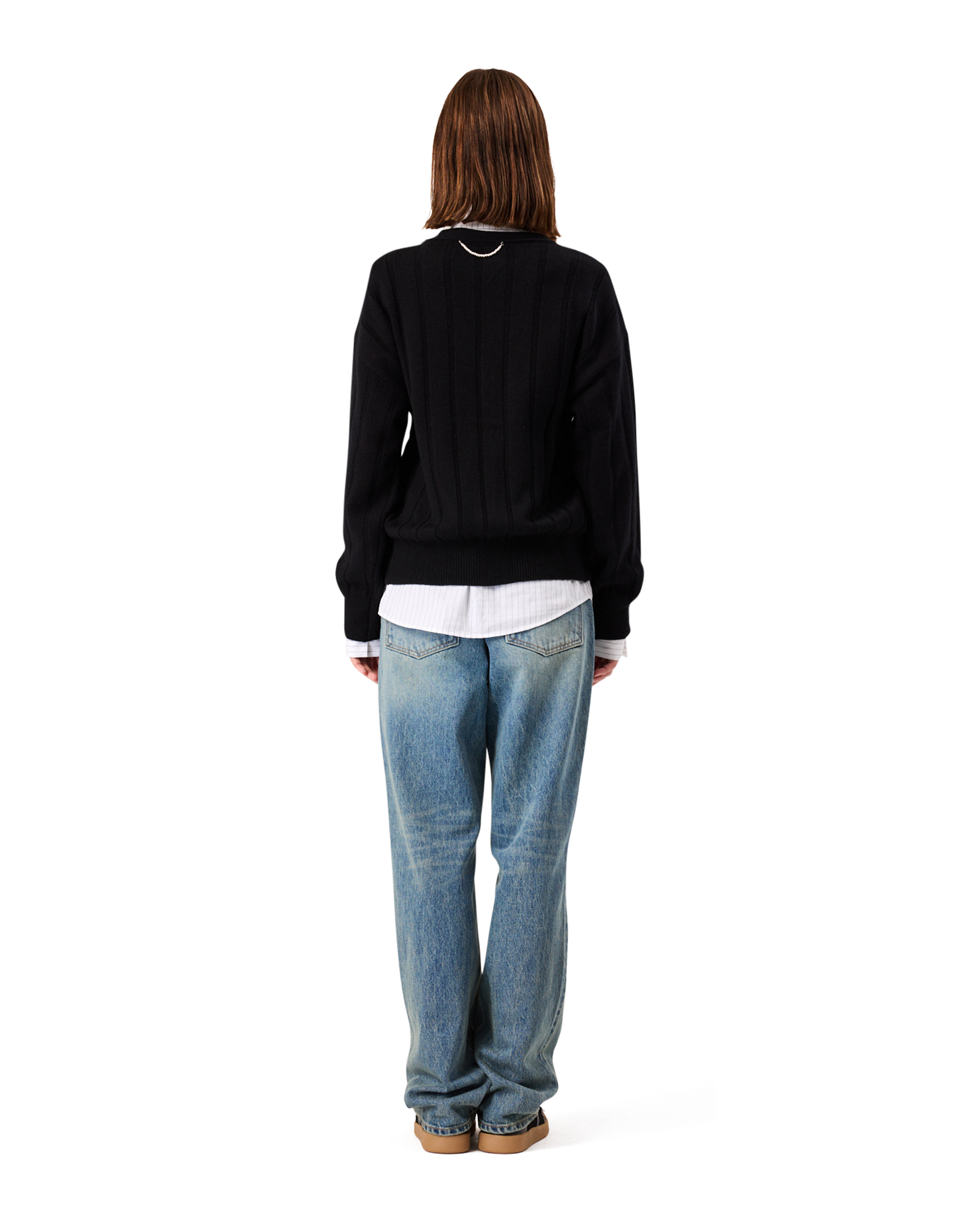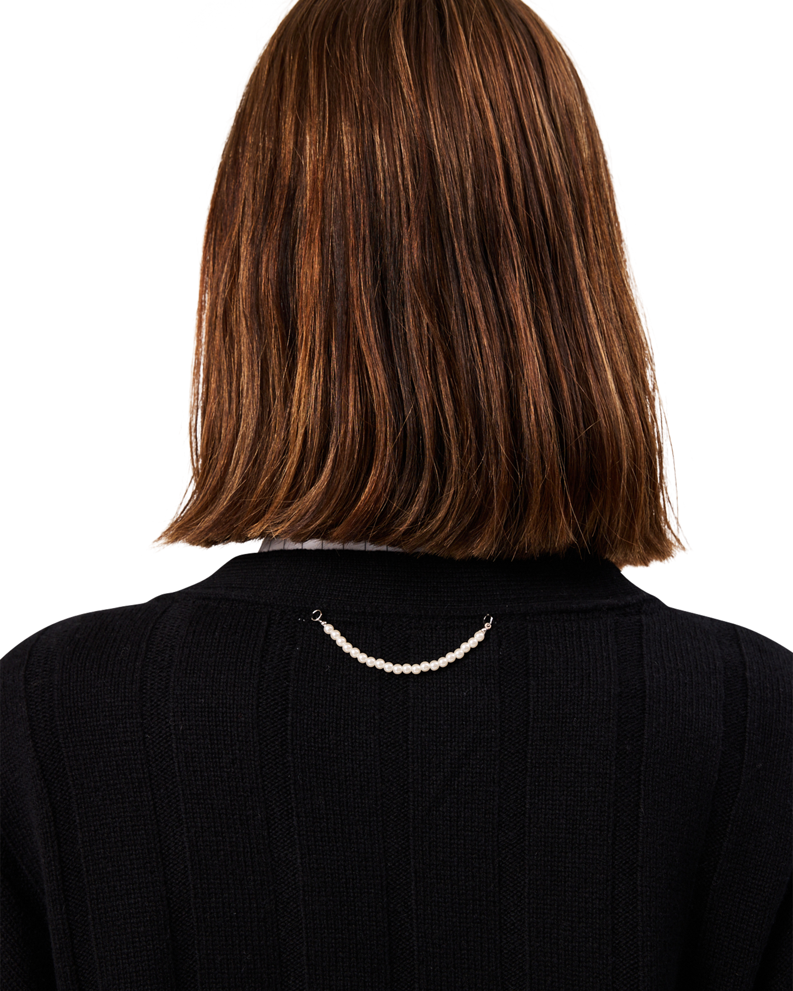 COMPOSITION - YARN: SUPERFINE MERINO WOOL 70%, CASHMERE 30% / EMBELLISHMENT: ACRYLIC PEARL.